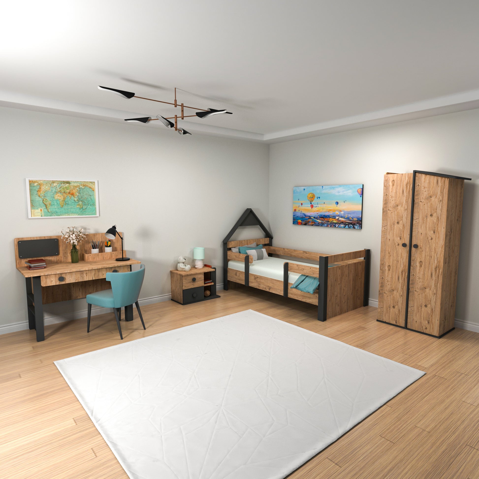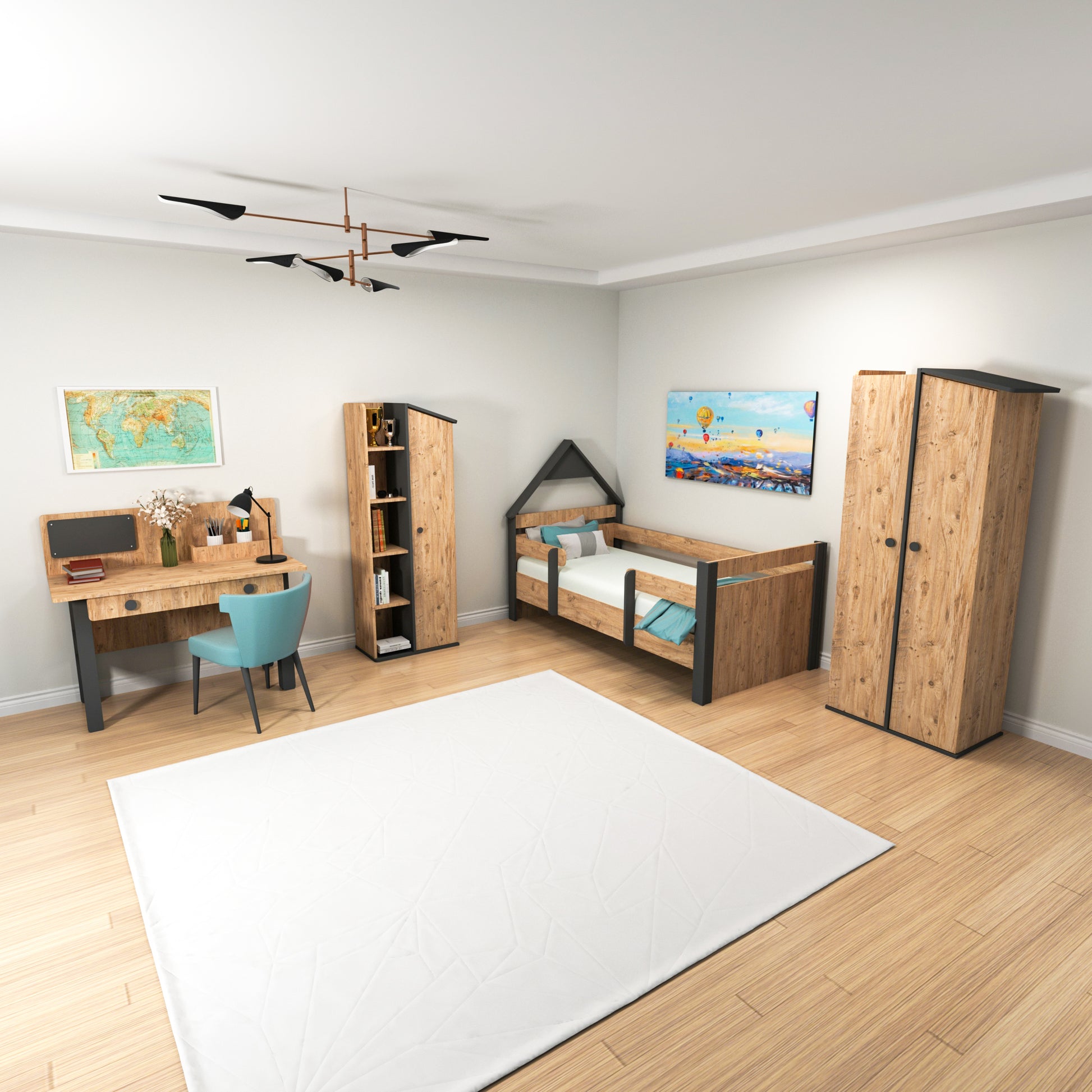 DESCRIPTION: This collection is ideal for kids with its 5-piece set of bedstead, wardrobe, desk, bookcase and nightstand. Boasting sleek anthracite and Atlantic pine colors, this kids room or kids bedroom set has everything you need to make your child's room comfortable and stylish.