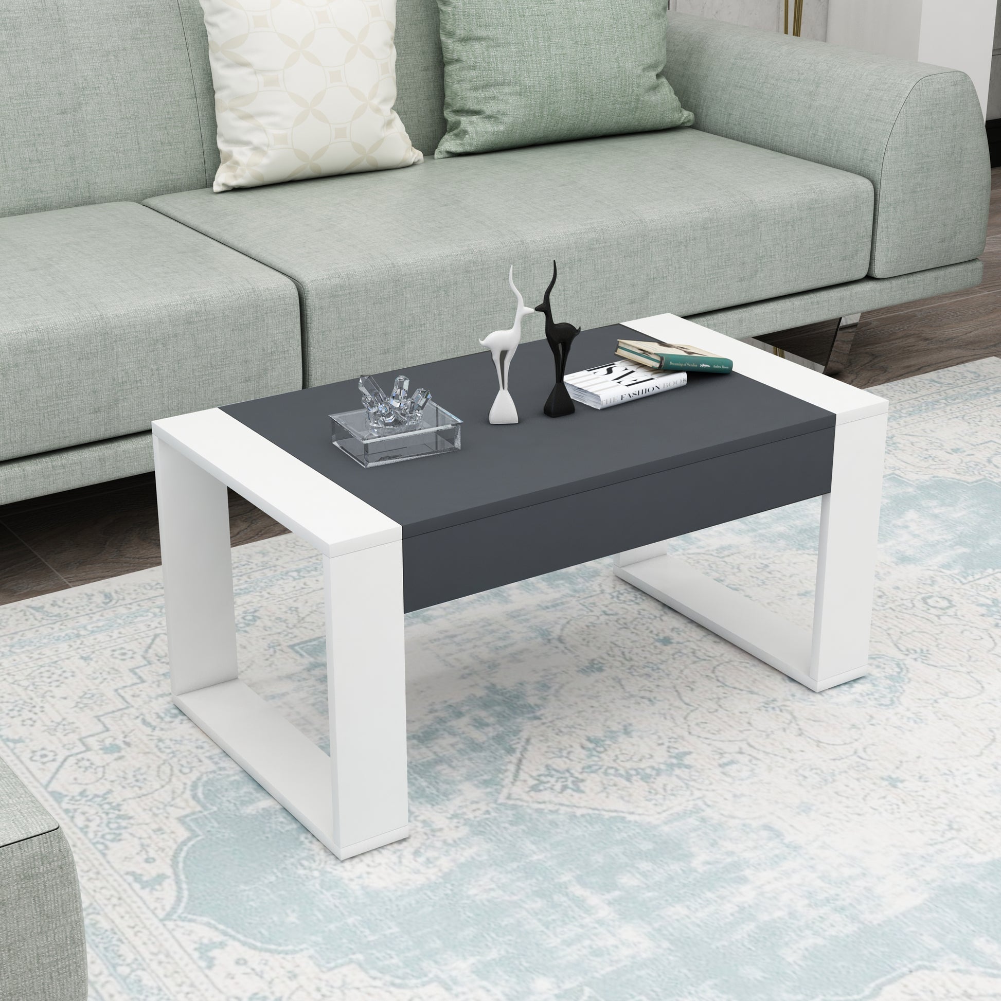 MATERIAL: The coffee table is made of an 18 mm thick quality melamine-coated particleboard. The manufactured wood surface is water-resistant to some extent and the edges are banded with PVC edge banding tape. First-class assembly/installation hardware and accessories are used. Our products are produced from certified quality raw materials that do not contain carcinogenic substances and comply with European Union health norms.