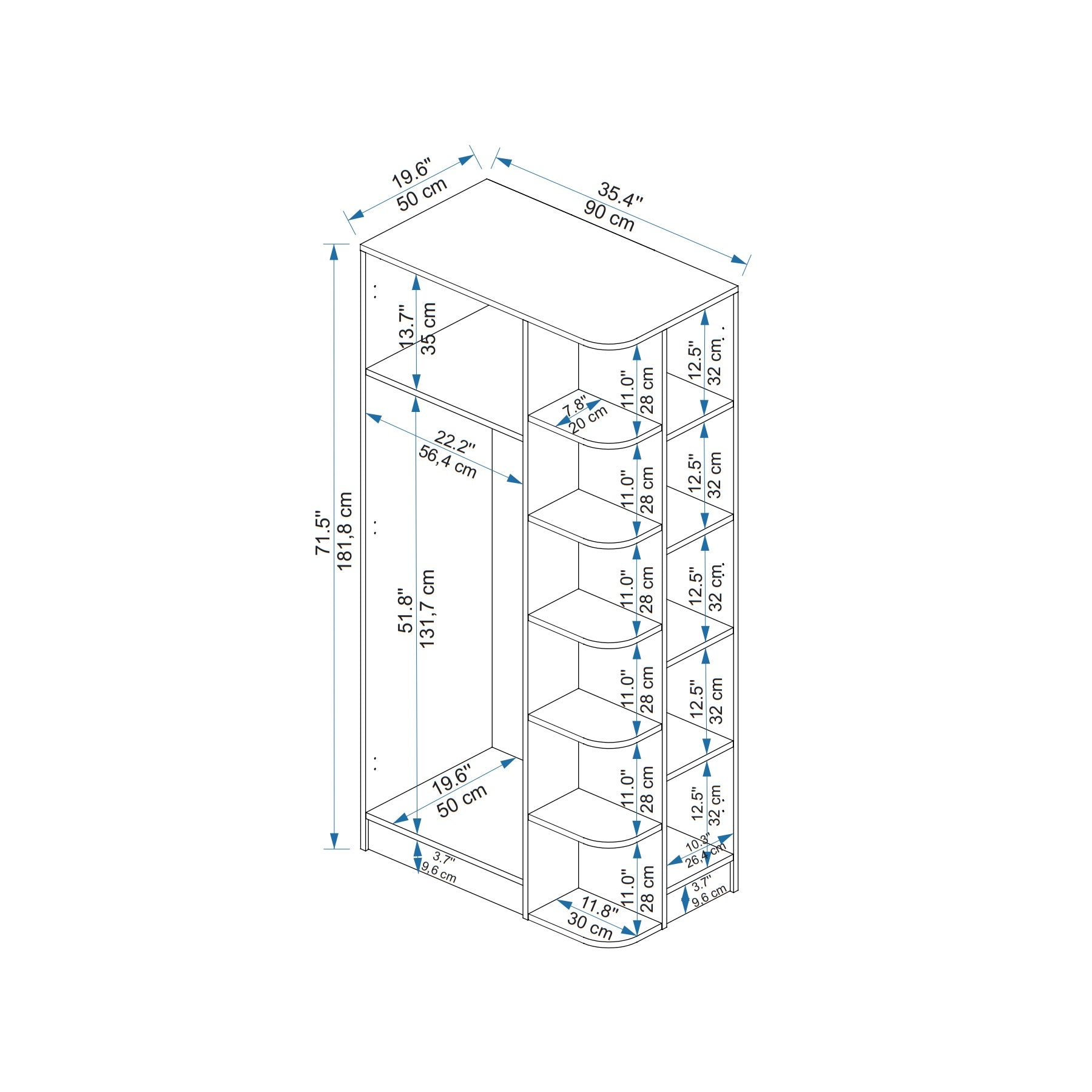 HEIGHT: 71.5" / 181.8 cm | WIDTH: 35.4" / 90 cm | DEPTH: 19.6" / 50 cm.