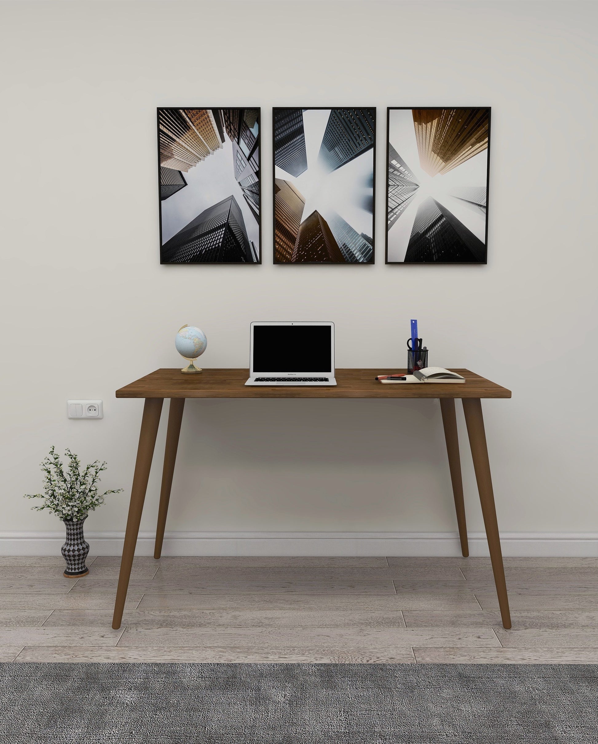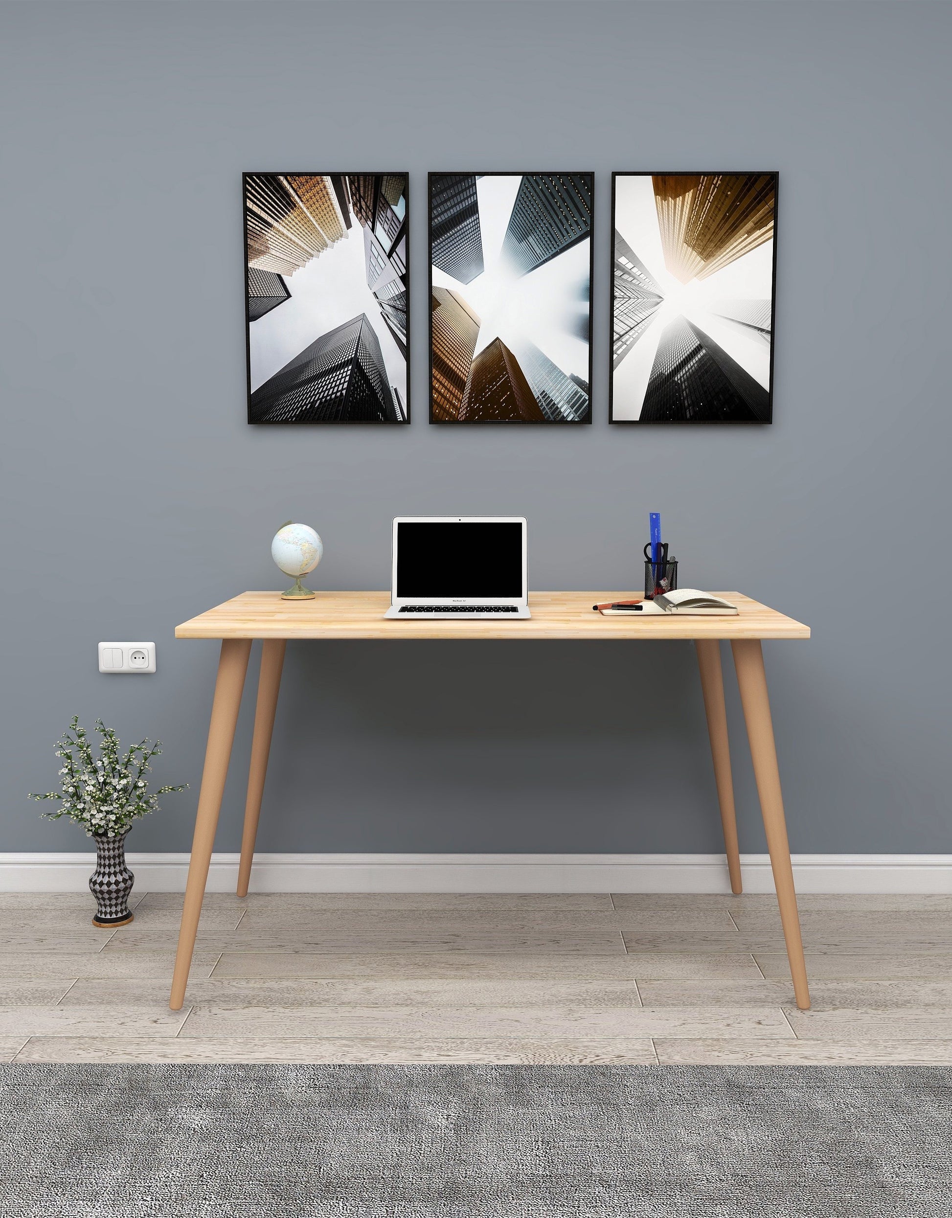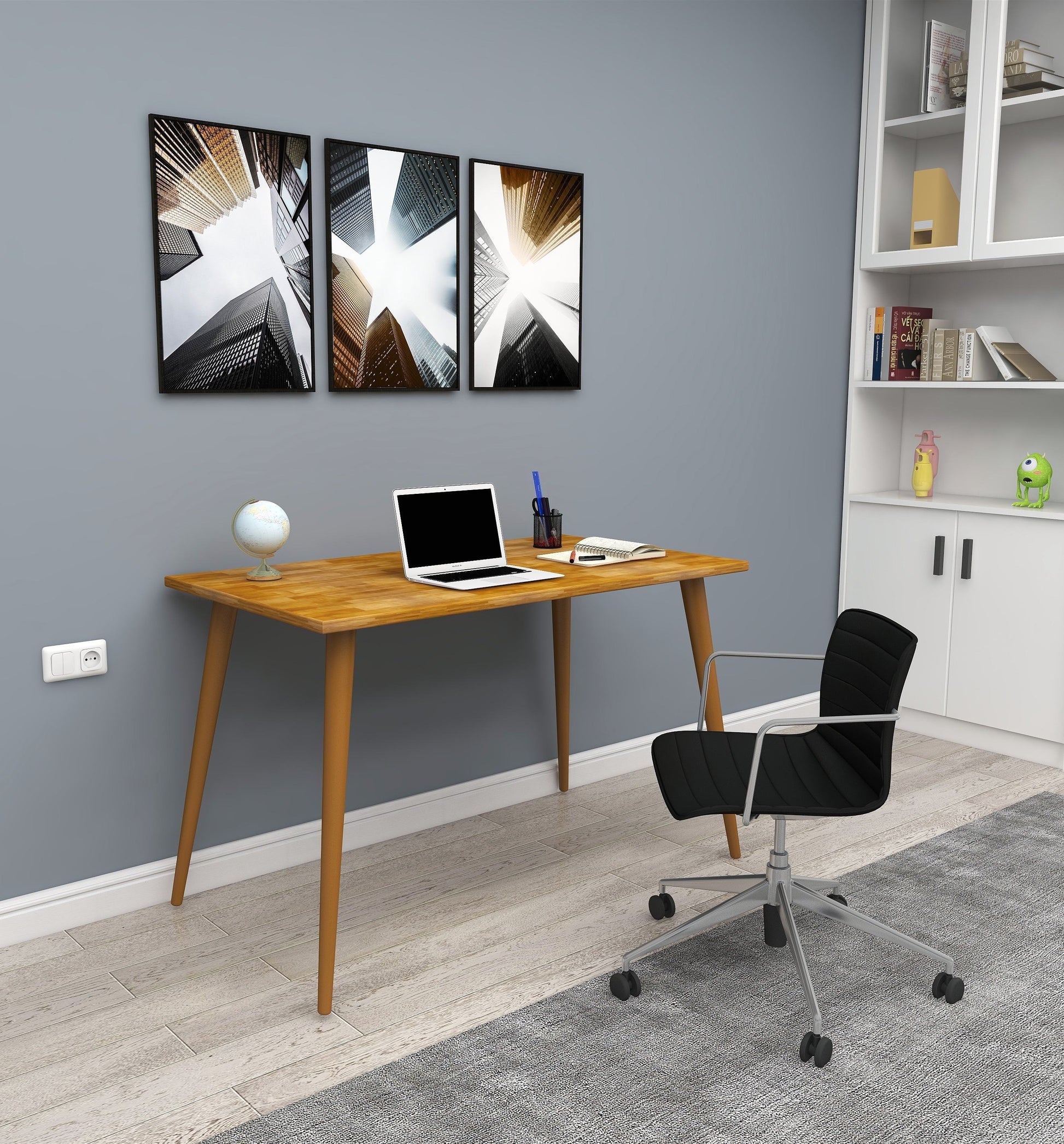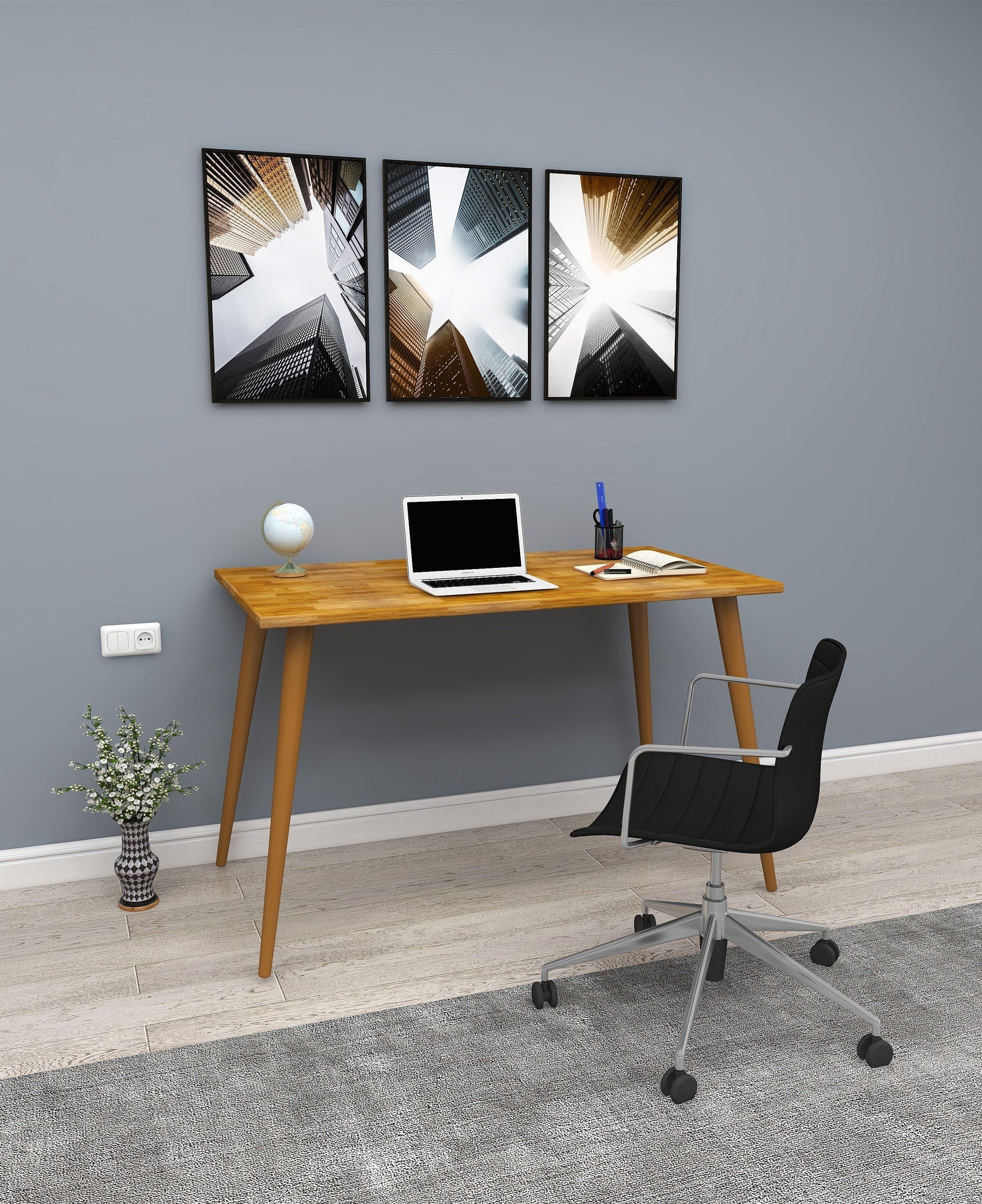 Solid Pine Wood Handmade Computer Desk with Beechwood Legs Ilana