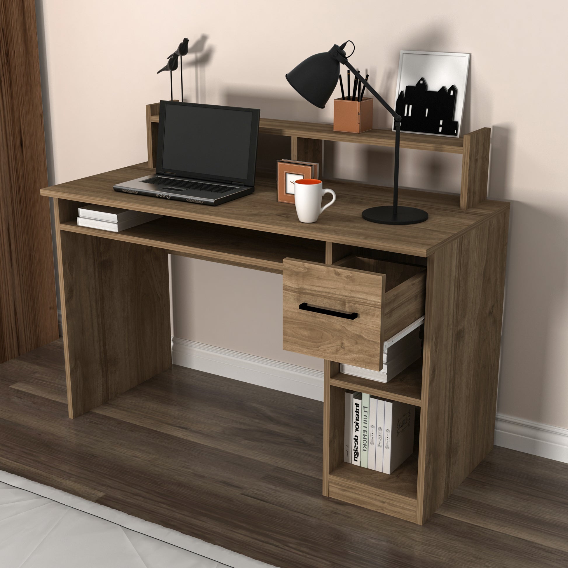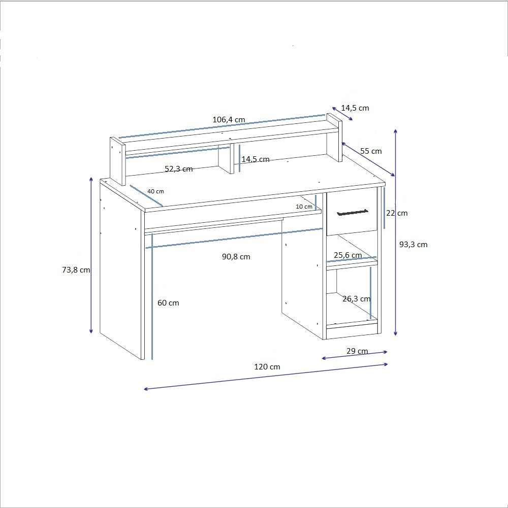 Computer Desk with Drawer and Shelves Milanos