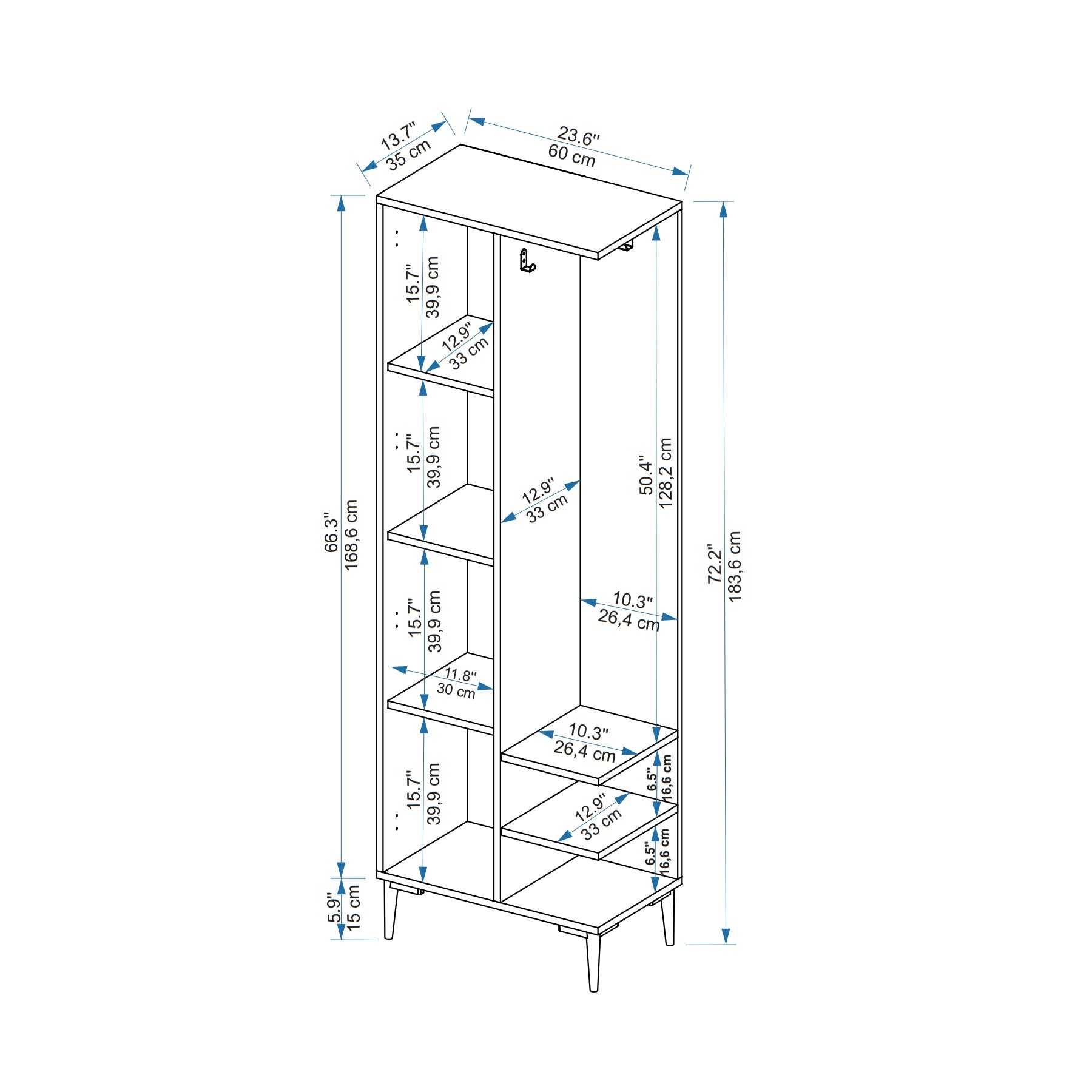 HEIGHT: 72.2" / 183.6 cm | WIDTH: 23.6" / 60 cm | DEPTH: 13.7" / 35 cm