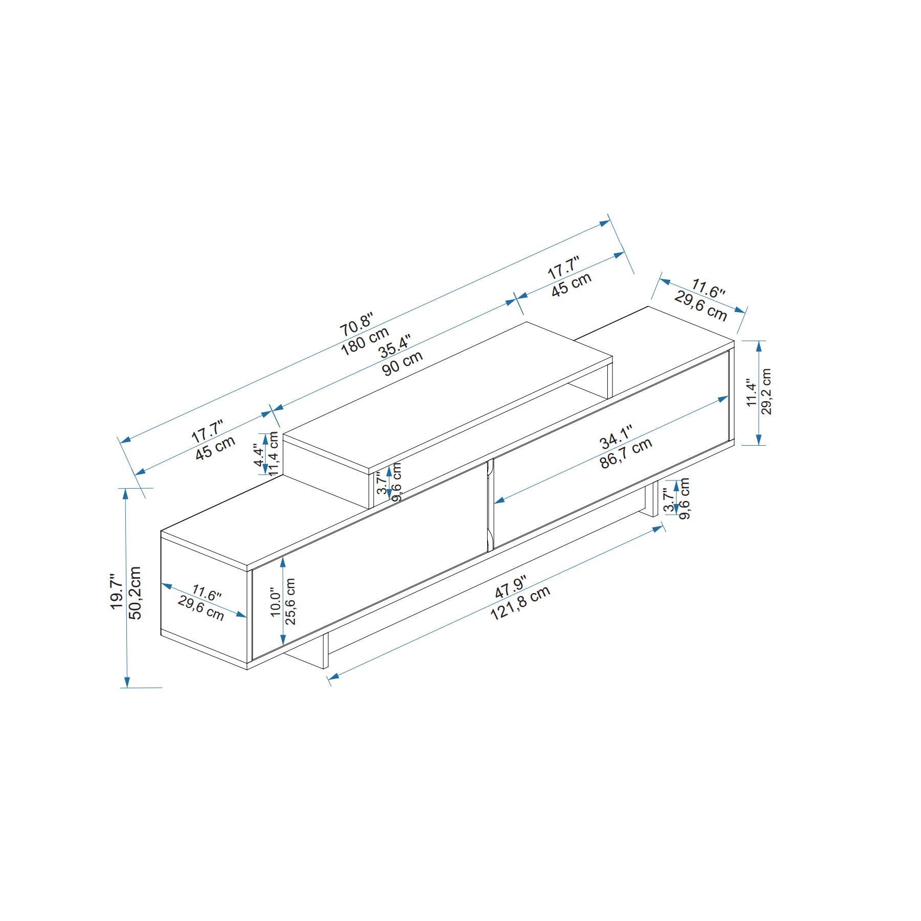 HEIGHT: 19.7" / 50.2 cm | WIDTH: 70.8" / 180 cm | DEPTH: 11.6" / 29.6 cm.