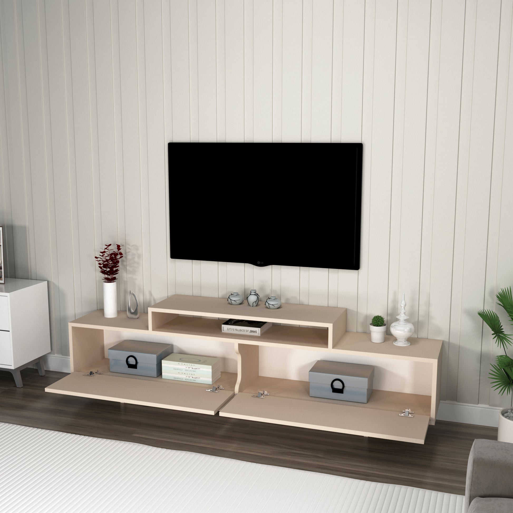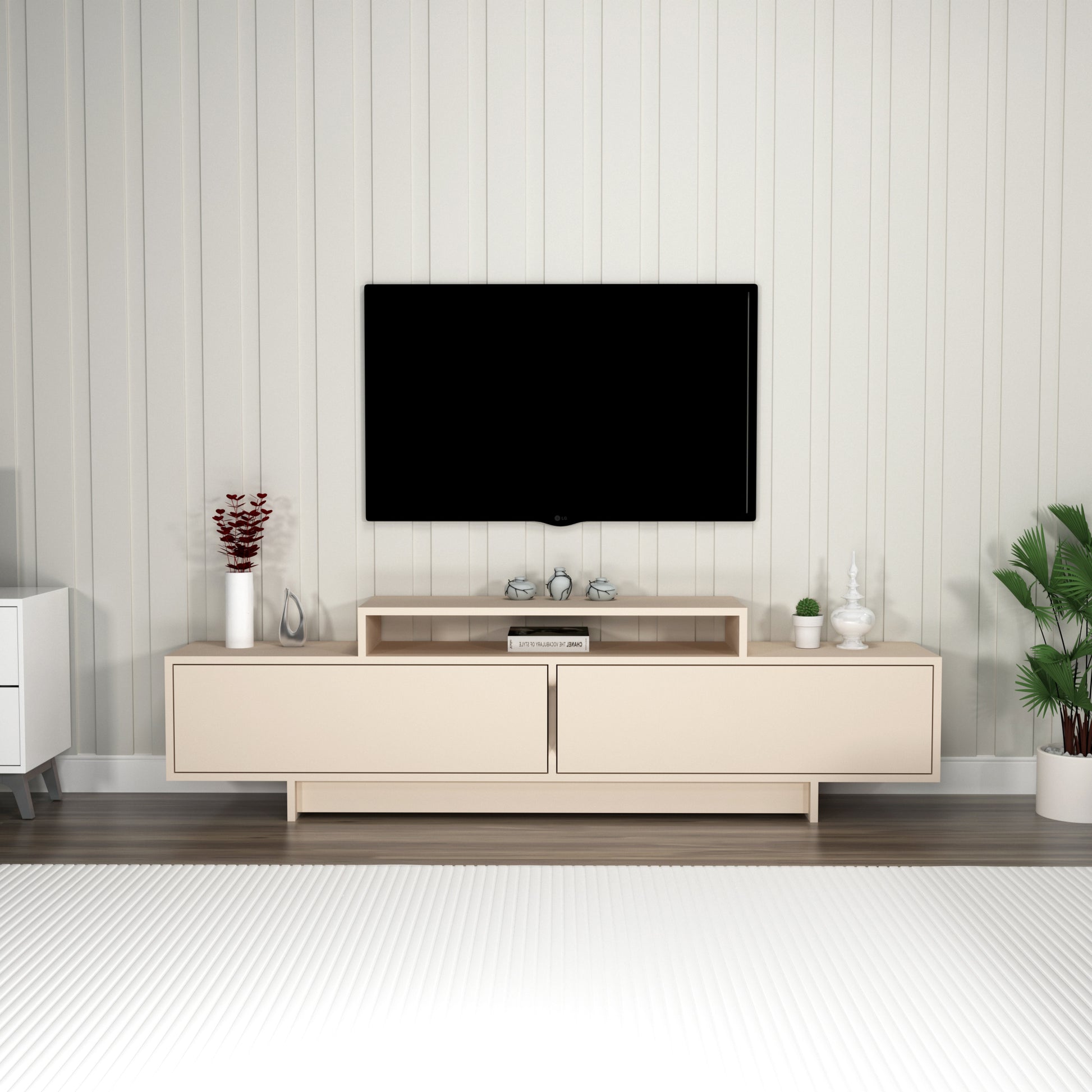 MATERIAL: The TV stand is made of an 18 mm thick quality melamine-coated particleboard. The manufactured wood surface is water-resistant to some extent and the edges are banded with PVC edge banding tape. First-class assembly/installation hardware and accessories are used. Our products are produced from certified quality raw materials that do not contain carcinogenic substances and comply with European Union health norms.