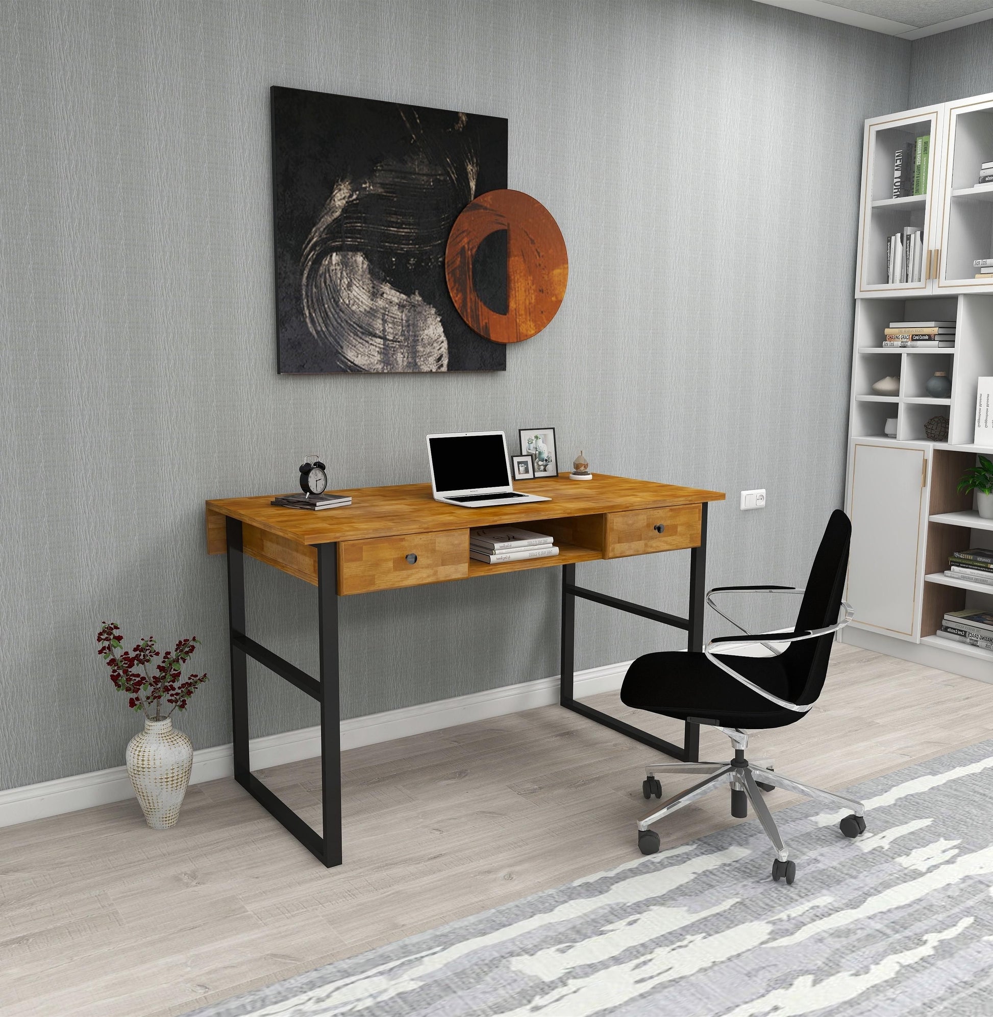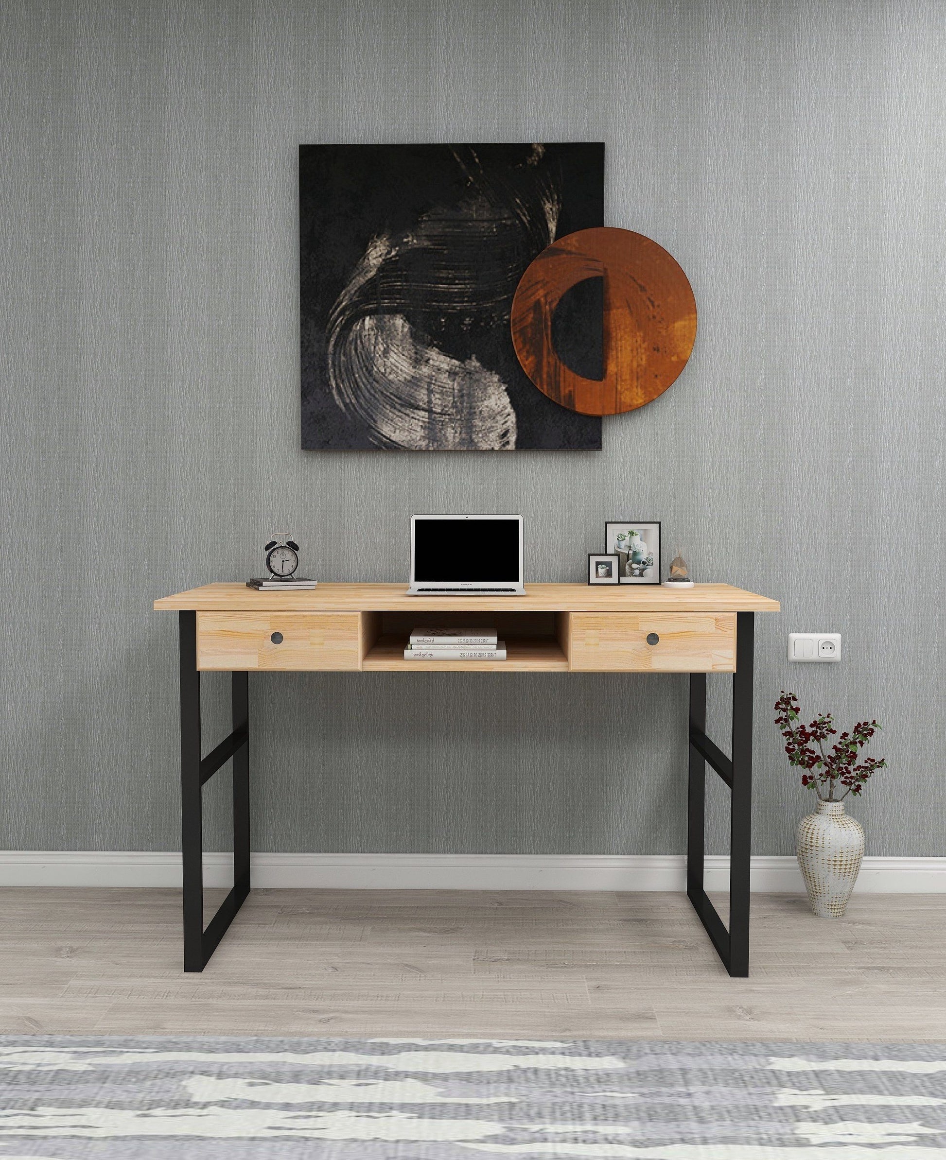 Solid Pine Wood Metal Frame Handmade Computer Desk with Drawers Elowen