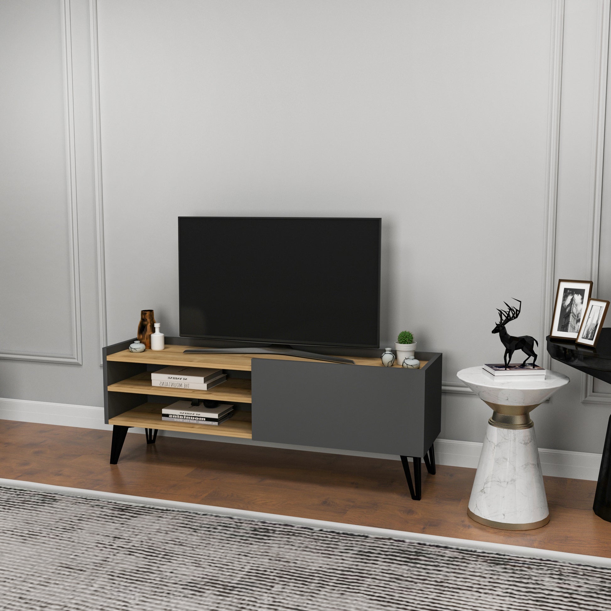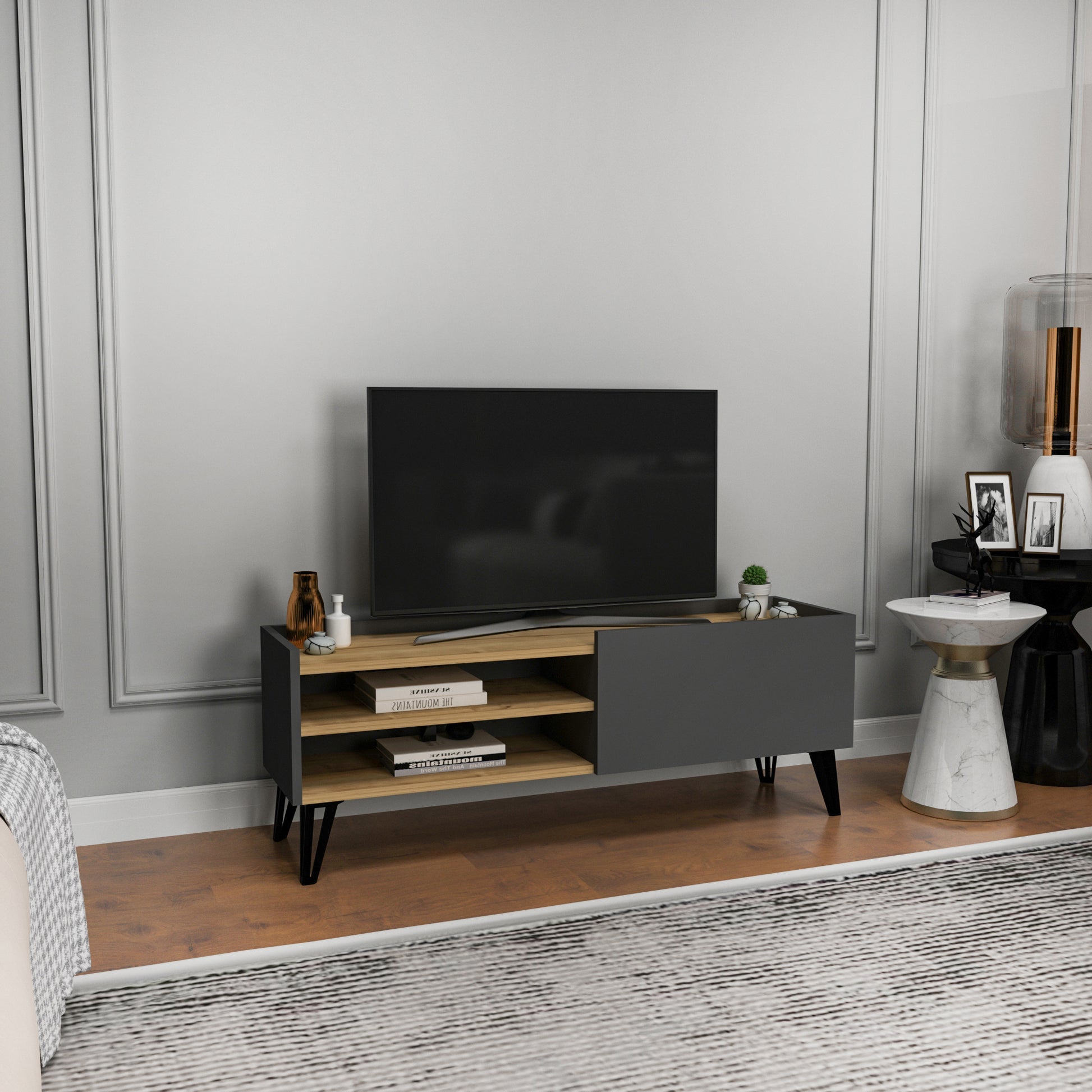 Presentamos el mueble de TV con gabinete y estantes Cavera. Este moderno mueble y consola multimedia está diseñado para realzar y realzar tu espacio de entretenimiento. Con un diseño elegante y contemporáneo, ofrece amplio espacio de almacenamiento para tus dispositivos multimedia y decoración. Fabricado con materiales de calidad, es el complemento perfecto para cualquier sala de estar moderna.