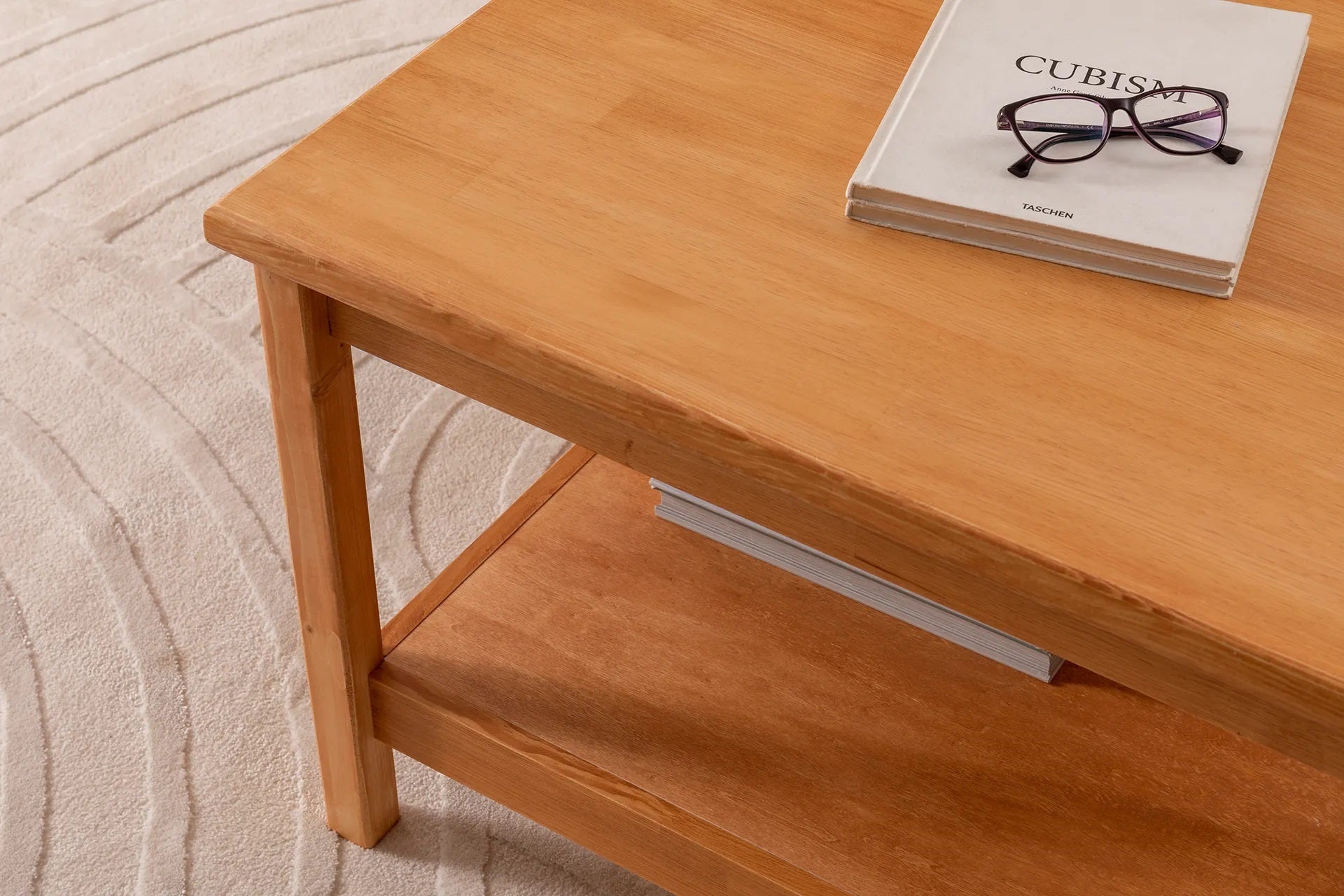 Mesa de centro de madera maciza de pino hecha a mano con estante de almacenamiento para sala de estar, hogar y oficina Dawn