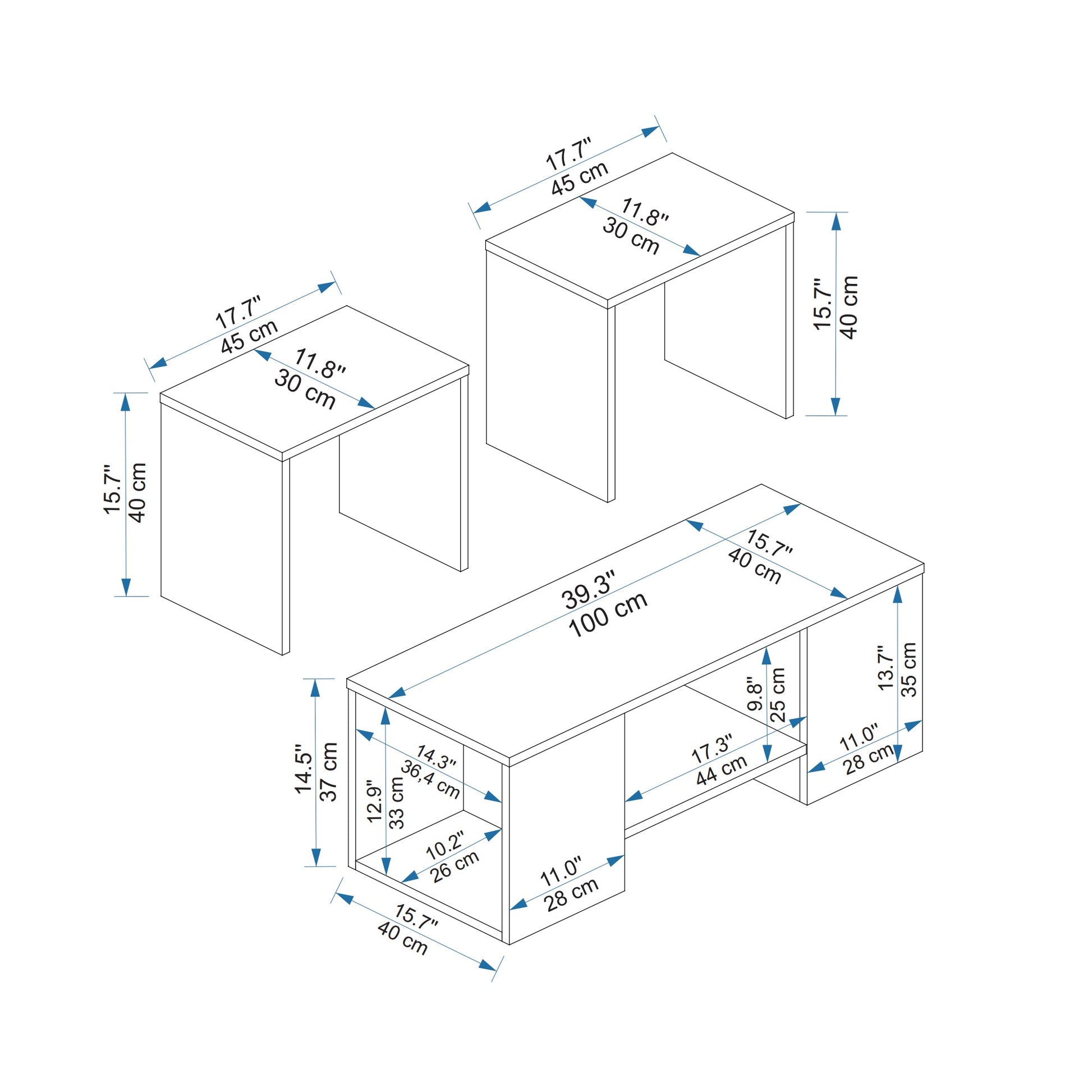 Una de las características clave de este juego de mesas de centro nido son sus estantes abiertos, que ofrecen amplio espacio de almacenamiento para libros, revistas, controles remotos y otros artículos esenciales. Mantén tu sala de estar ordenada y organizada, mientras exhibes tus artículos favoritos a mano.