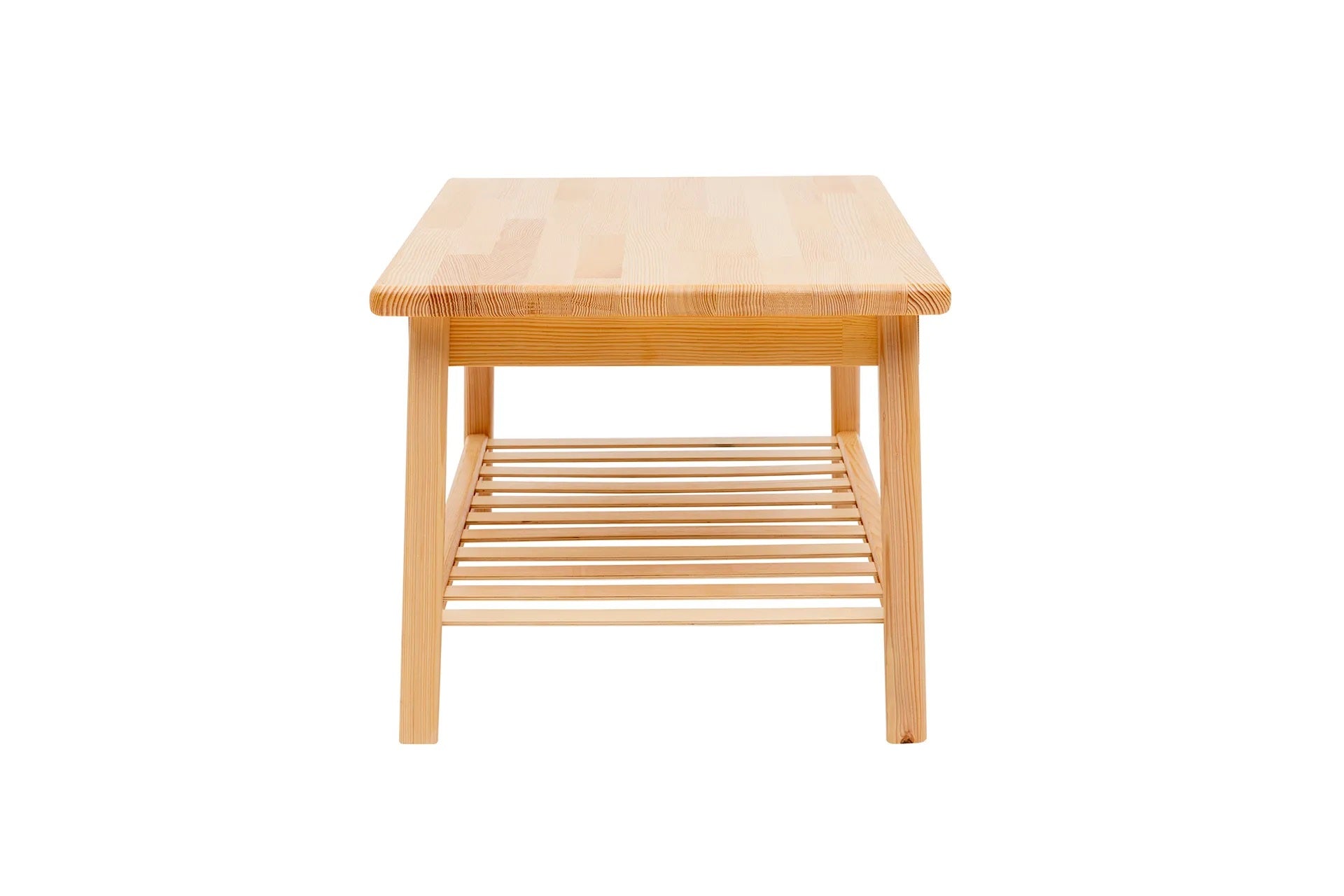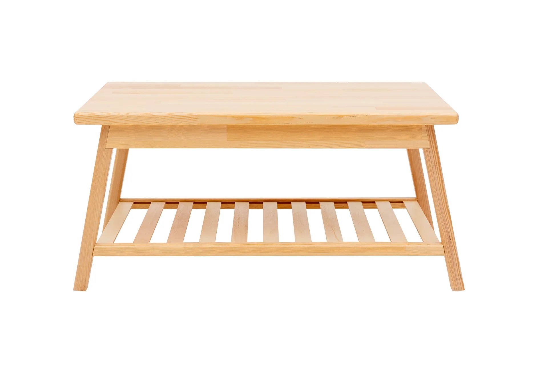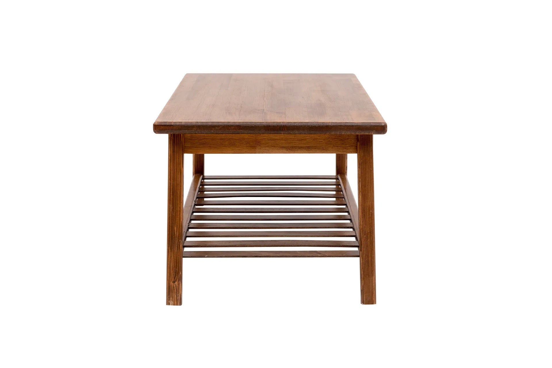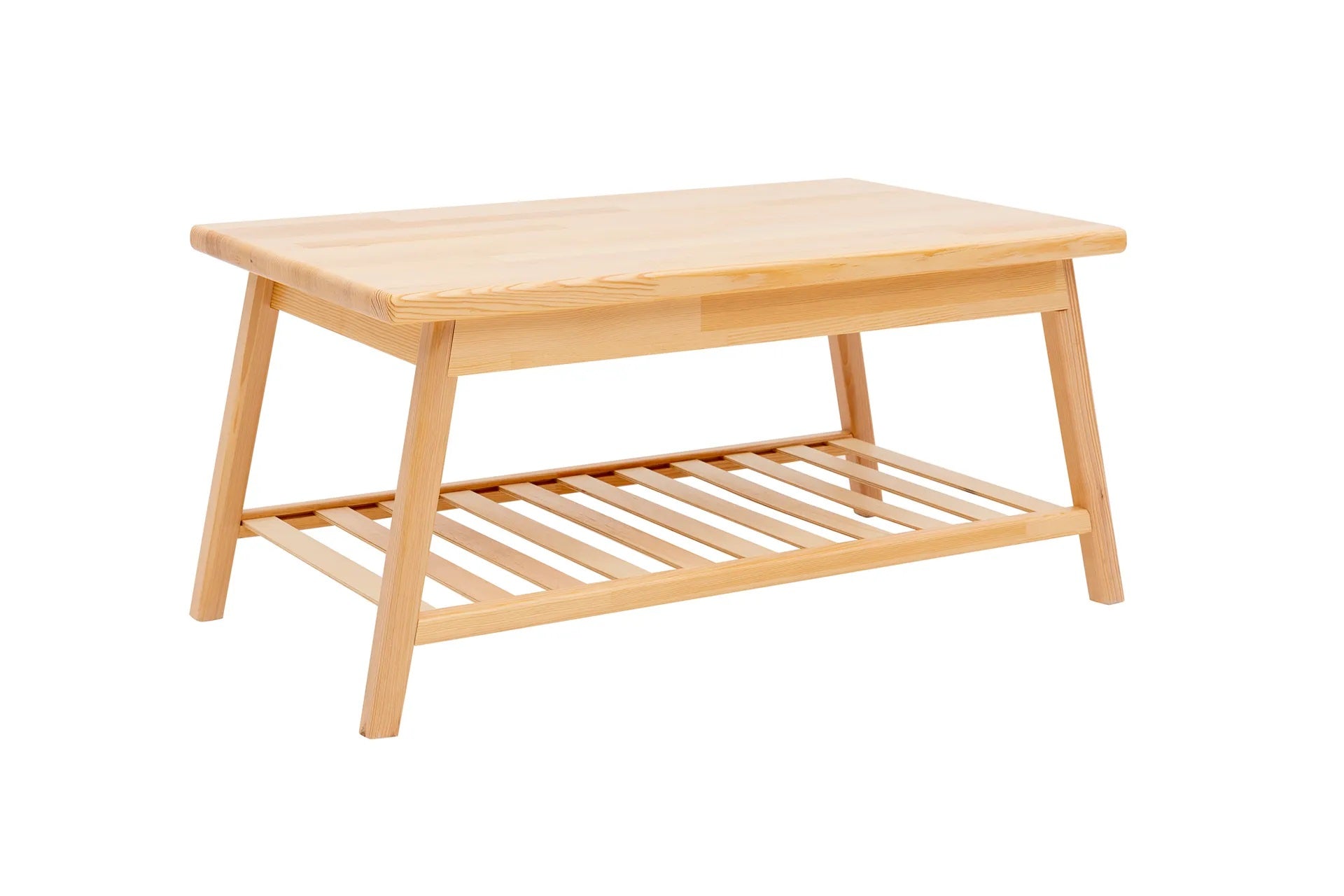 Mesa de centro de madera maciza de pino hecha a mano con estante de almacenamiento Ayla