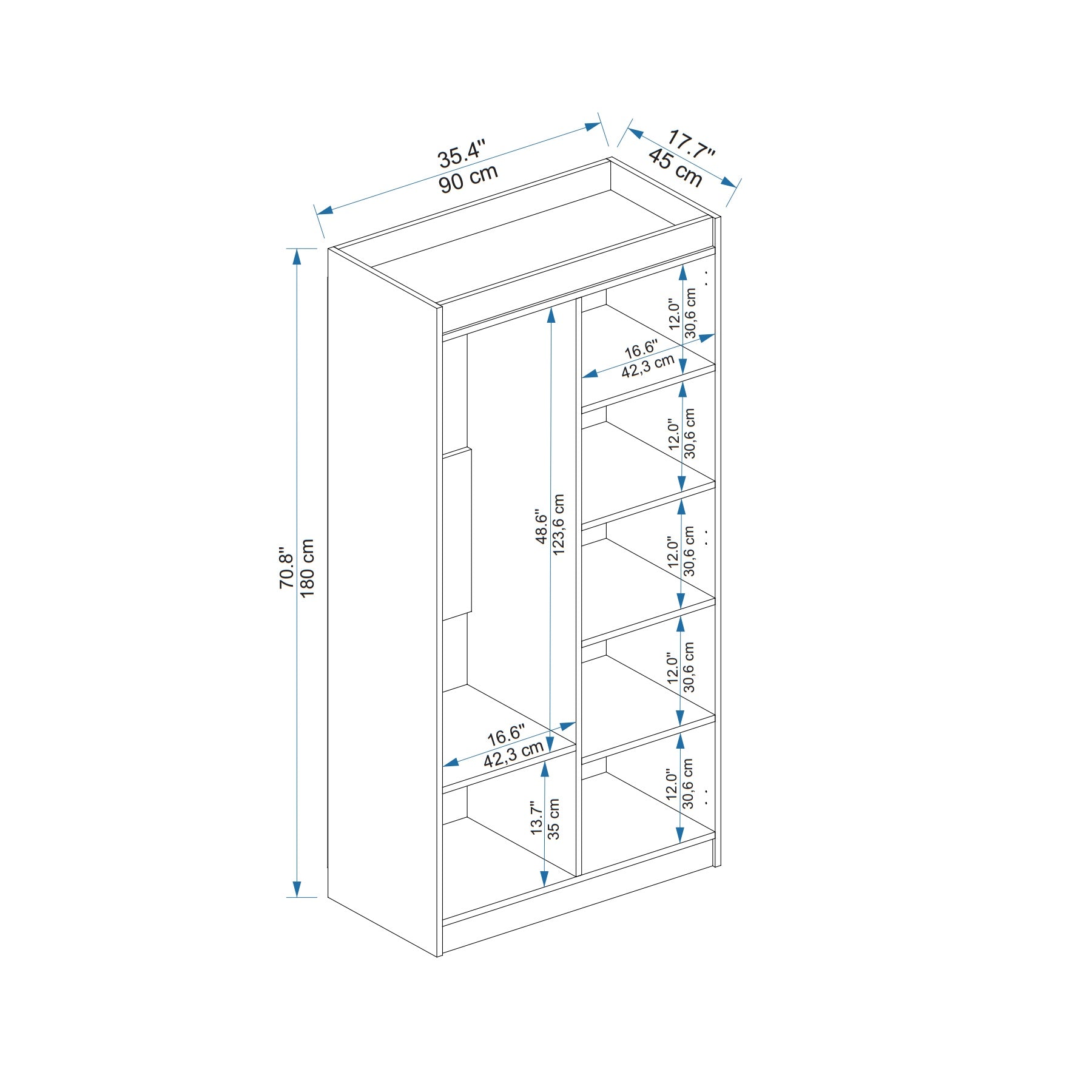 HAUTEUR : 70,8" / 180 cm | LARGEUR : 35,4" / 90 cm | PROFONDEUR : 17,7" / 45 cm.