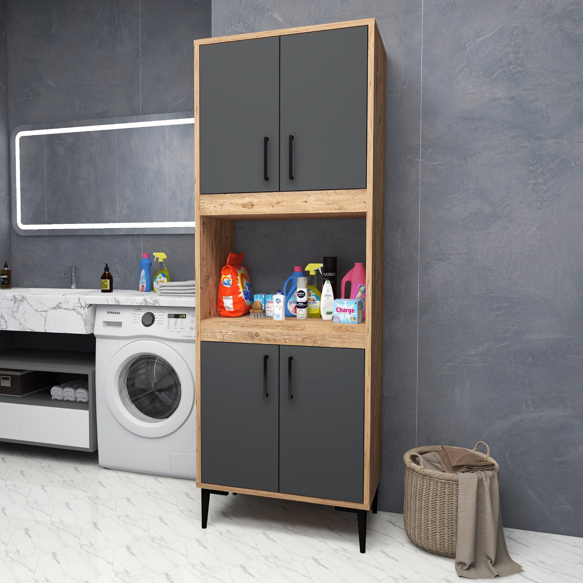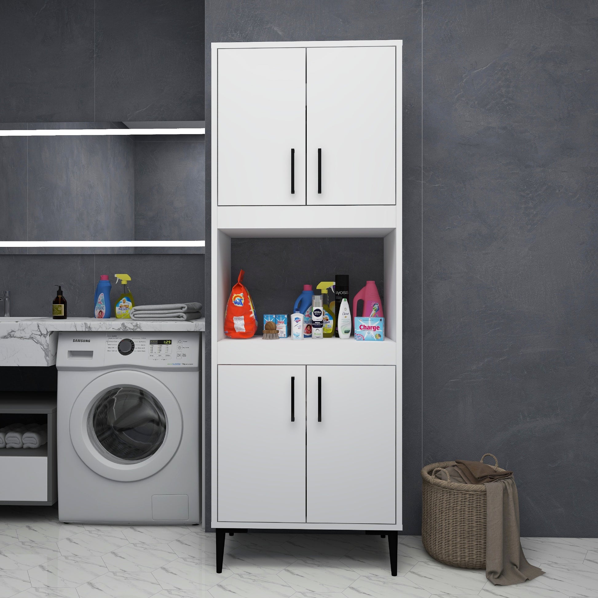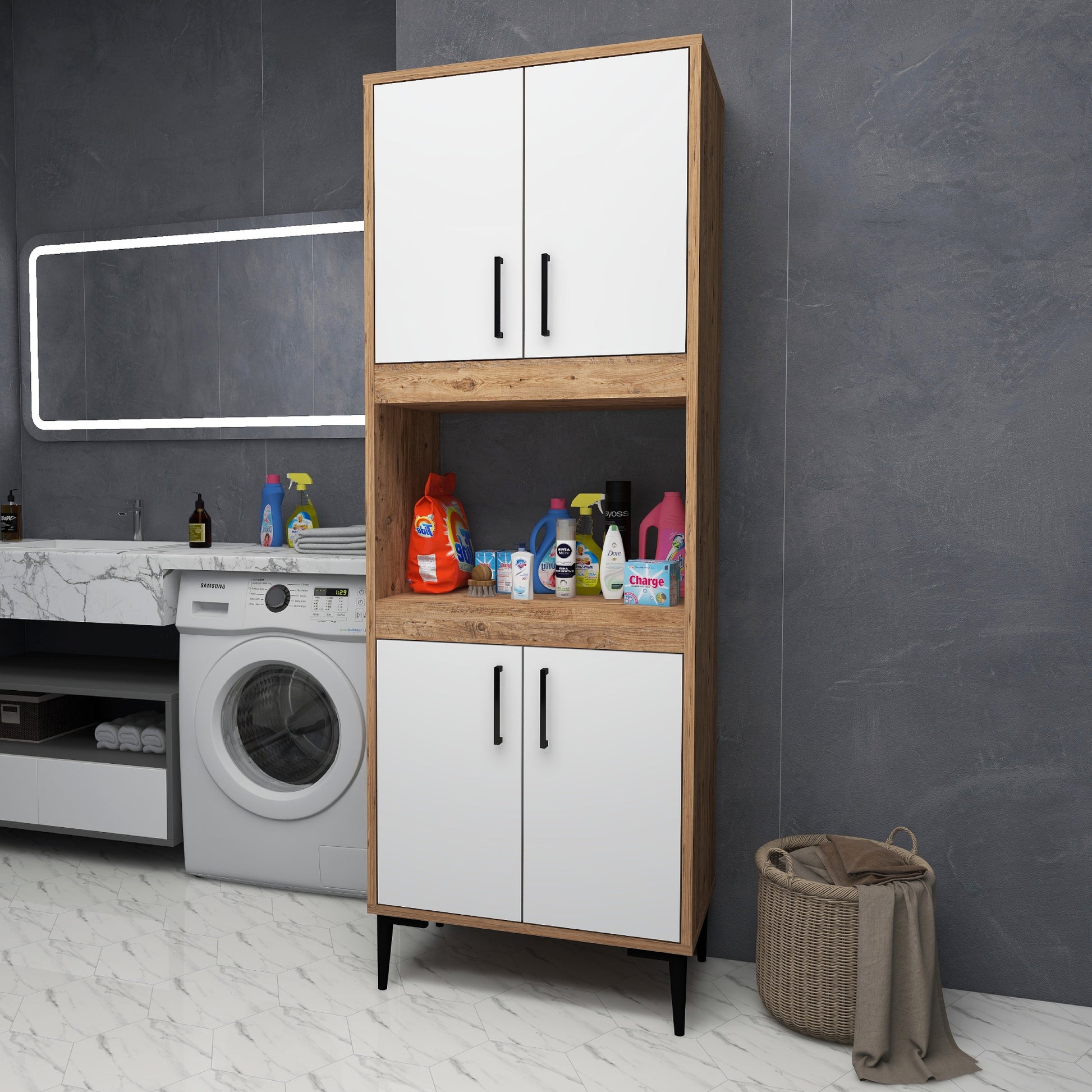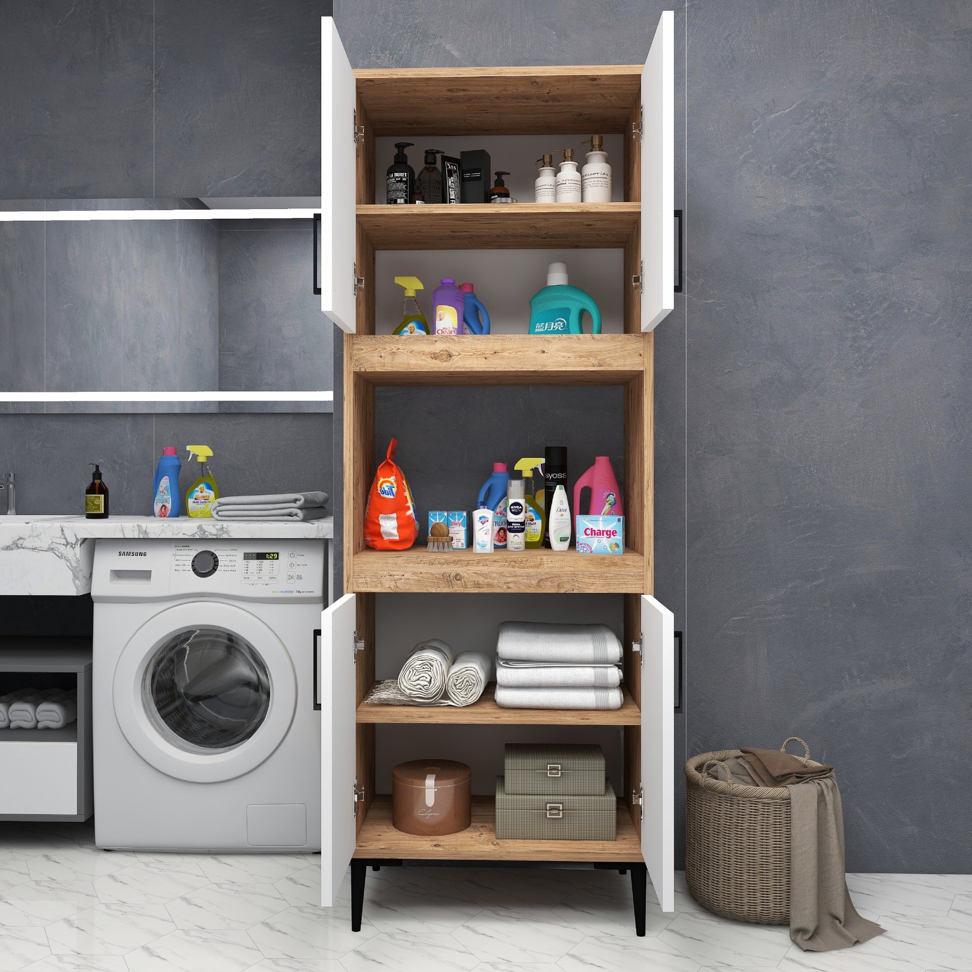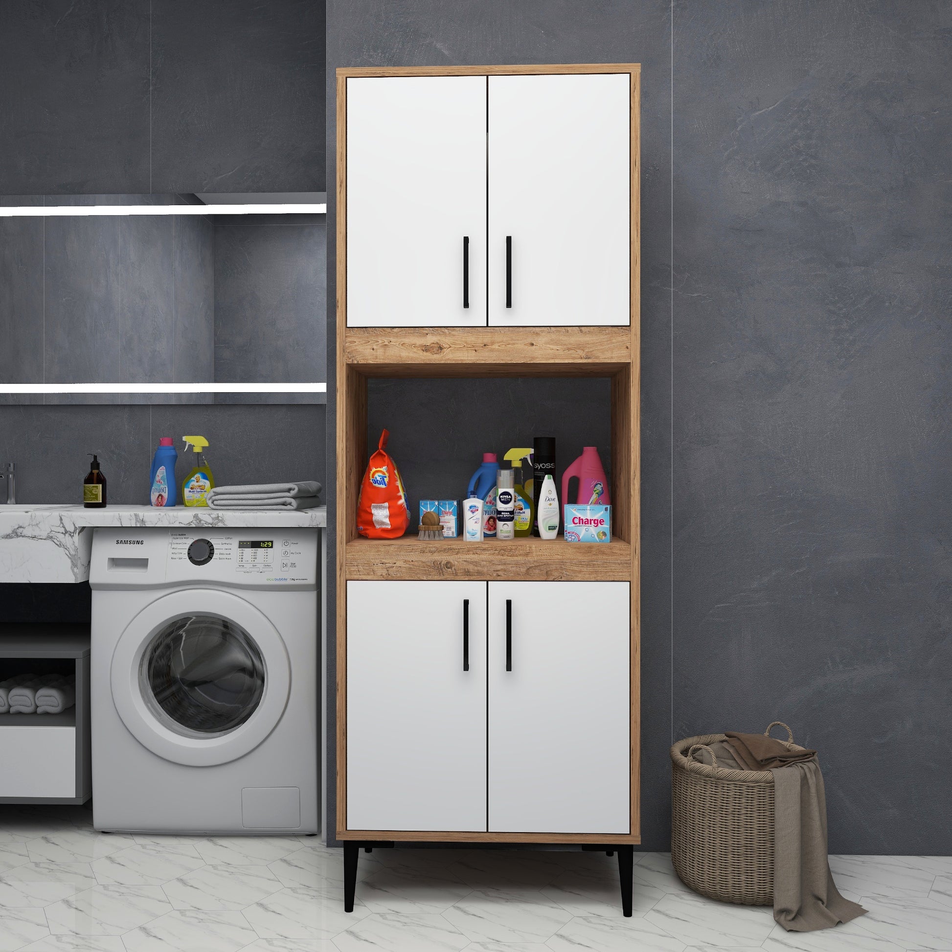 Ce meuble est un ajout contemporain et élégant à toute salle de bains. Il est doté d'une étagère de rangement ouverte, de deux placards avec quatre étagères intérieures et de portes à charnières métalliques pour une durabilité optimale. Ce meuble est durable et apportera une touche de modernité à toute salle de bains.