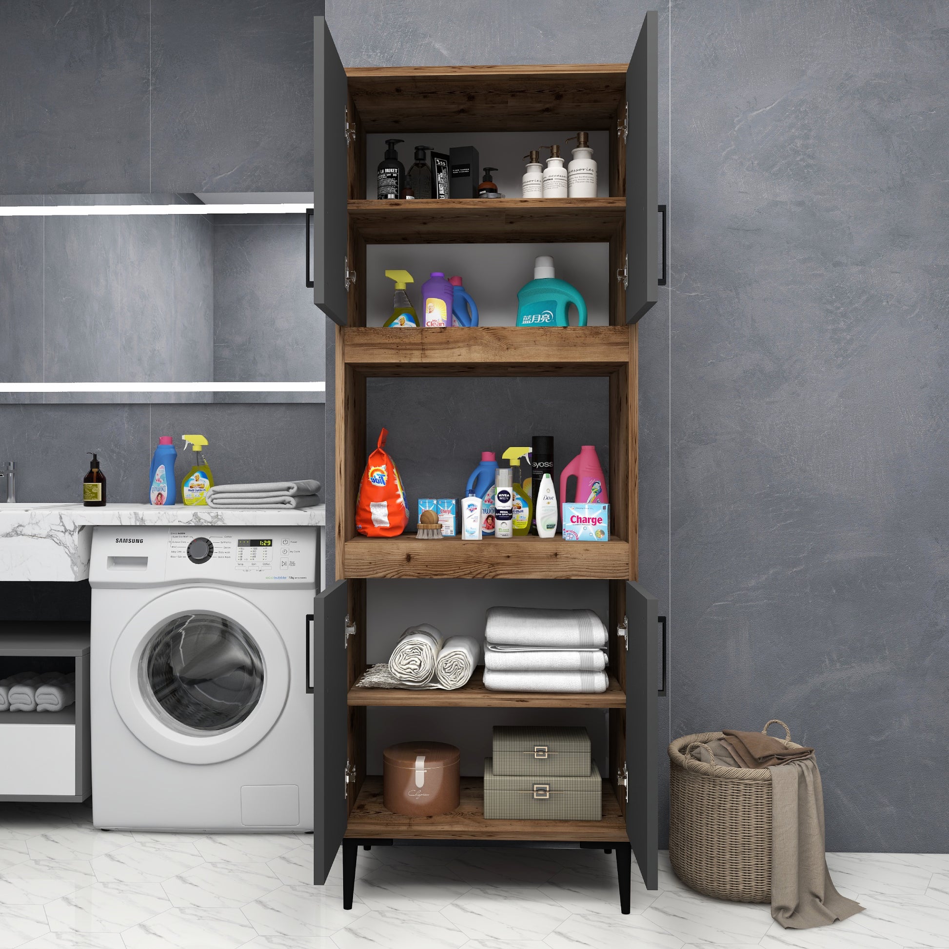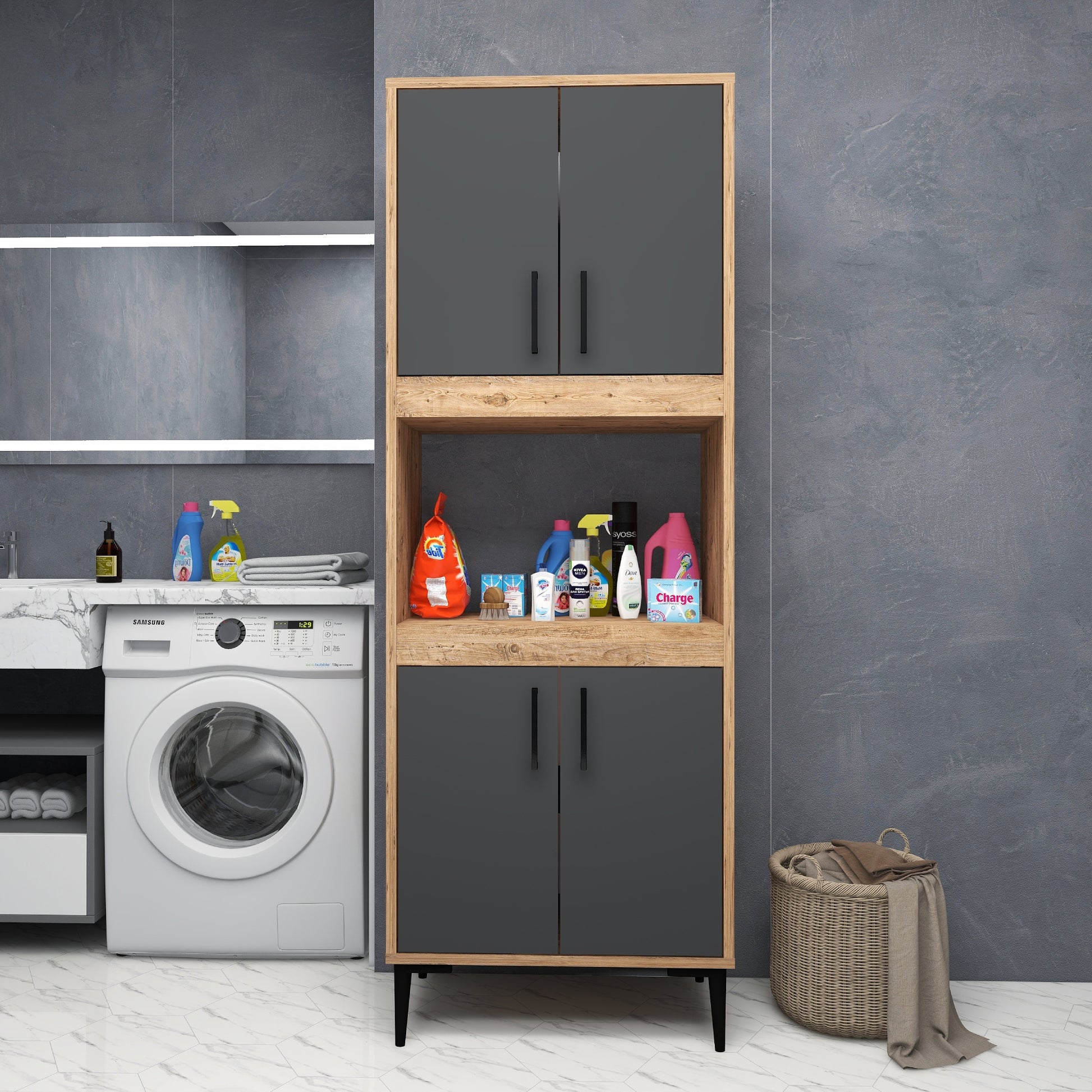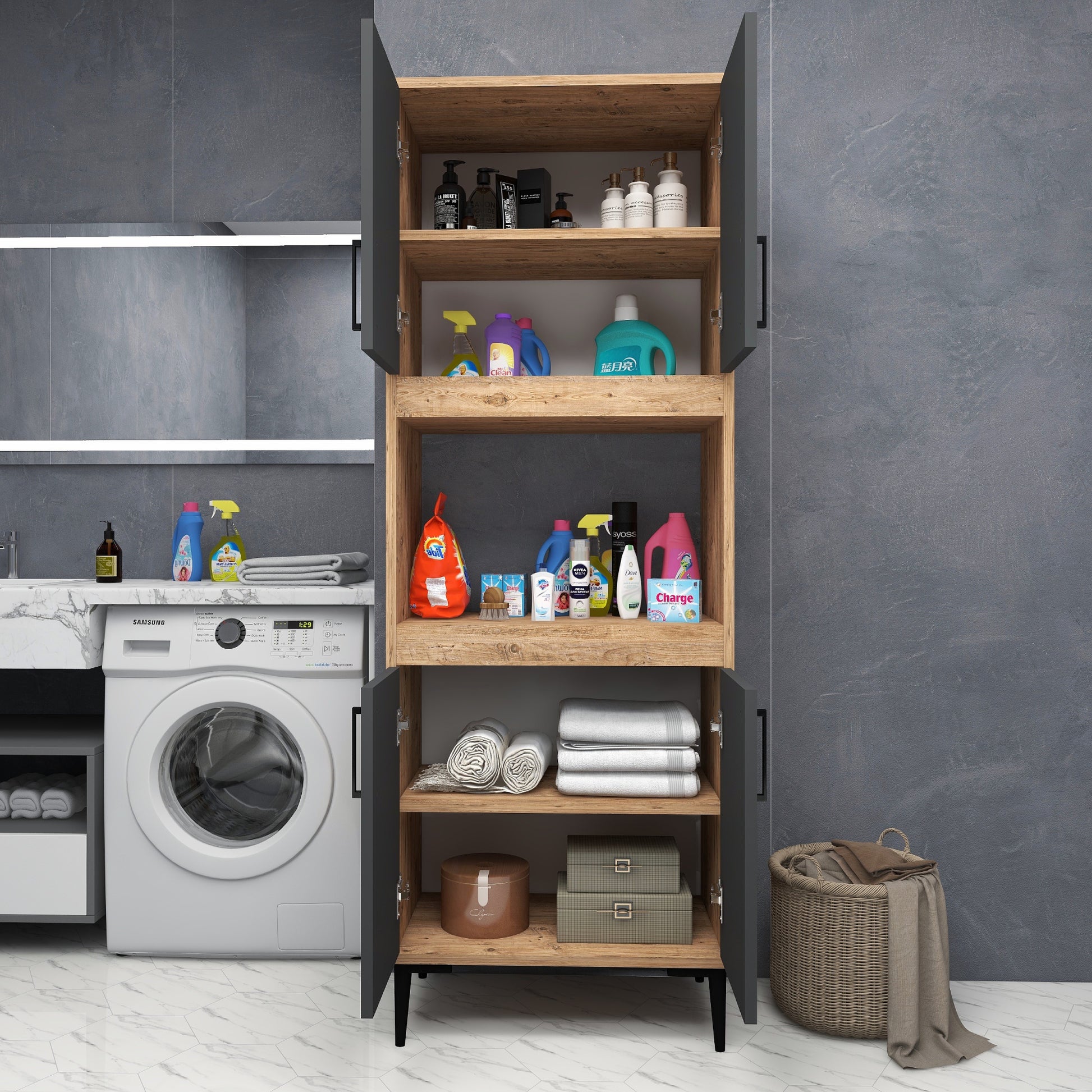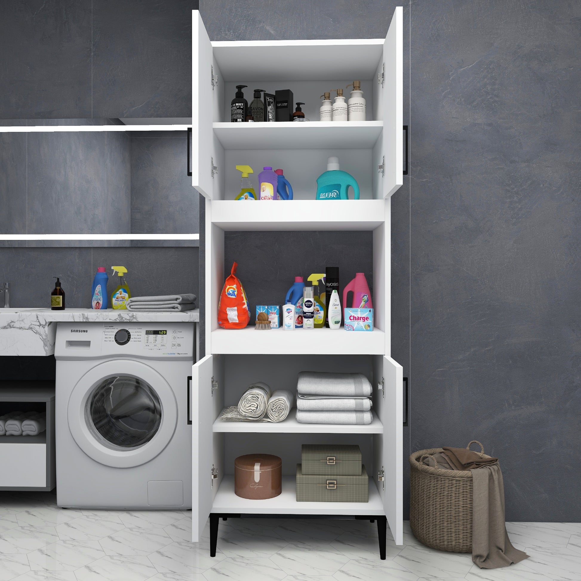 Ce meuble est un ajout contemporain et élégant à toute salle de bains. Il est doté d'une étagère de rangement ouverte, de deux placards avec quatre étagères intérieures et de portes à charnières métalliques pour une durabilité optimale. Ce meuble est durable et apportera une touche de modernité à toute salle de bains.