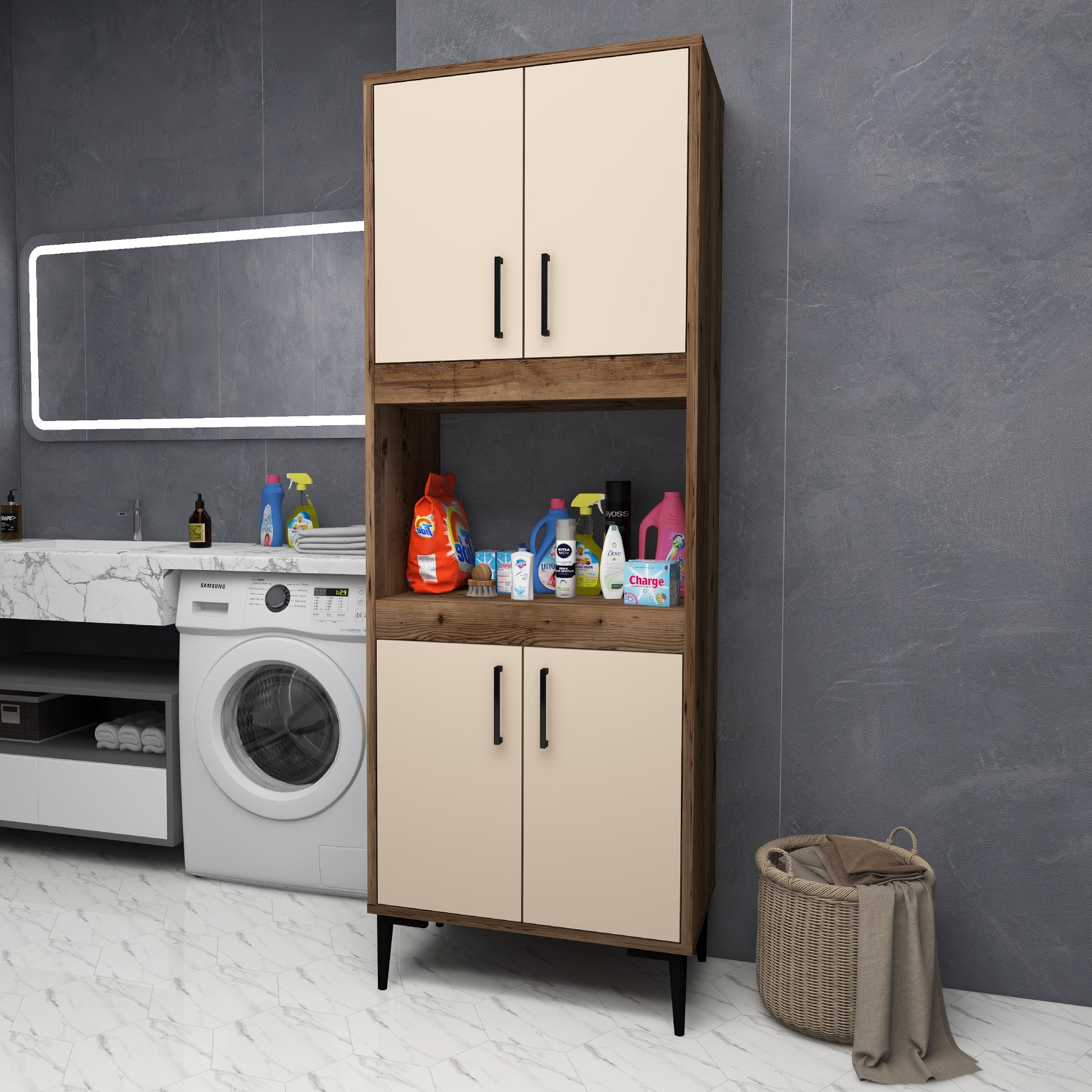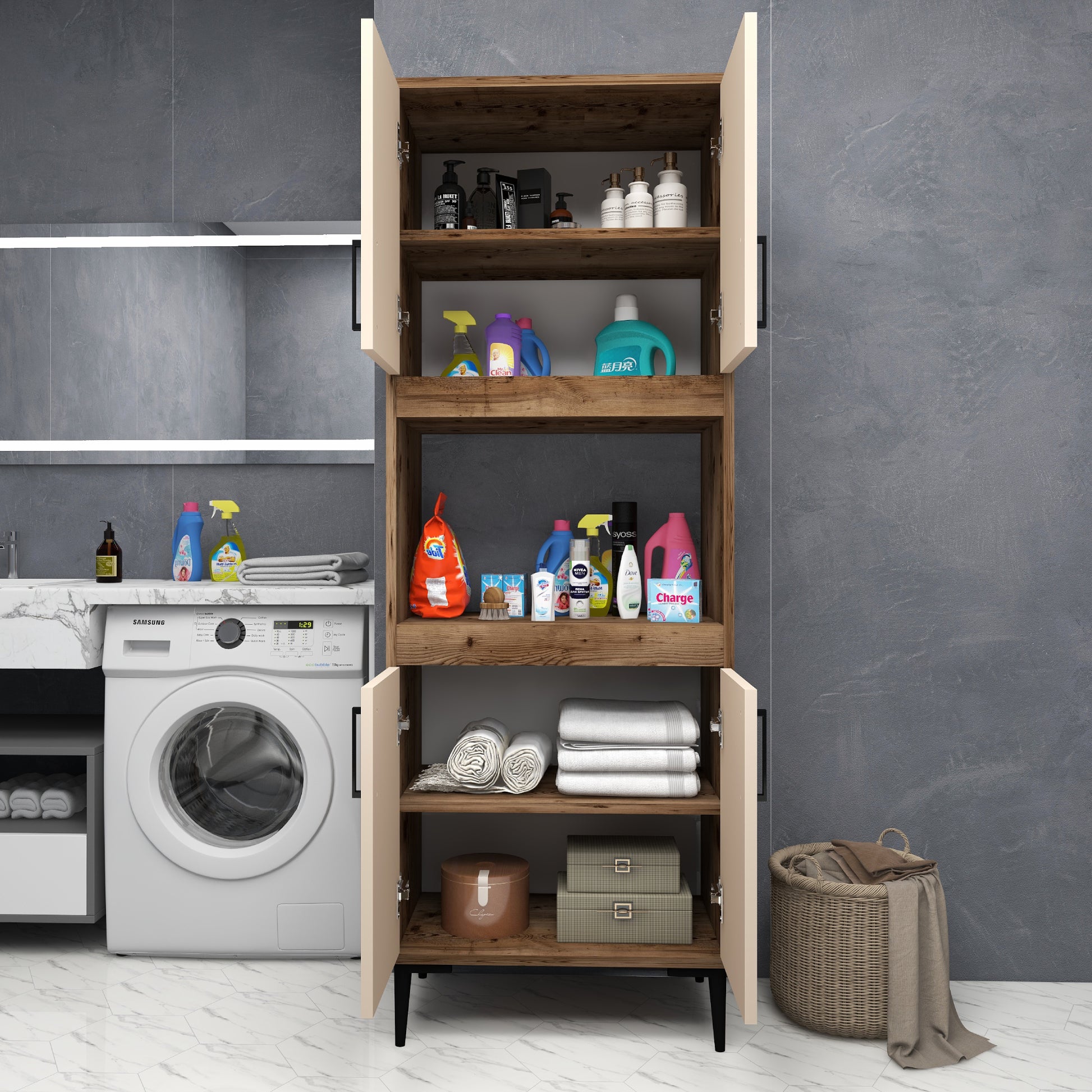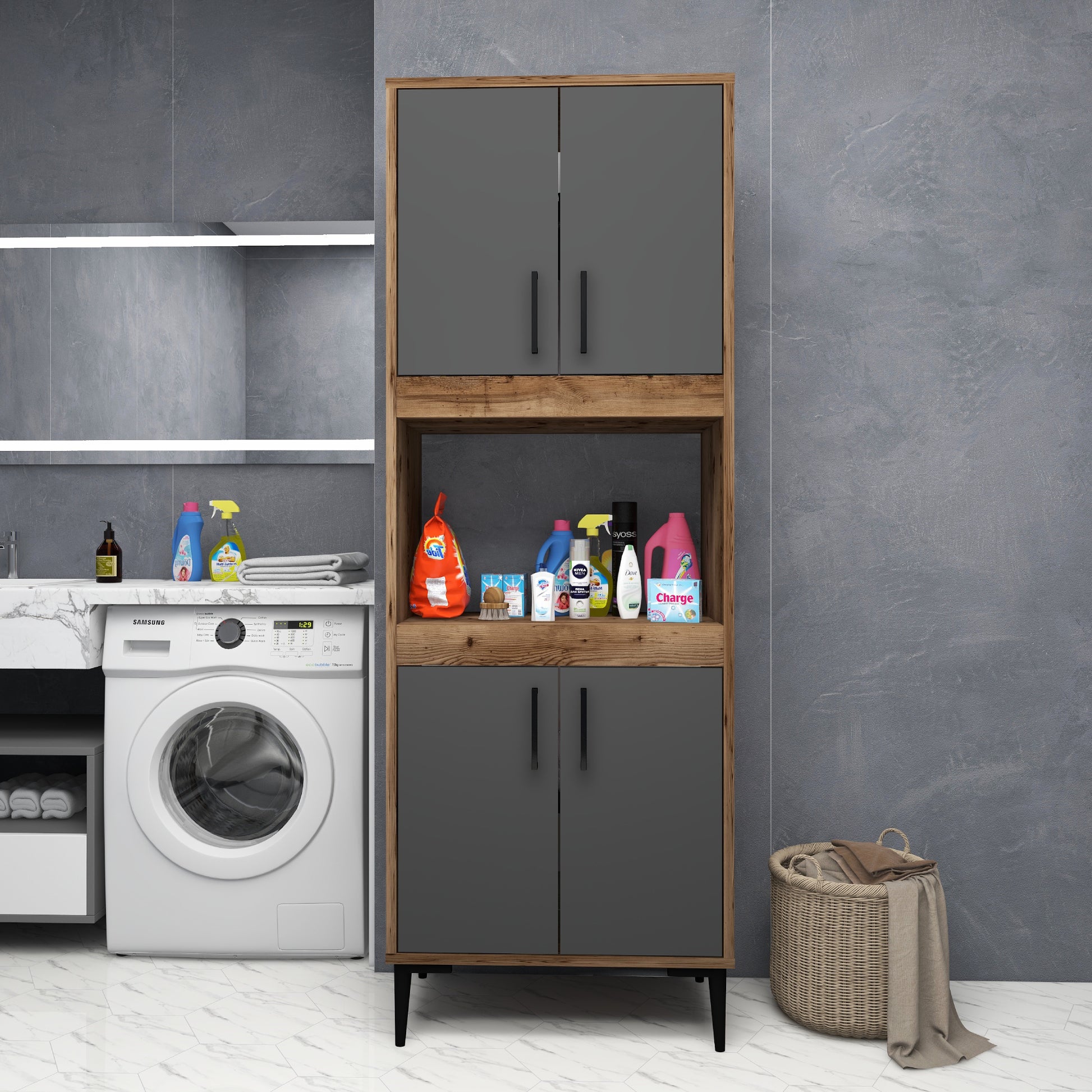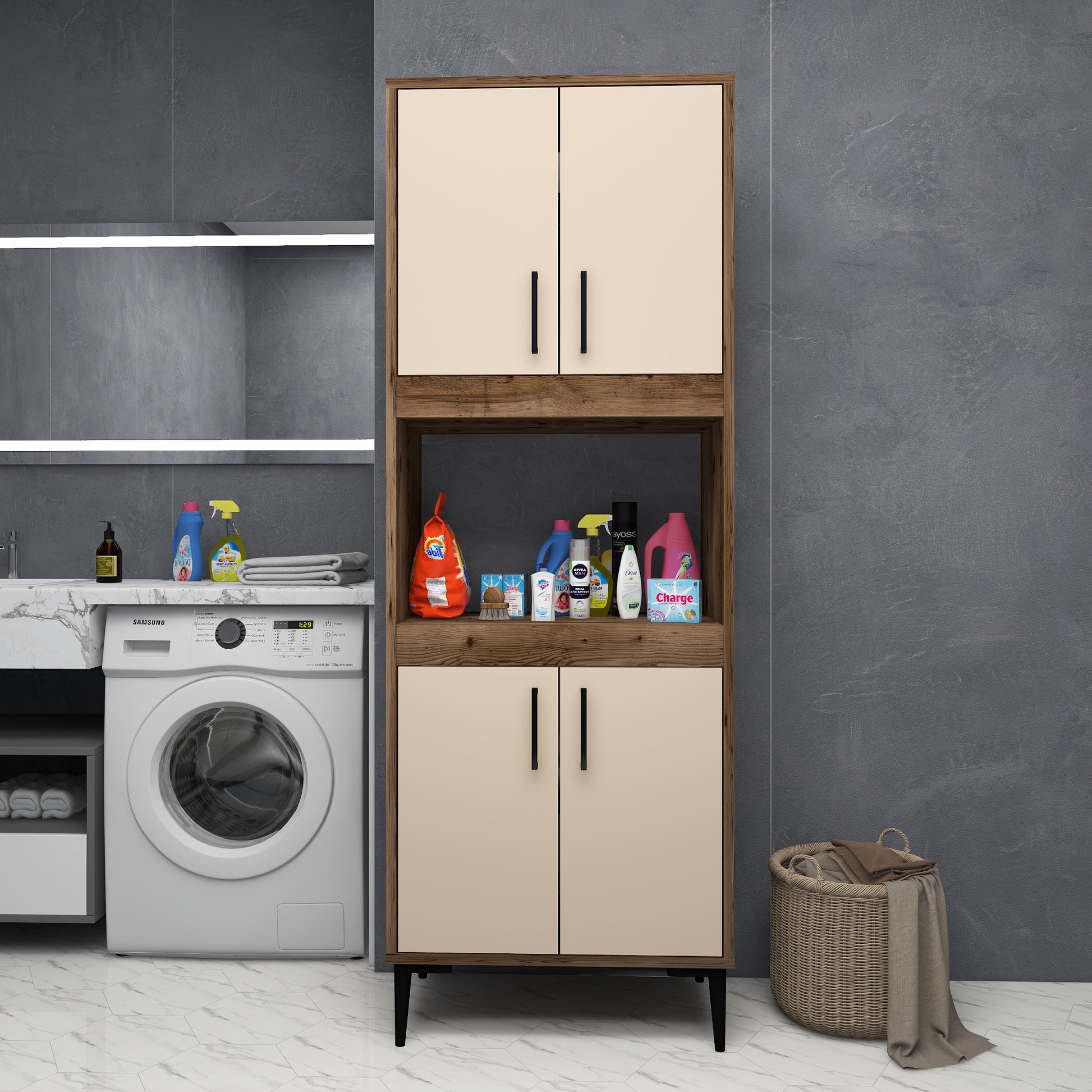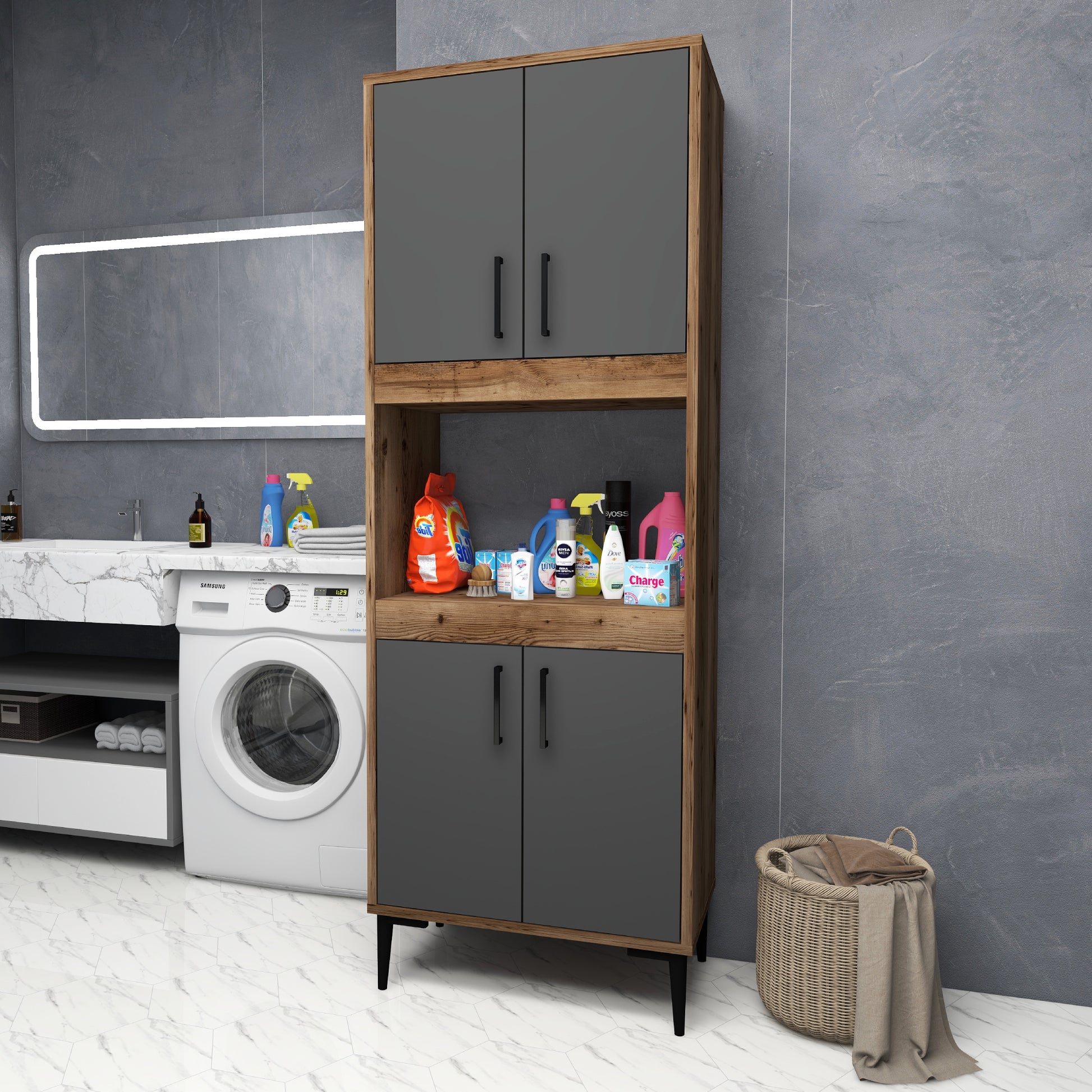 Ce meuble est un ajout contemporain et élégant à toute salle de bains. Il est doté d'une étagère de rangement ouverte, de deux placards avec quatre étagères intérieures et de portes à charnières métalliques pour une durabilité optimale. Ce meuble est durable et apportera une touche de modernité à toute salle de bains.