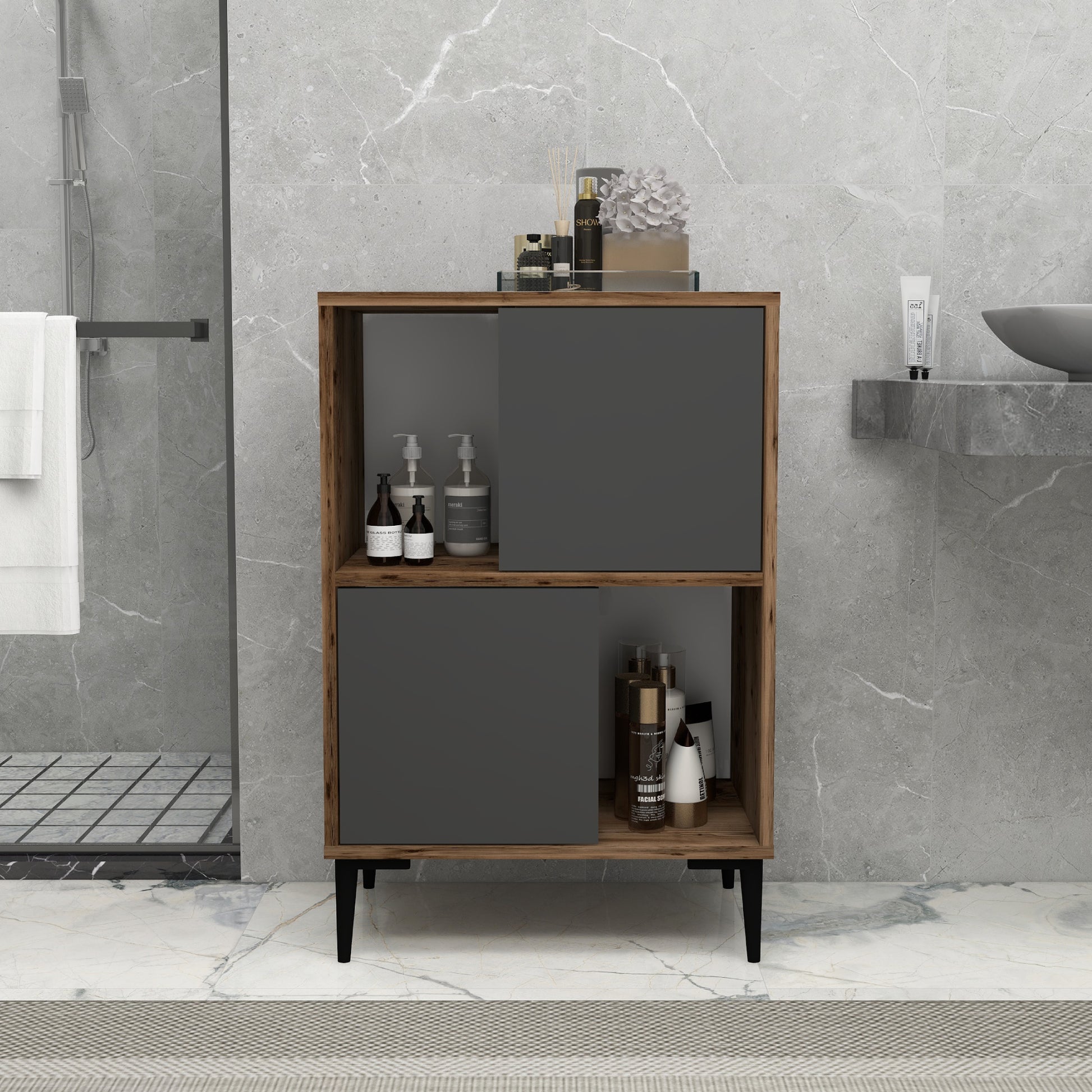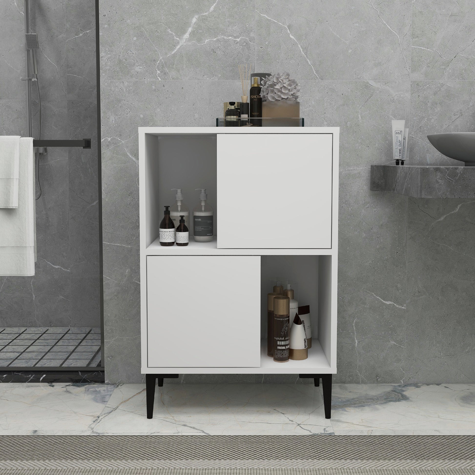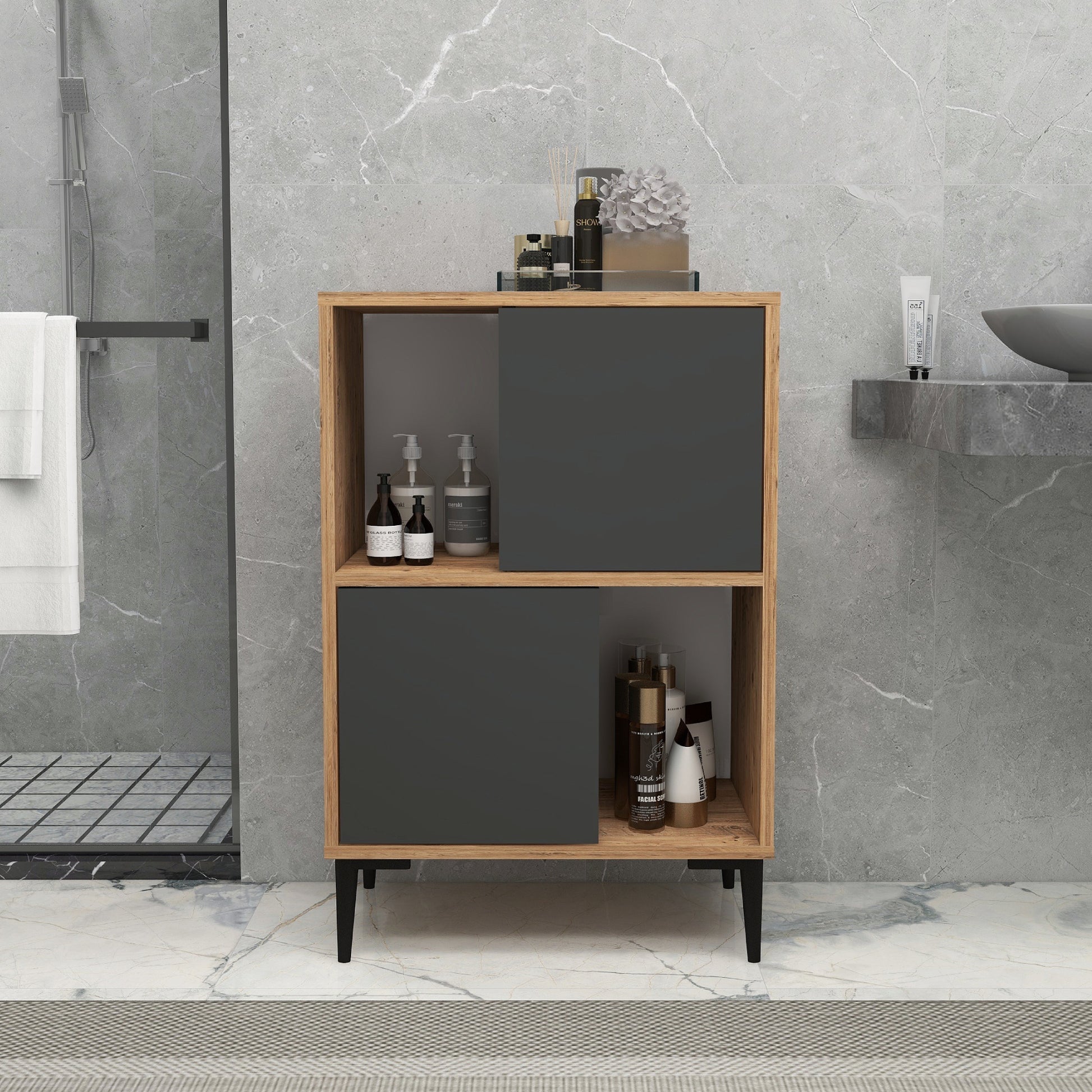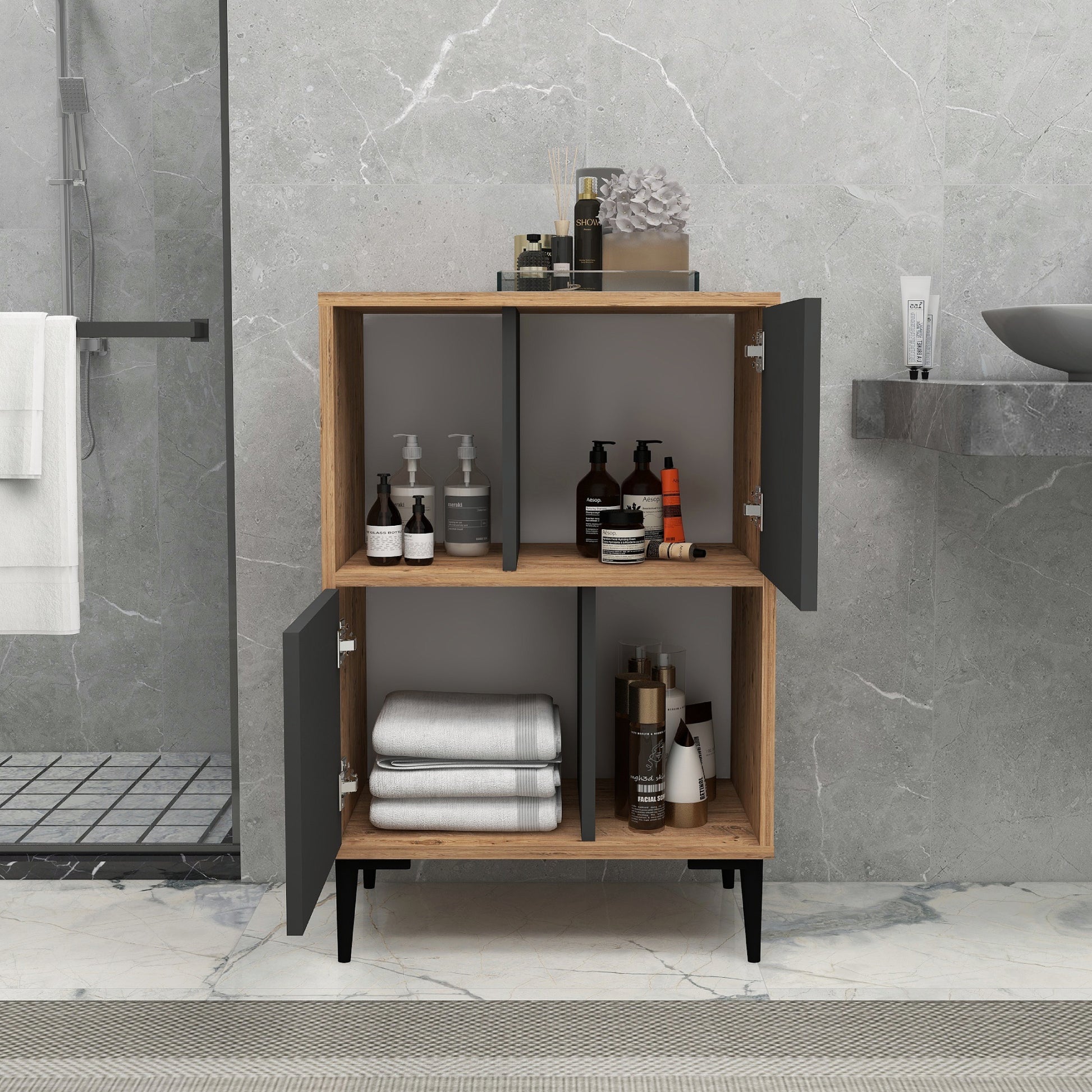 L'armoire de salle de bain Jeremy est une solution de rangement contemporaine pour votre salle de bain. Avec ses deux étagères ouvertes et ses deux placards fermés, elle offre un espace généreux pour tous vos essentiels. Fabriquée en panneaux de particules de haute qualité avec une finition en placage mélaminé durable et soutenue par des pieds en plastique robustes, elle est conçue pour durer. Gardez votre salle de bain ordonnée et ordonnée grâce à l'armoire de salle de bain Jeremy.