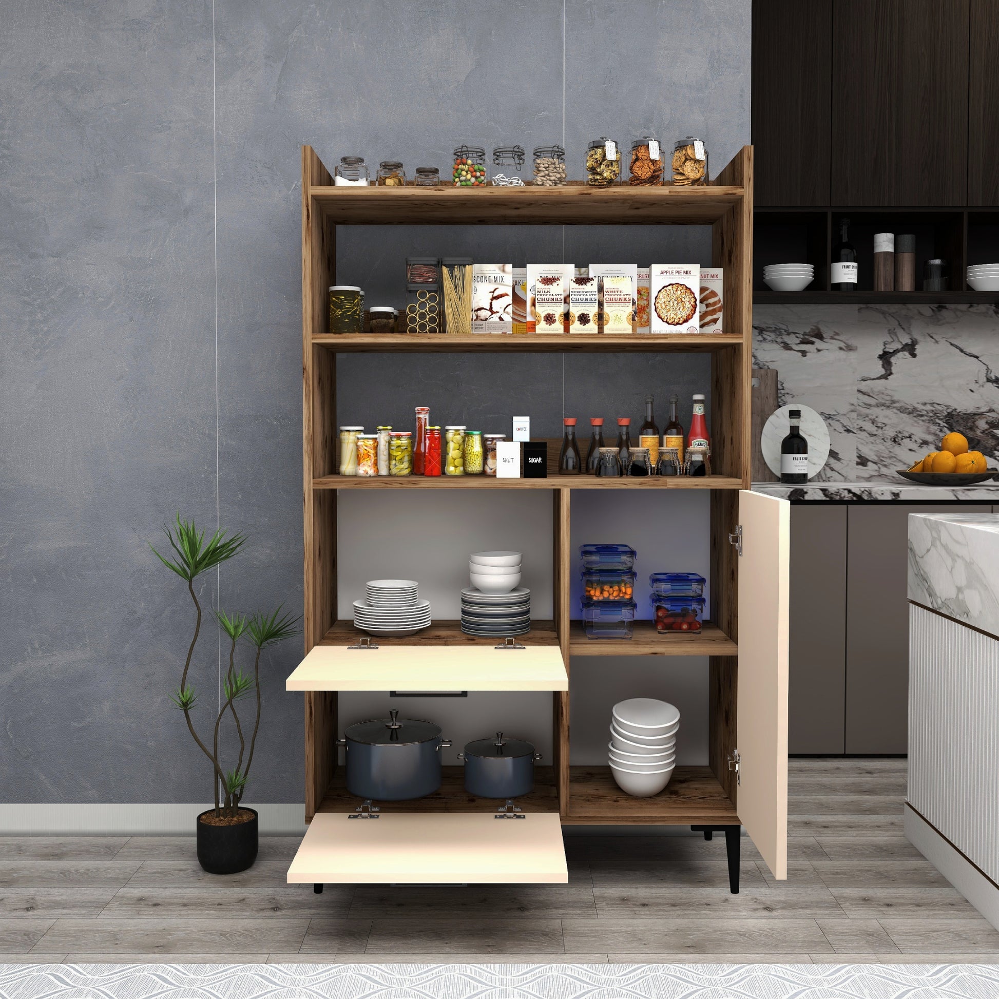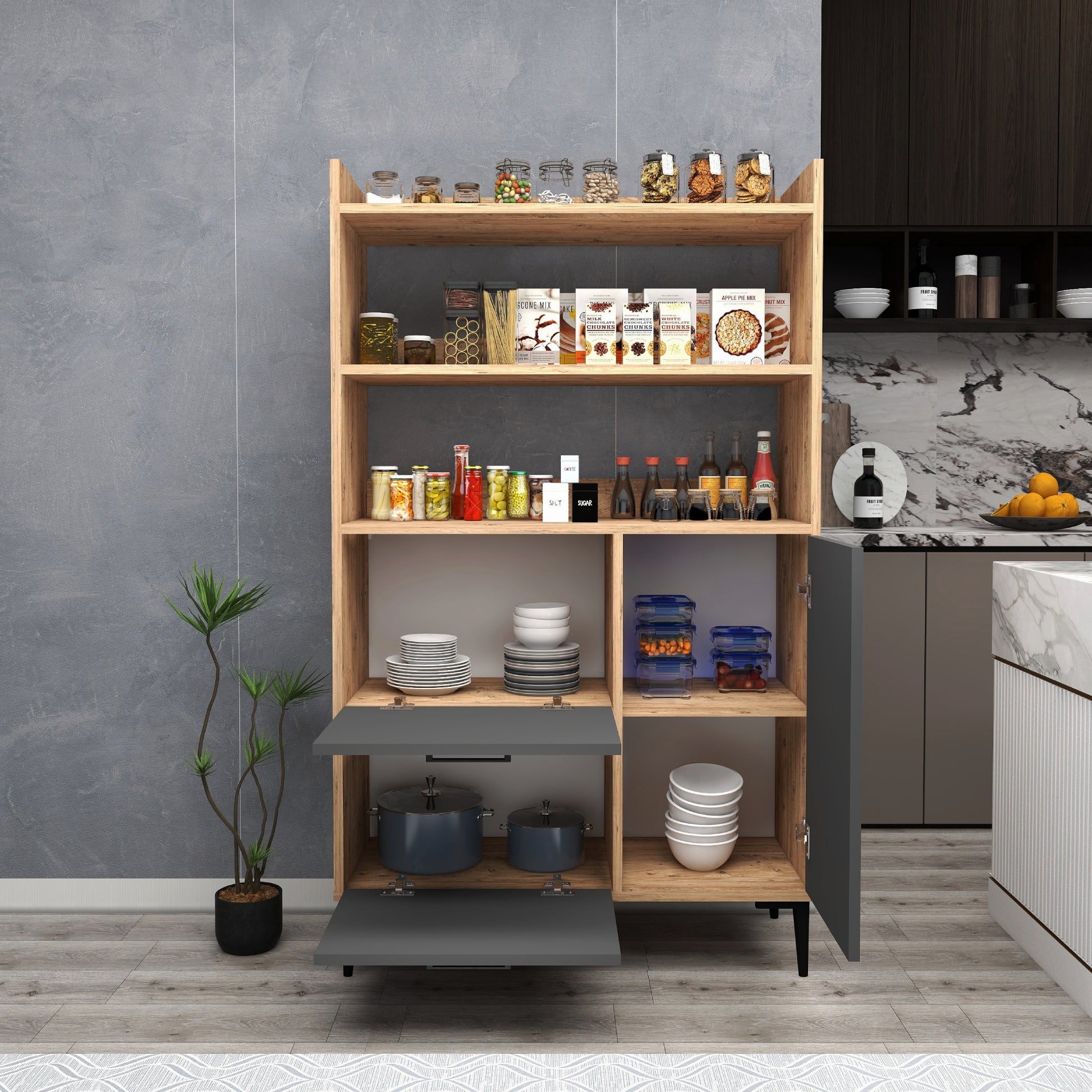 Armoire de cuisine Caleb avec étagères