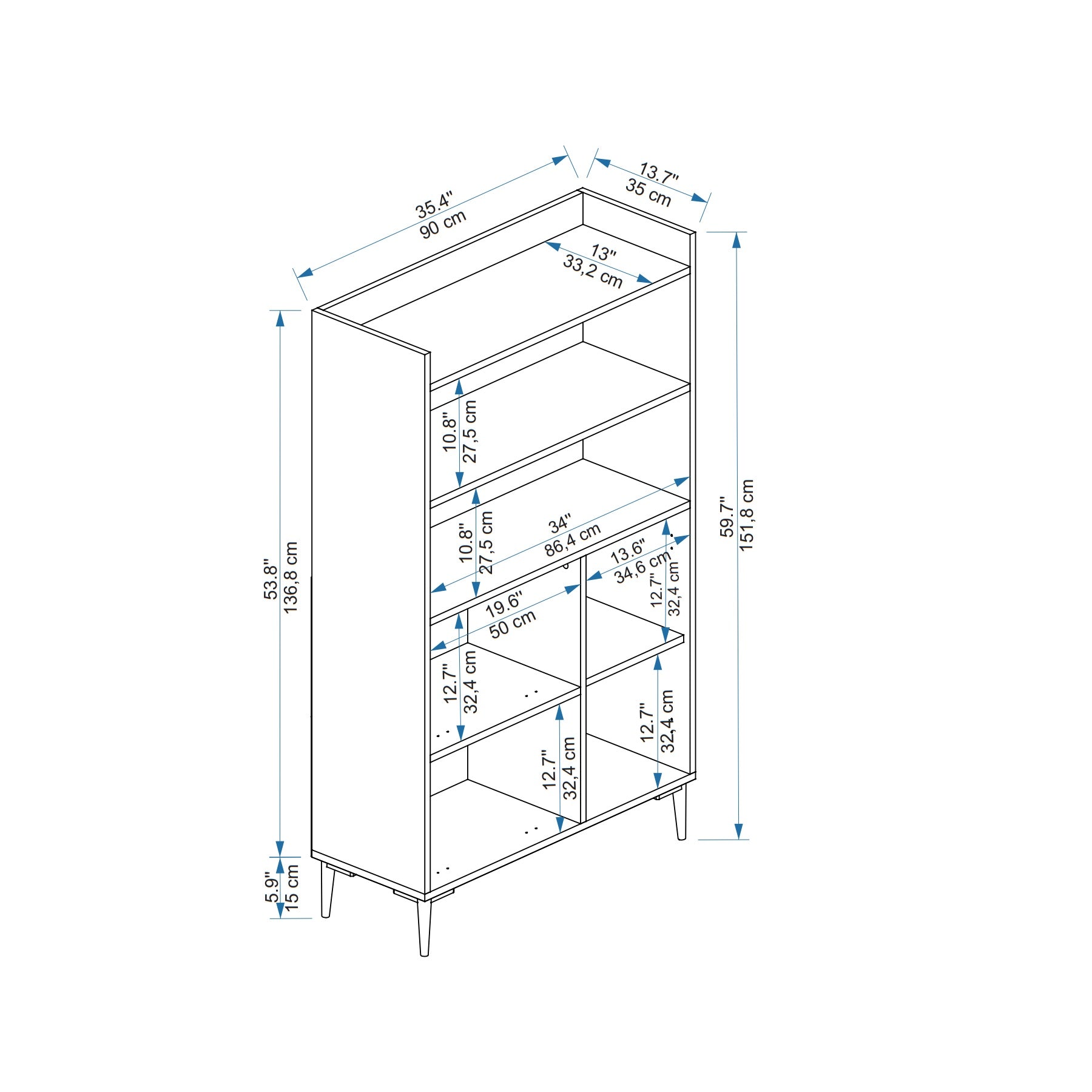 HAUTEUR : 59,7" / 151,8 cm | LARGEUR : 35,4" / 90 cm | PROFONDEUR : 13,7" / 35 cm