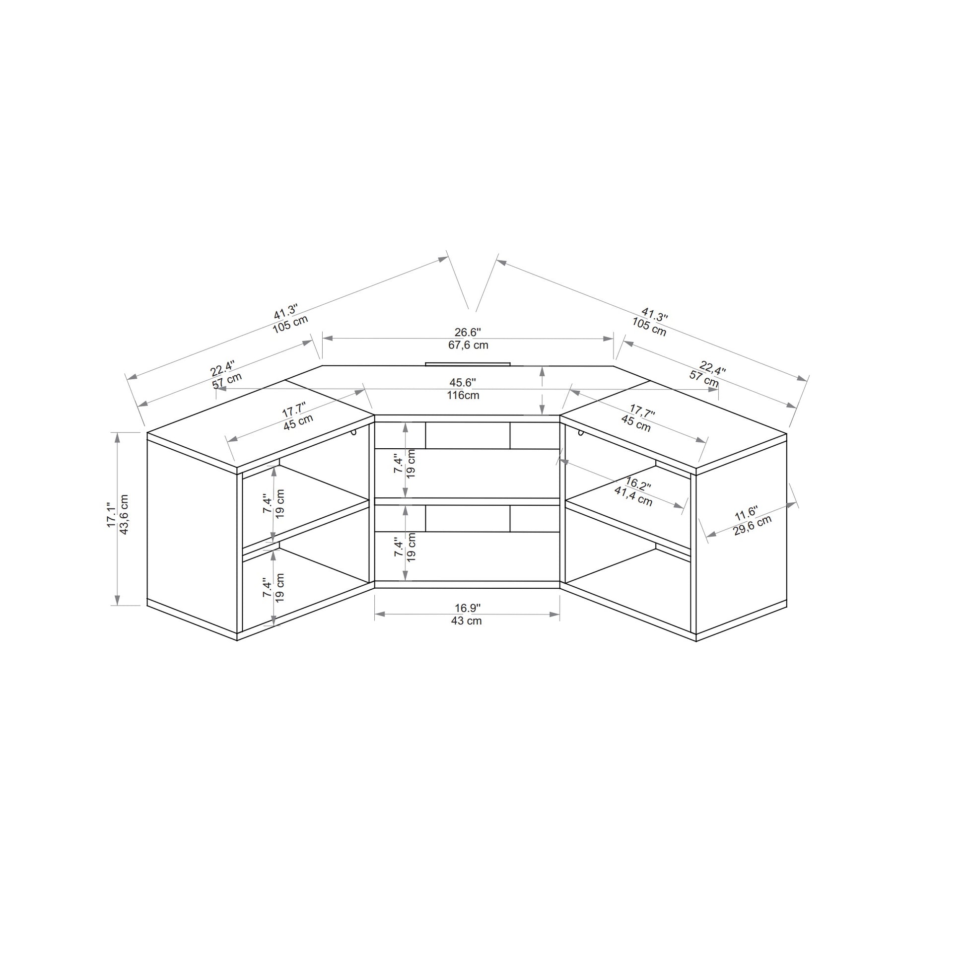 Meuble TV HAUTEUR : 17,1" / 43,5 cm | LARGEUR : 58,4" / 148,5 cm | PROFONDEUR : 11,6" / 29,6 cm.