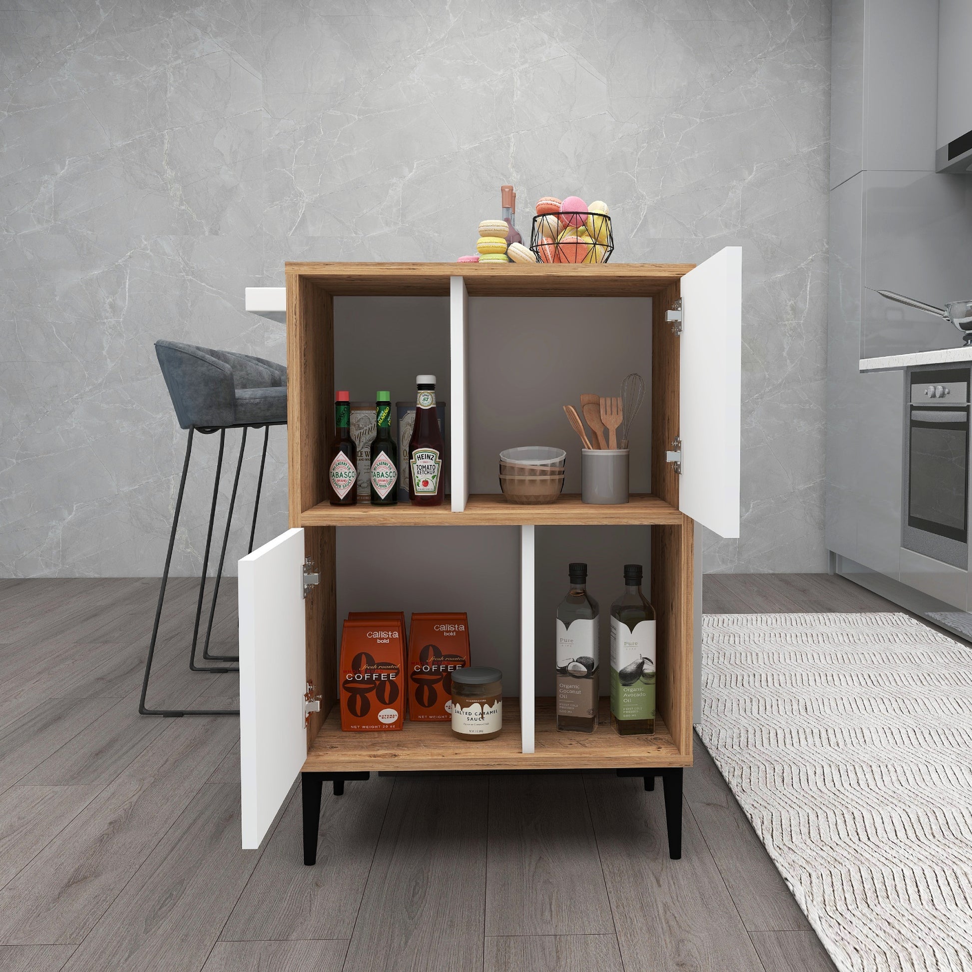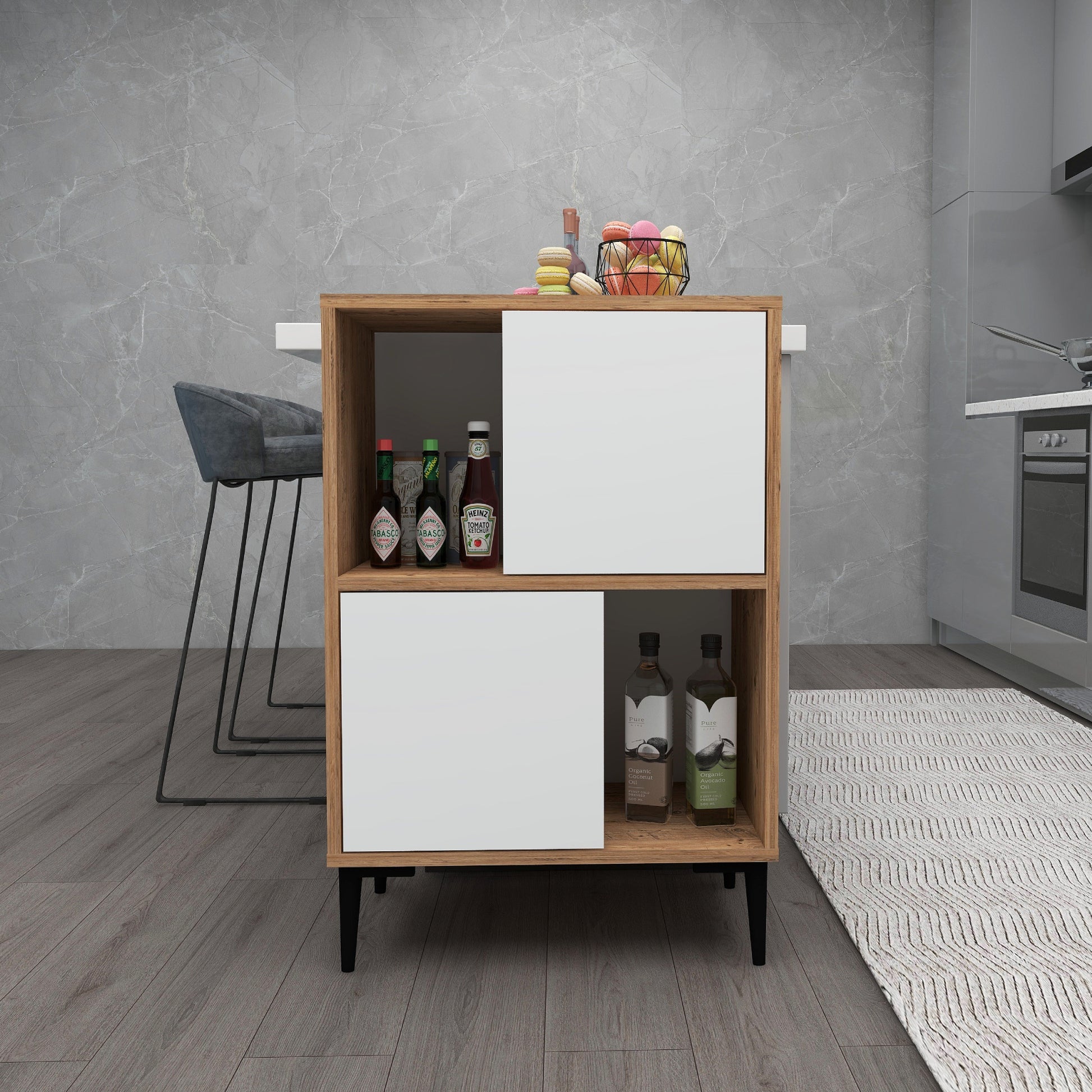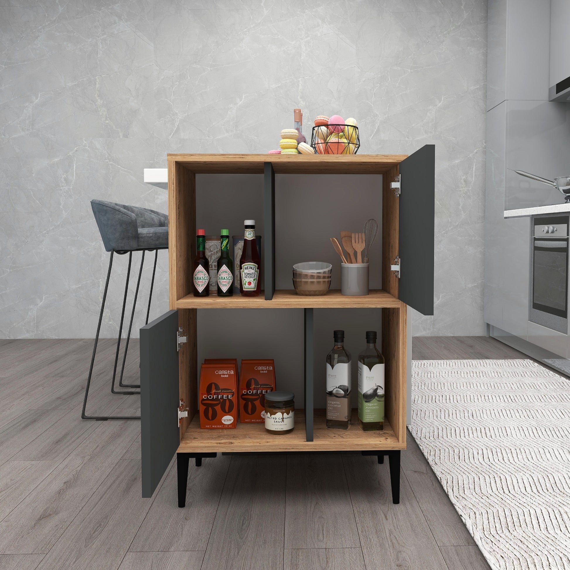 L'armoire de cuisine Jeremy est une solution de rangement contemporaine, élégante et pratique. Elle est dotée de deux étagères ouvertes et de deux placards fermés, offrant un espace généreux pour tous vos essentiels de cuisine. Fabriquée en panneaux de particules de haute qualité avec une élégante finition mélaminée, elle est renforcée par des pieds en plastique robustes. Organisez votre cuisine avec simplicité et raffinement.