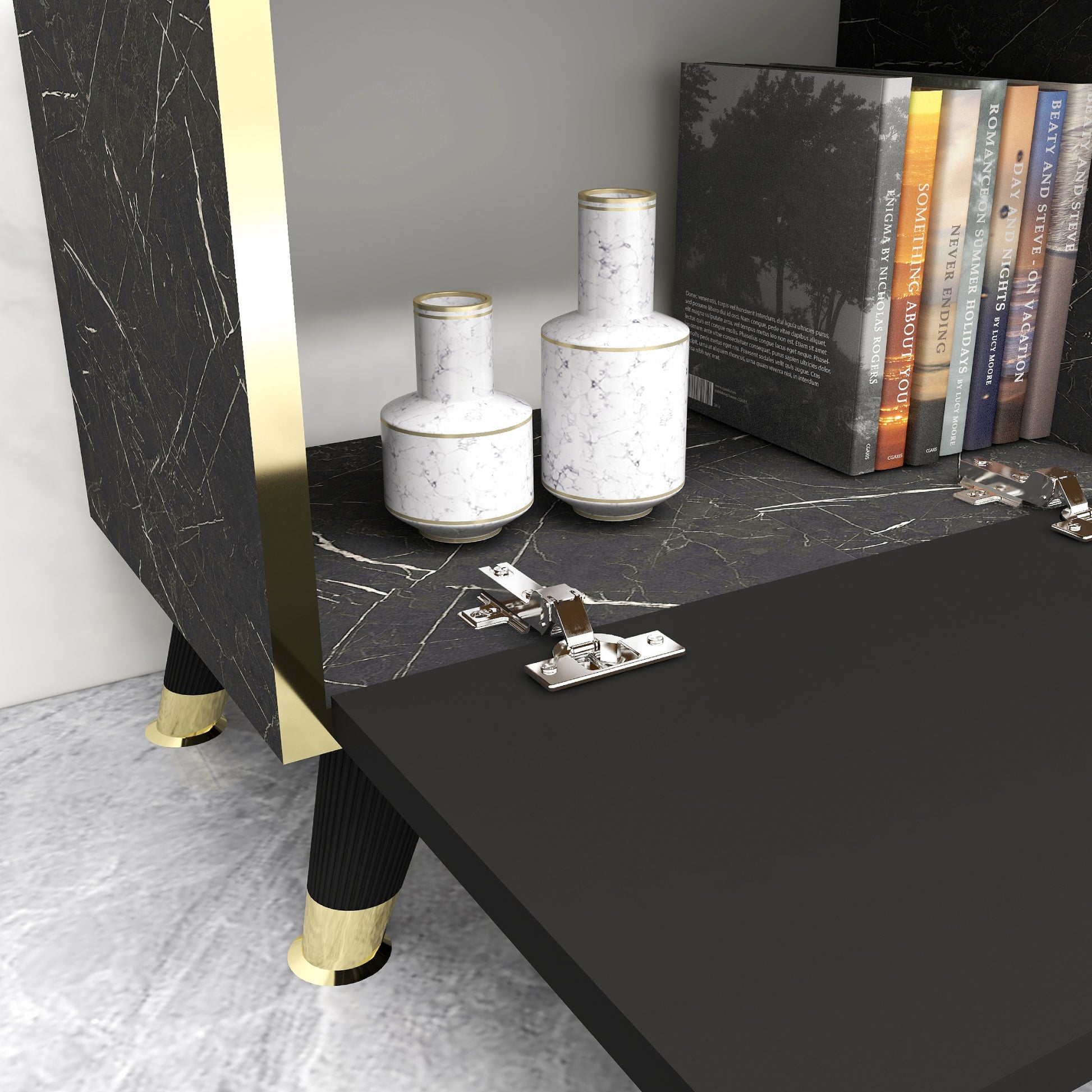 • 3 portes avec charnières métalliques dissimulées