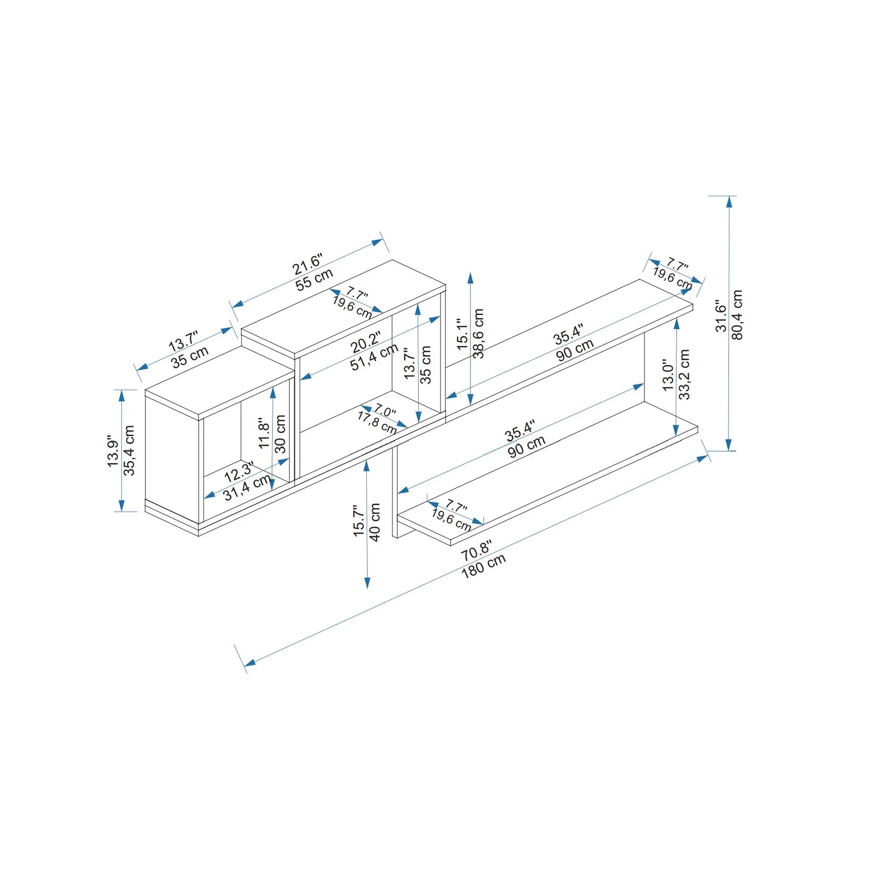 HAUTEUR : 31,6" / 80,4 cm | LARGEUR : 70,8" / 180 cm | PROFONDEUR : 7,7" / 19,6 cm.