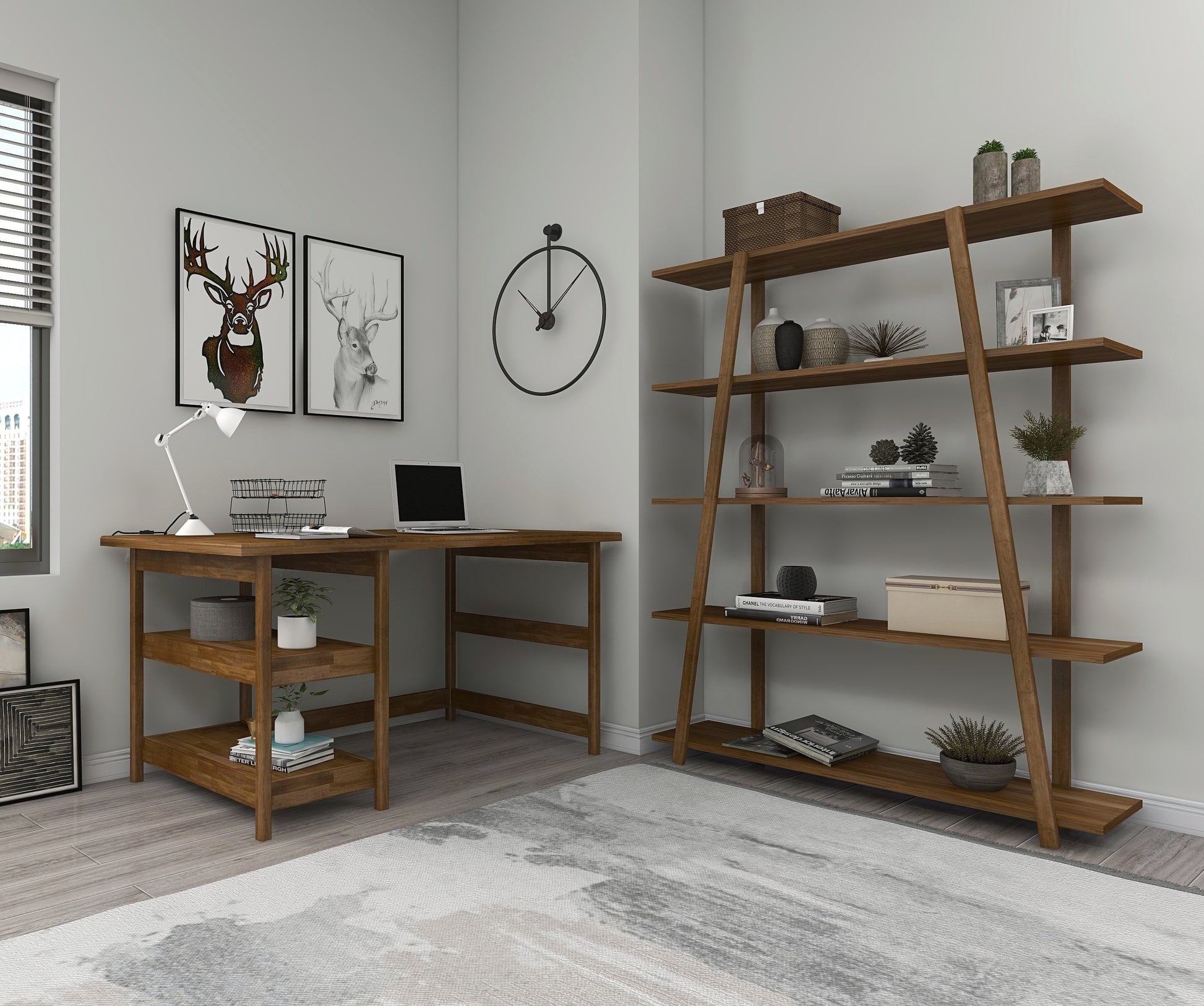 Cet ensemble bibliothèque et bureau d'ordinateur est parfait pour un décor moderne mais intemporel. Fabriqué à partir de bois de pin massif, il est robuste et durable. L'ensemble comprend des étagères de bibliothèque à 5 niveaux et 2 étagères de bureau pour beaucoup de rangement. La finition en bois est vernie pour une meilleure résistance à l'eau, et les bords ovales lisses en font un choix sûr. Facile à assembler avec une perceuse électrique et un tournevis, cet ensemble est fabriqué en Turquie et a un poids total emballé de 108 livres.