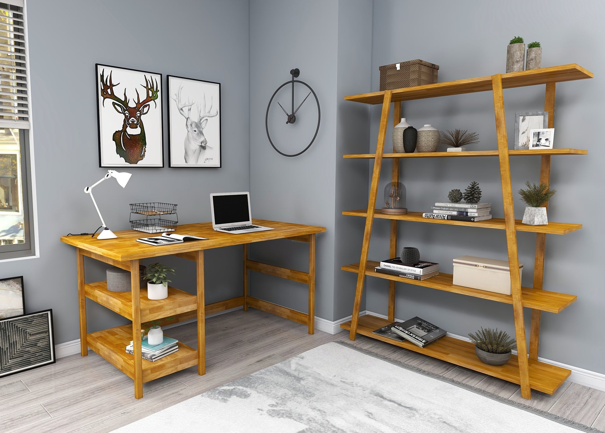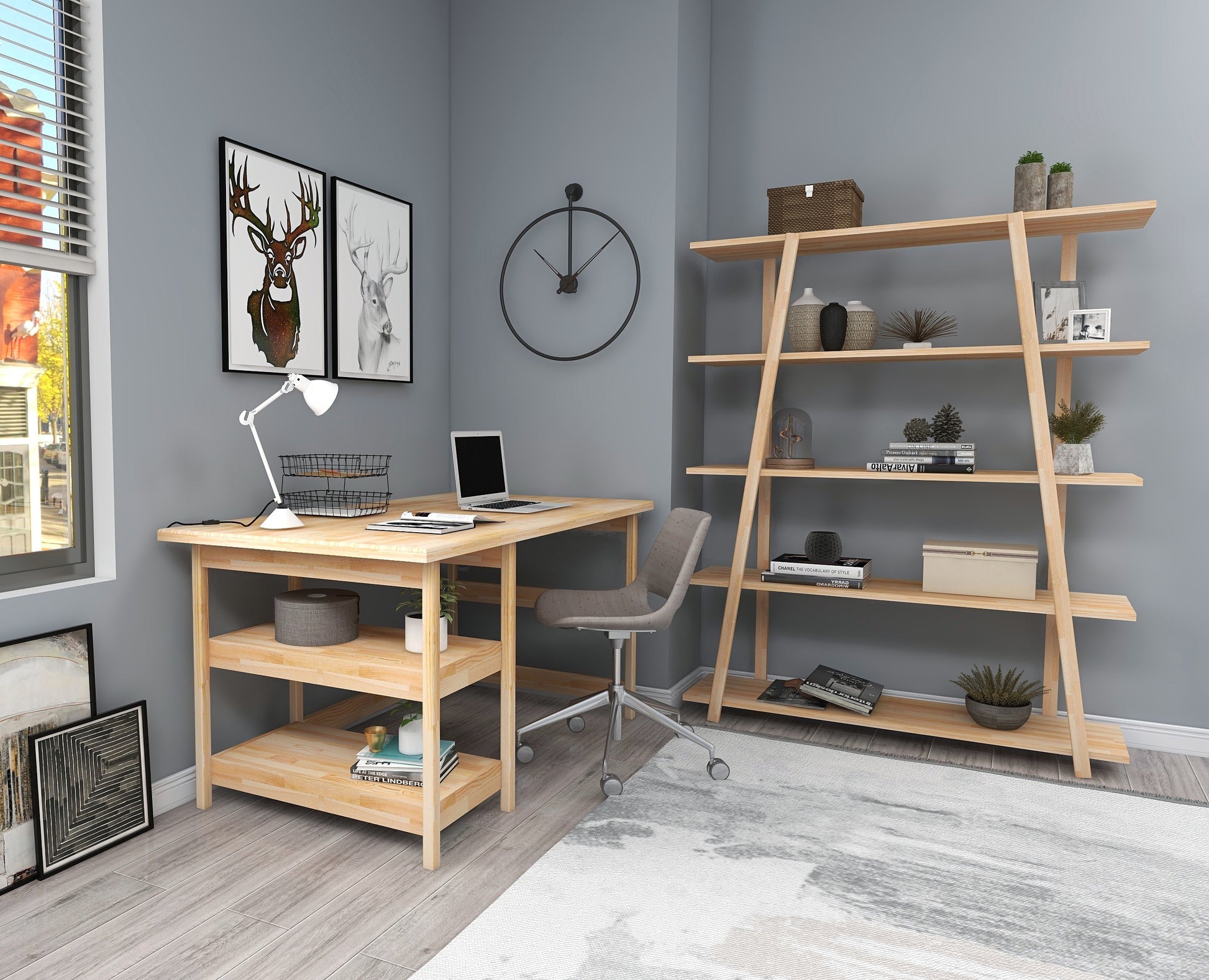 Ensemble bibliothèque et bureau d'ordinateur en pin massif fait à la main Miraperry