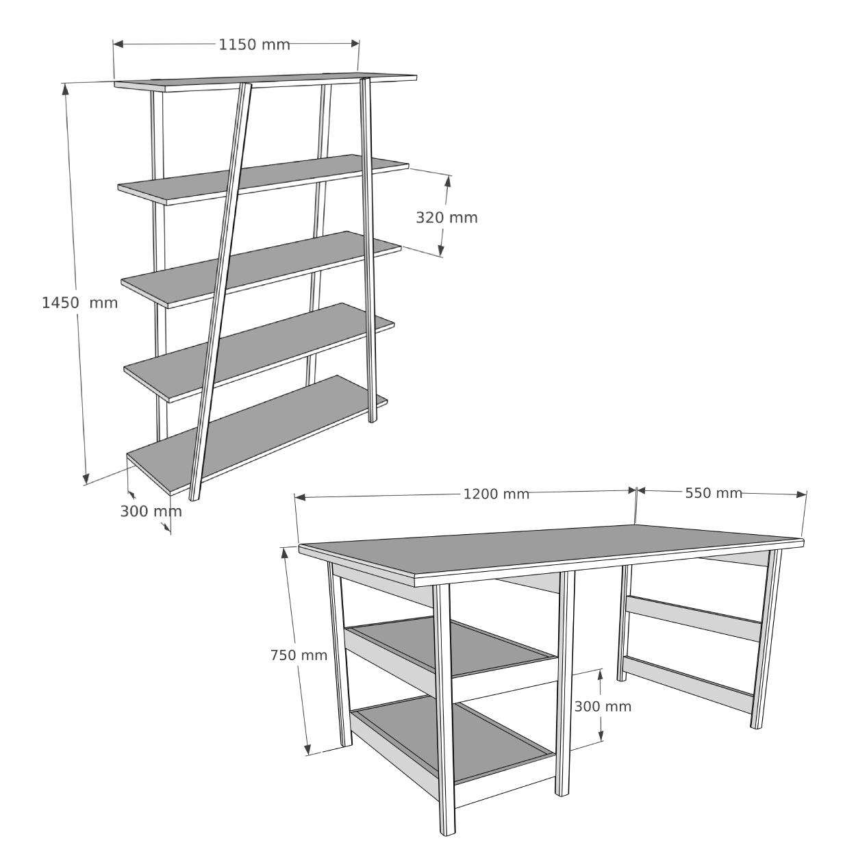 - Ensemble de 2 bibliothèques et bureaux modernes