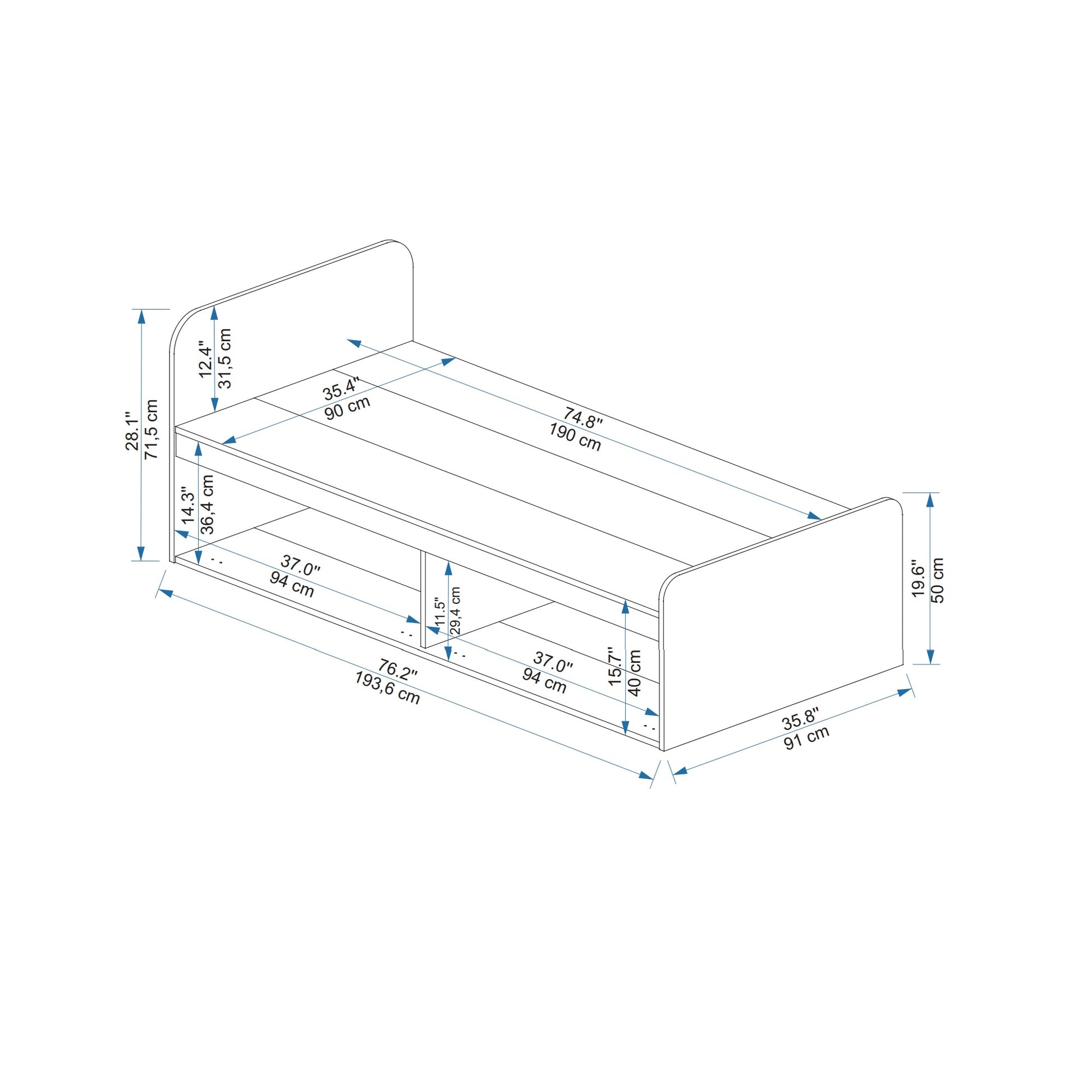 HEIGHT: 28.1" / 71.5 cm | WIDTH: 76.2" / 193.6 cm | DEPTH: 34.5" / 90 cm.