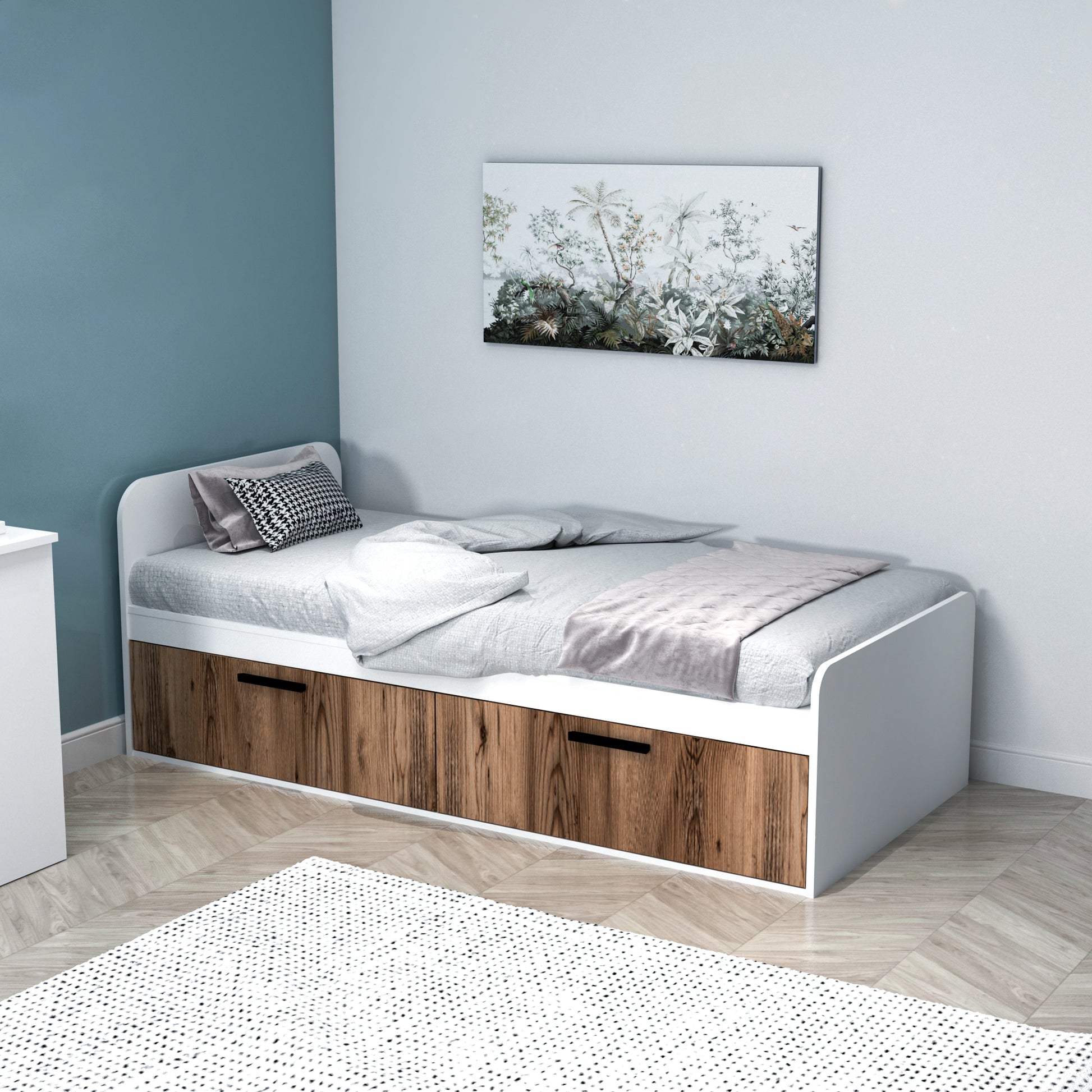 Introducing our sleek and stylish Modern Bedstead, the ultimate combination of comfort and functionality for your bedroom sanctuary. This bed frame boasts a large, supportive headboard that enhances comfort during bedtime rituals and adds elegance to your space. These spacious compartments provide closed storage for your bedding essentials, personal belongings, or any items you wish to keep neatly tucked away. The two doors, concealed with durable metal hinges, ensure easy access while maintaining a streamlined aesthetic. Experience the perfect blend of modern design and practicality with our Modern Bedstead – your dream bedroom awaits!