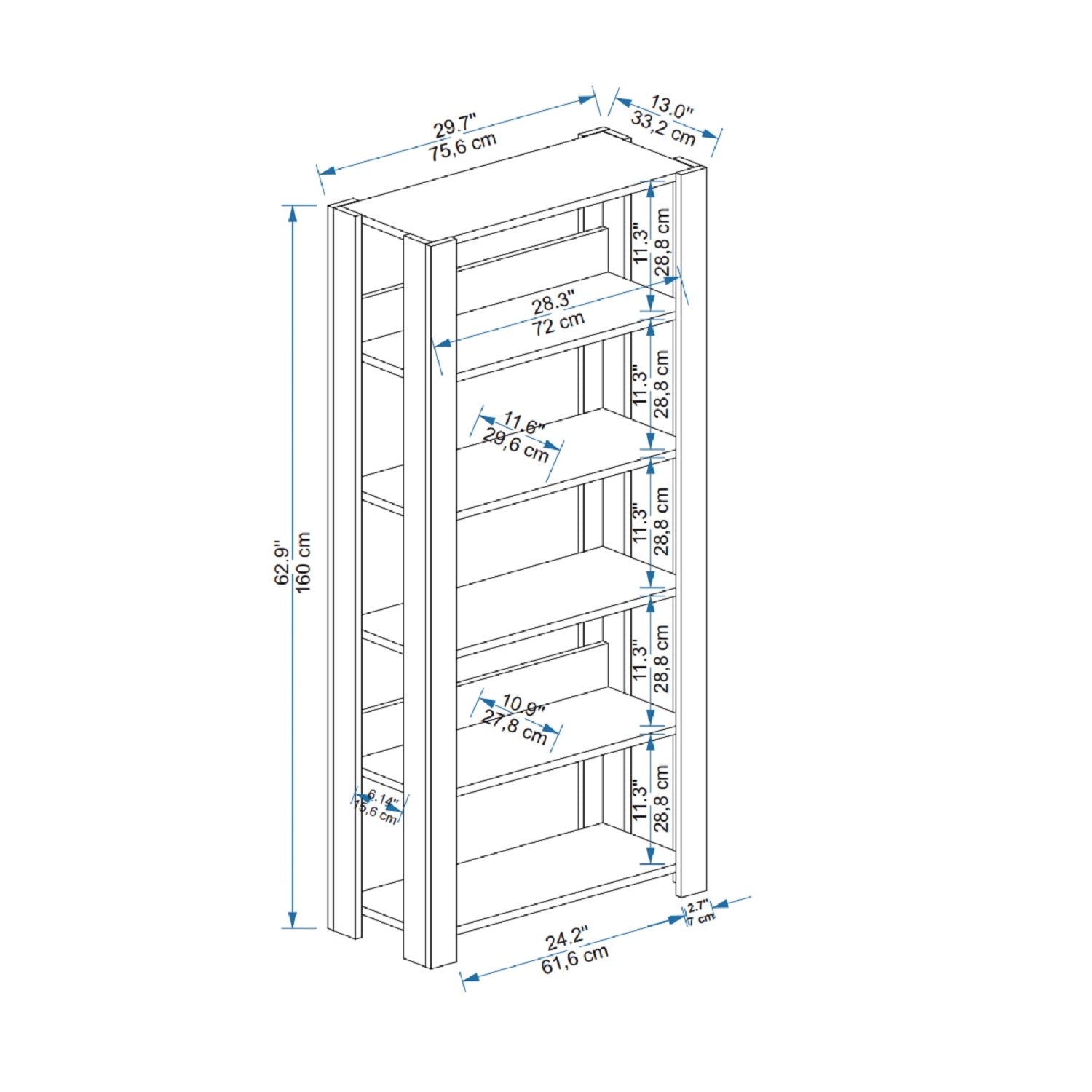 As a modern bookcase, the Zeno Ladder Bookcase Bookshelf offers 5 tier open shelves for storing items in a sleek, space-saving design. Made of durable 18 mm thick particleboard with a melamine veneer finish and PVC edge banding, it is both stylish and water-resistant. Organize your space with confidence.