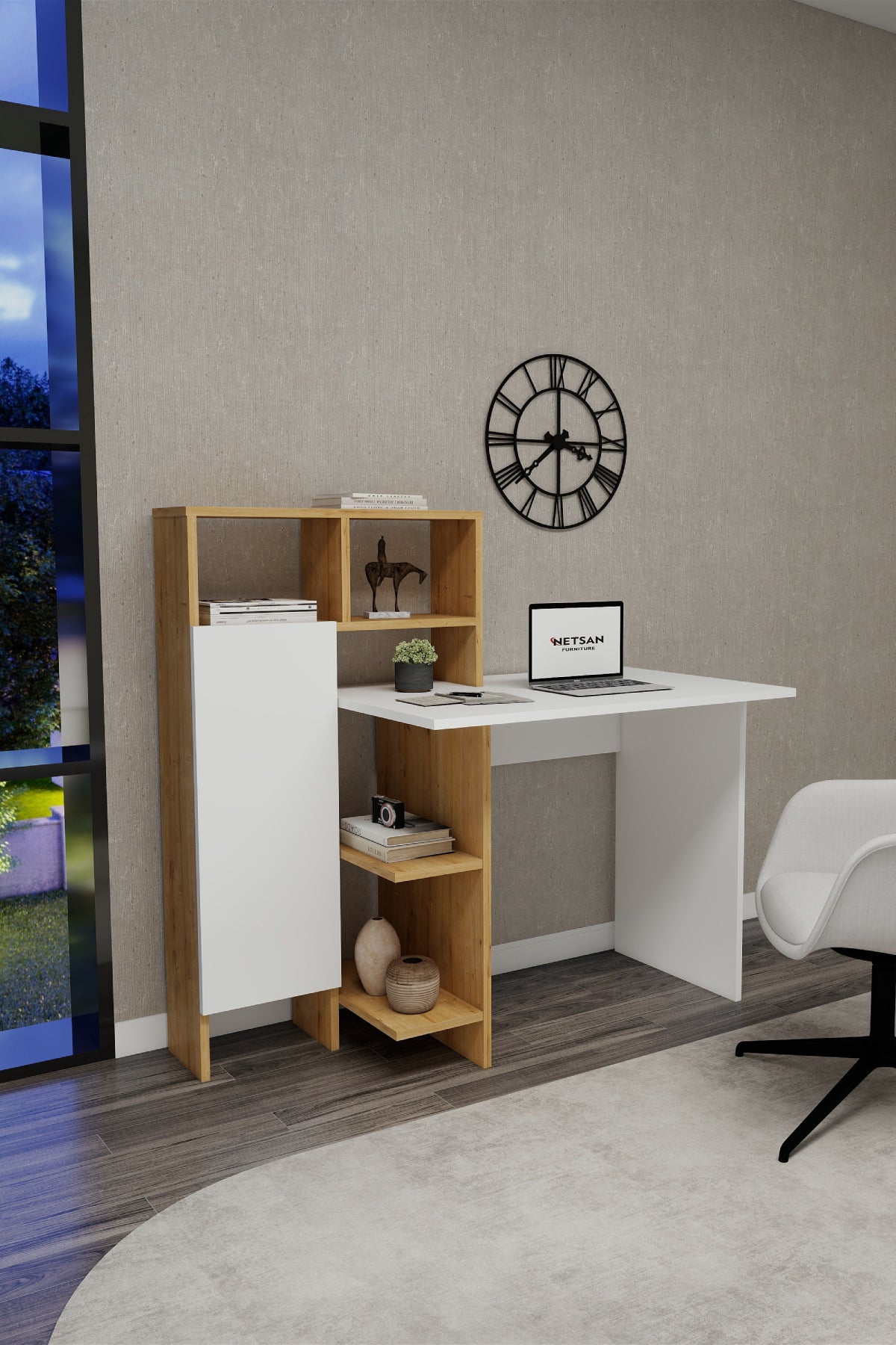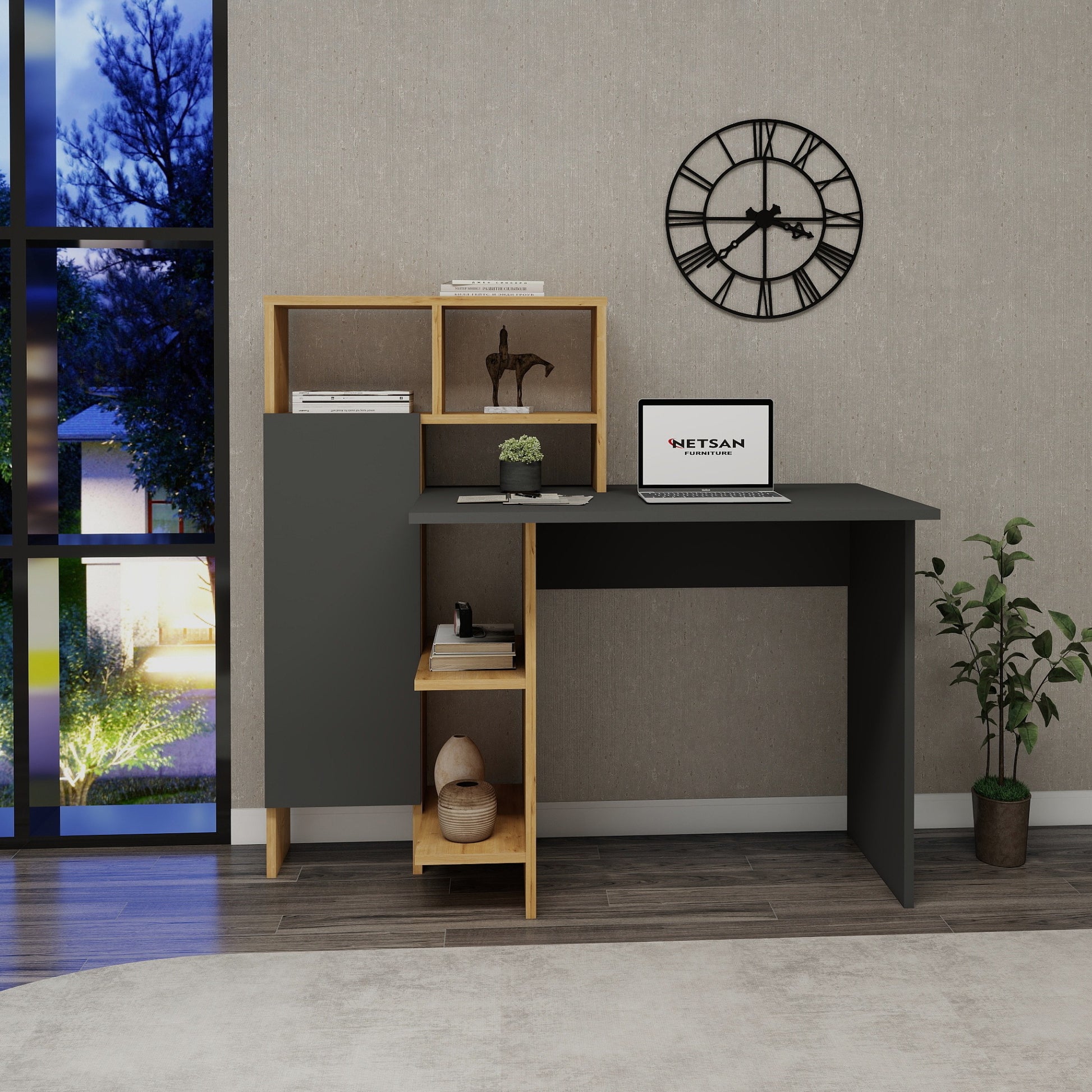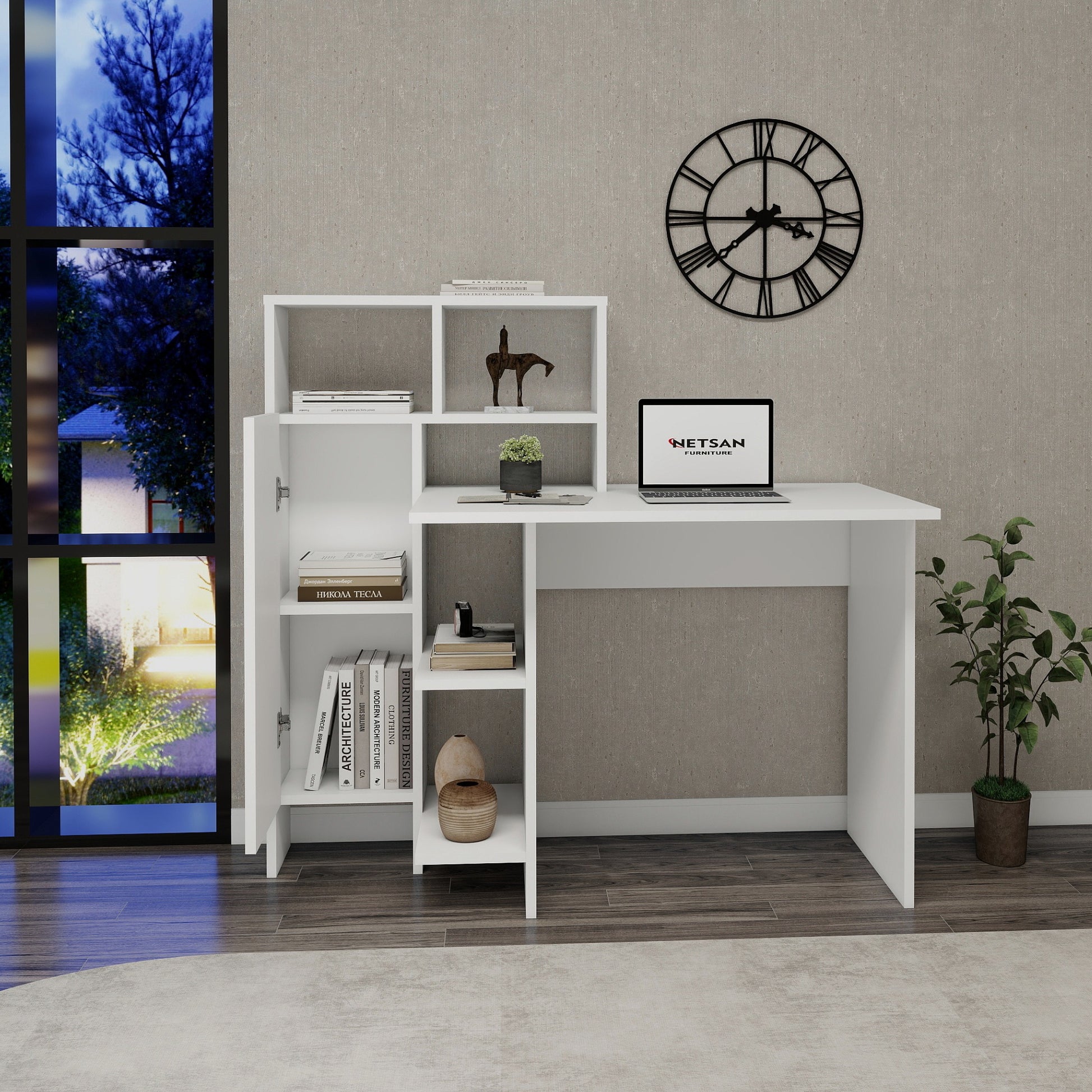 Bugra Computer Desk with Integrated Shelves and Cabinet