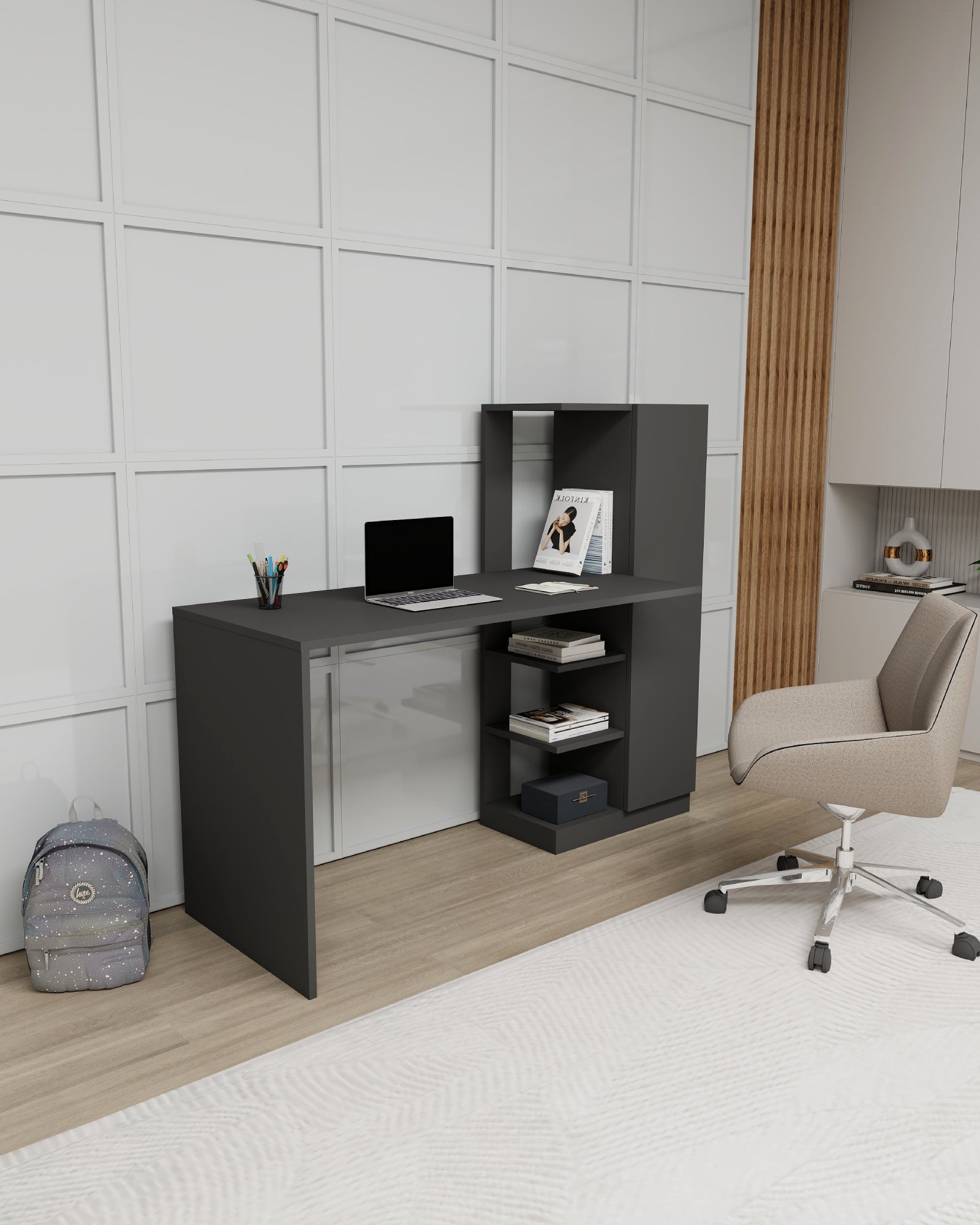 Yagiz Computer Desk with Cabinet & Shelves