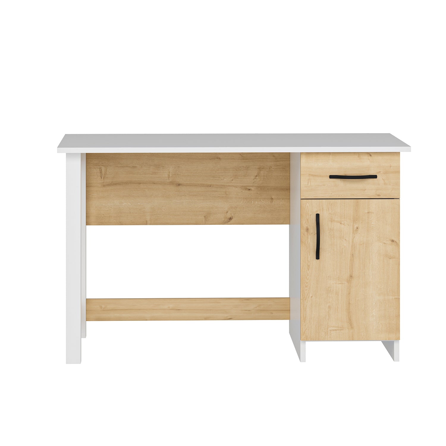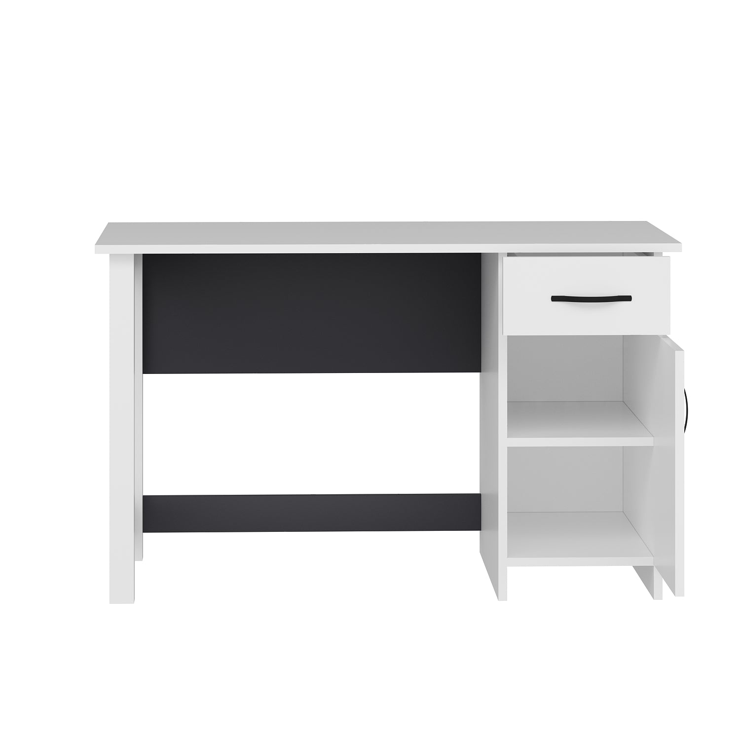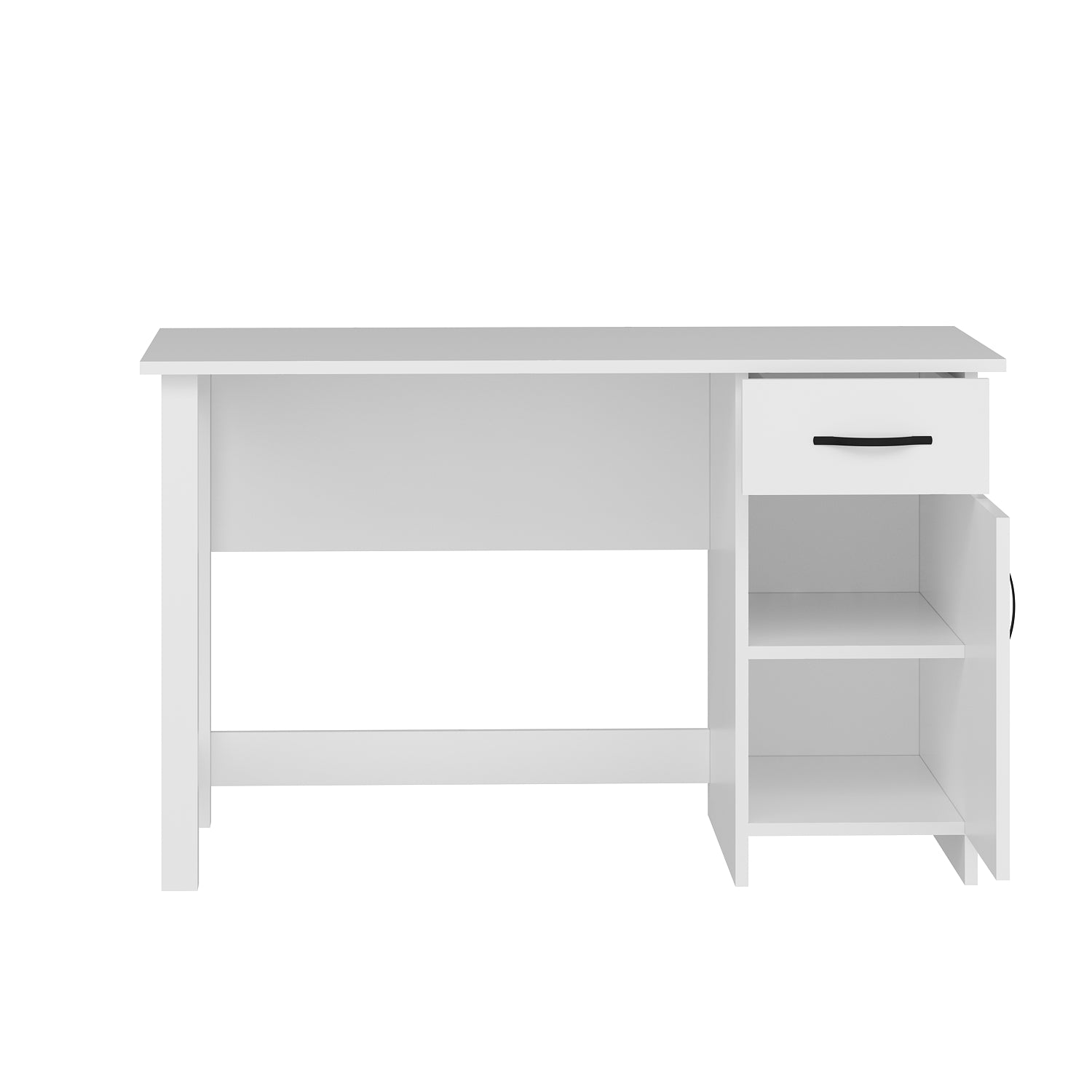 A white high-quality melamine coated particleboard brings out Novella’s unique design. Perfectly designed as a writing desk and it is ideal for an apartment or guest bedroom. The desk provides ample storage with a drawer and a cabinet.
