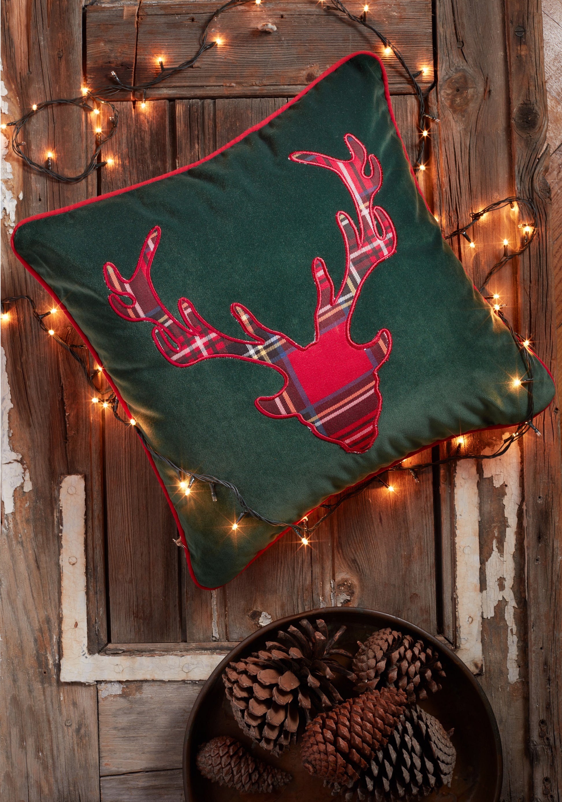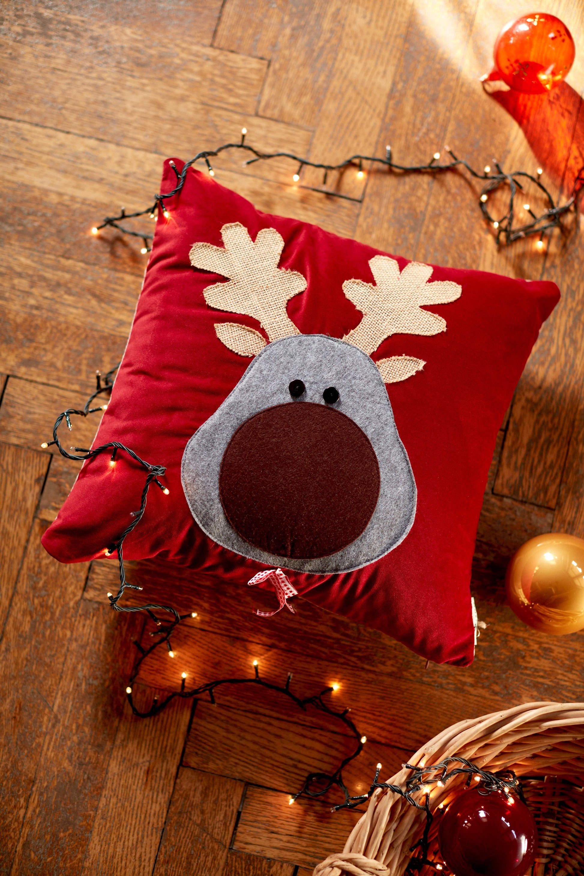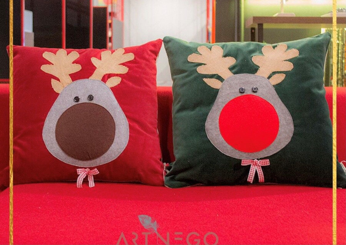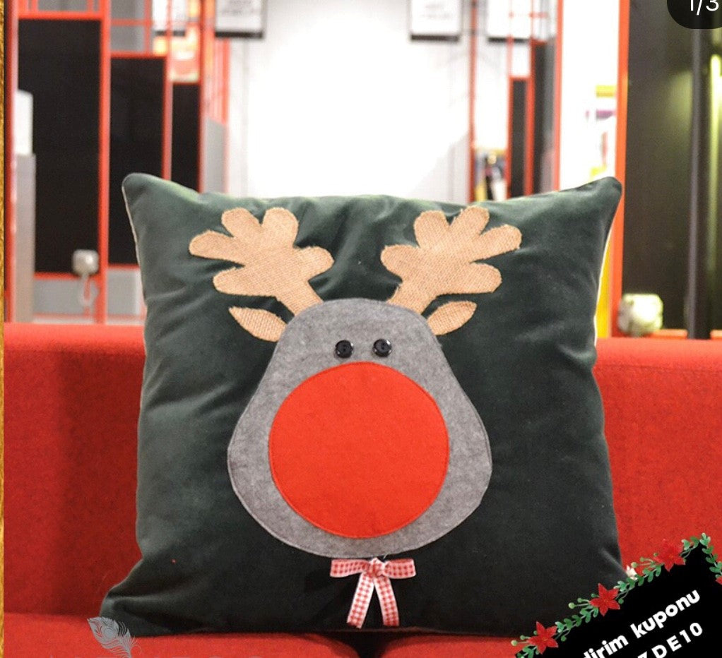 Christmas-themed special collection cushion pillows will add new colors and surprises to your home decor. Handcrafted - Deer pattern made of felt fabric on the front. First-degree quality transfer printing fabric is used.