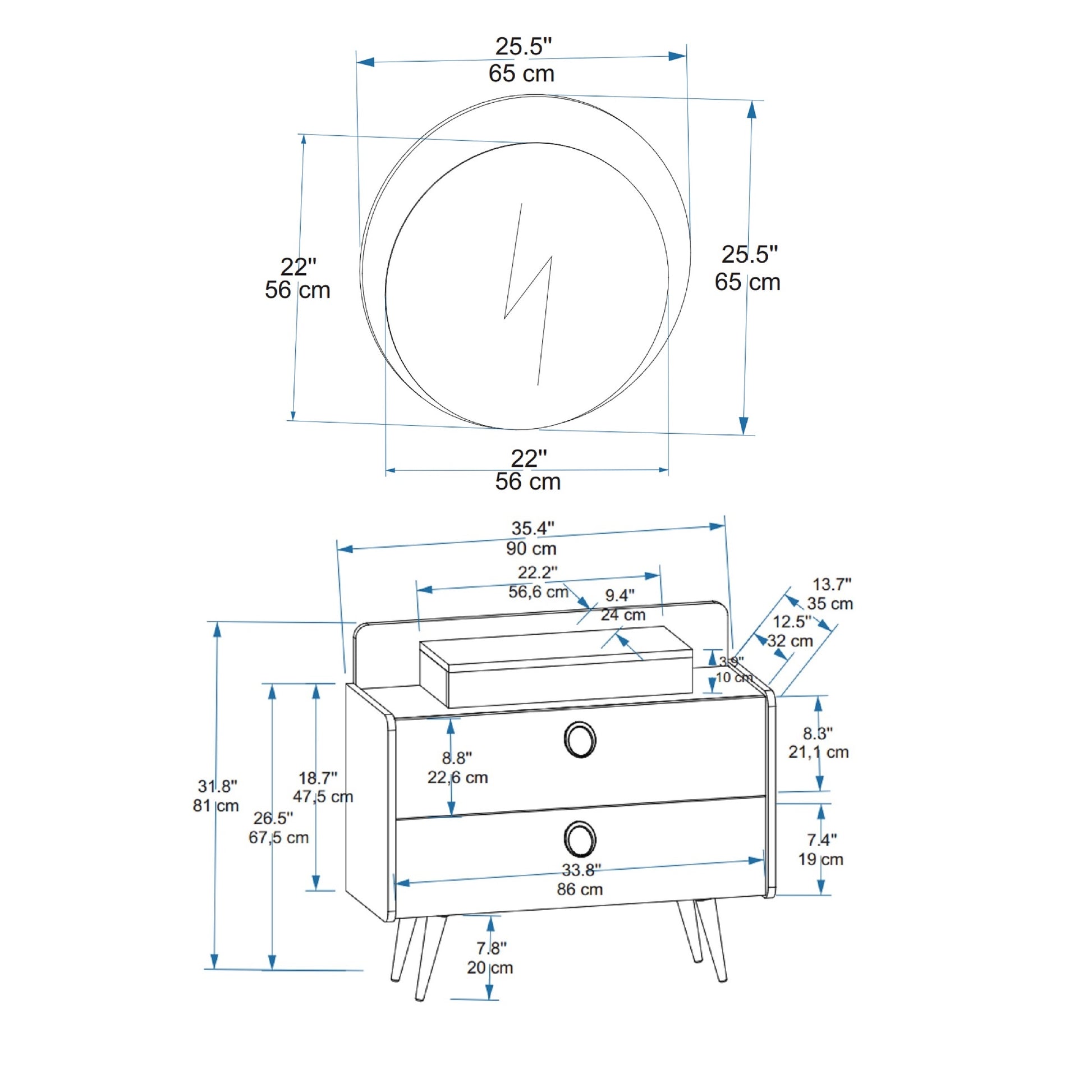 DRESUAR HEIGHT: 31.8" / 81 cm | WIDTH: 35.4" / 90 cm | DEPTH: 13.7" / 35 cm.