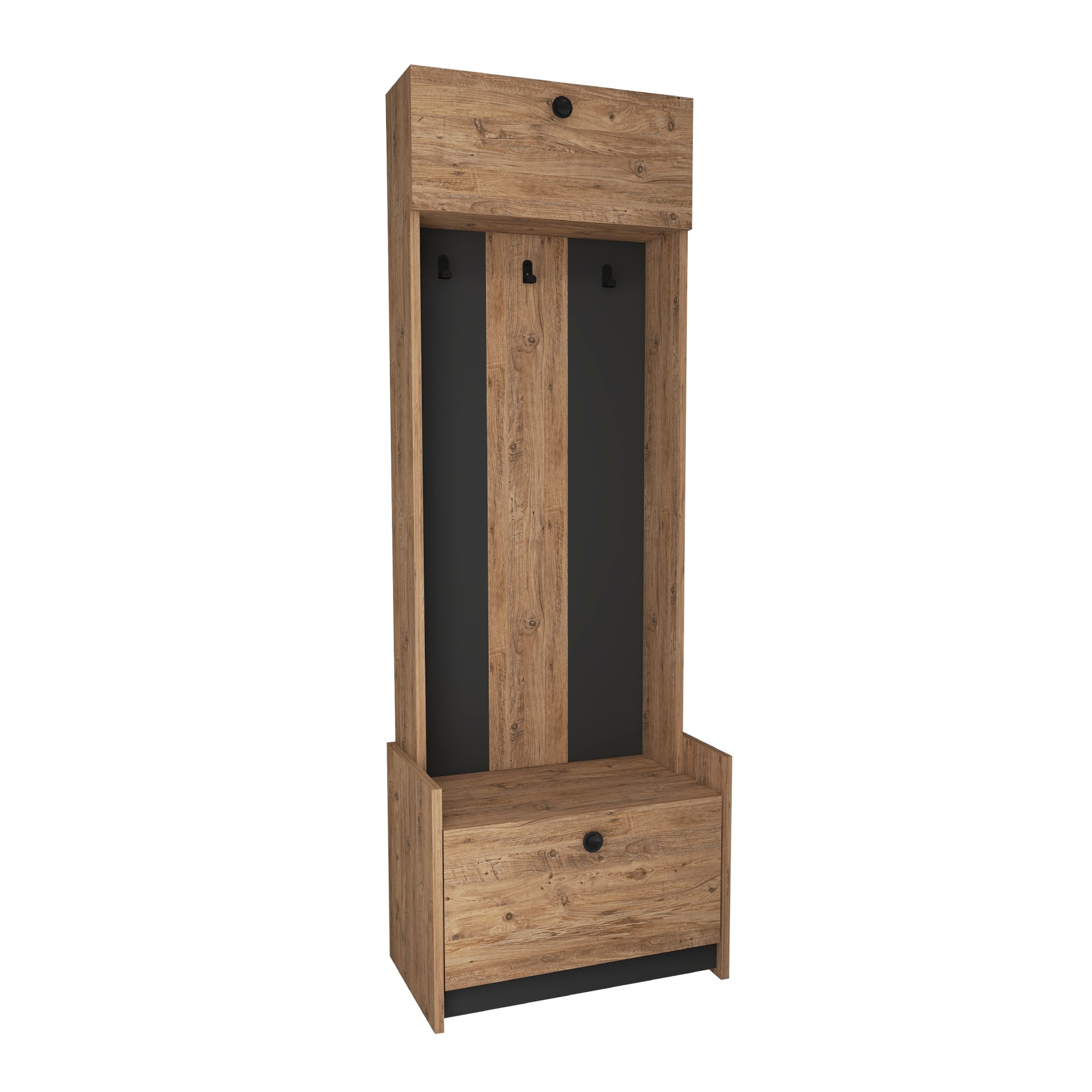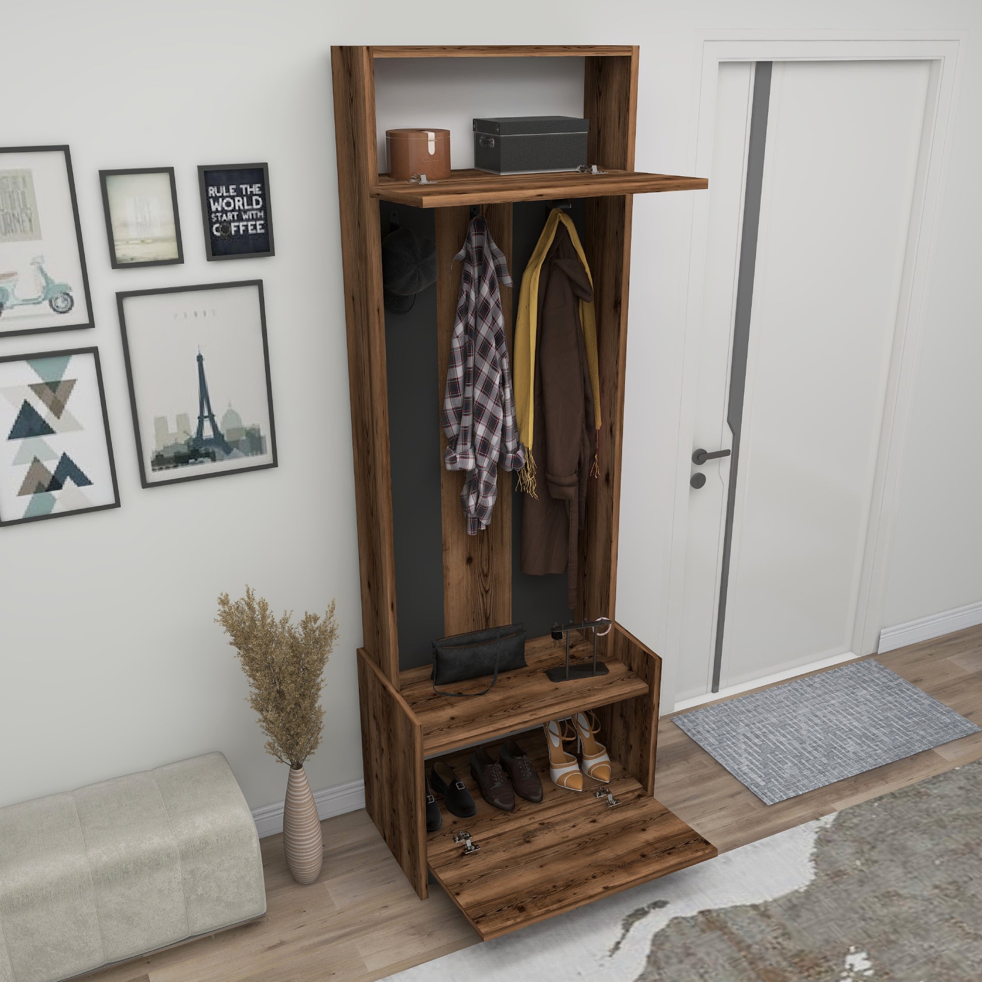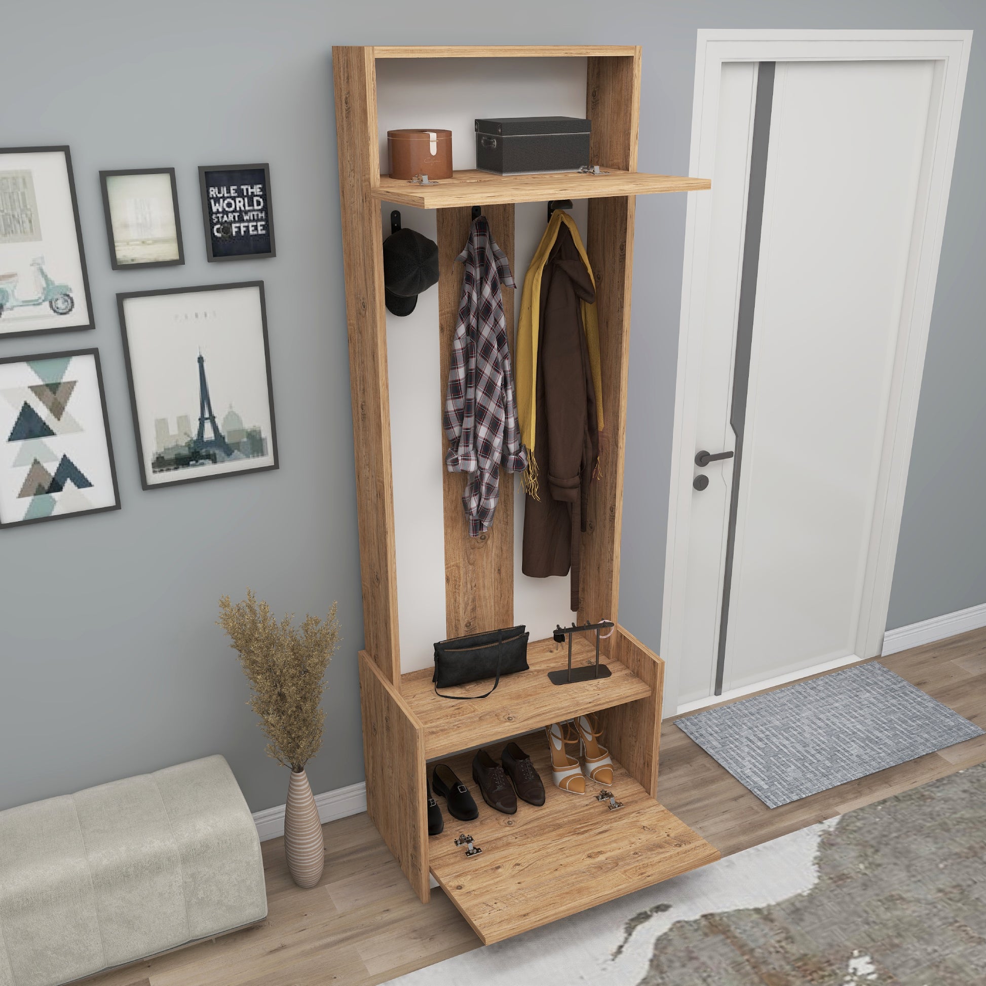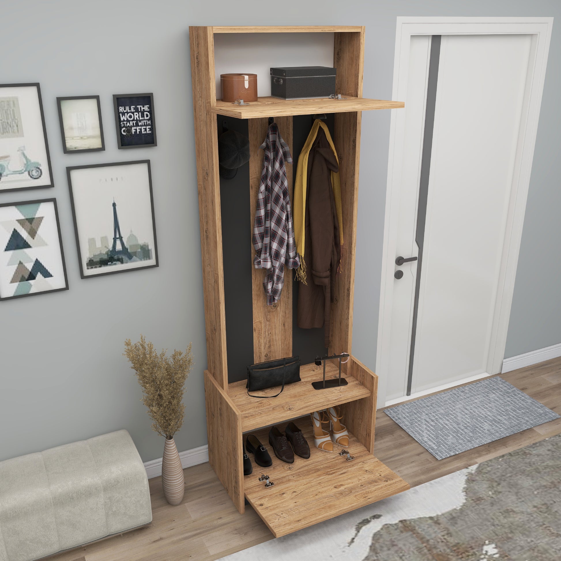 MATERIAL: The coat rack is made of an 18 mm thick quality melamine-coated particleboard. The manufactured wood surface is water-resistant to some extent and the edges are banded with PVC edge banding tape. Hooks are quality iron metal. First-class assembly/installation hardware and accessories are used. Our products are produced from certified quality raw materials that do not contain carcinogenic substances and comply with European Union health norms.