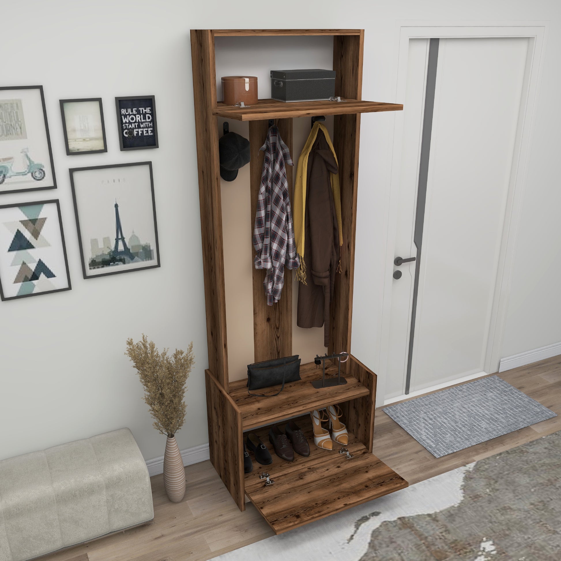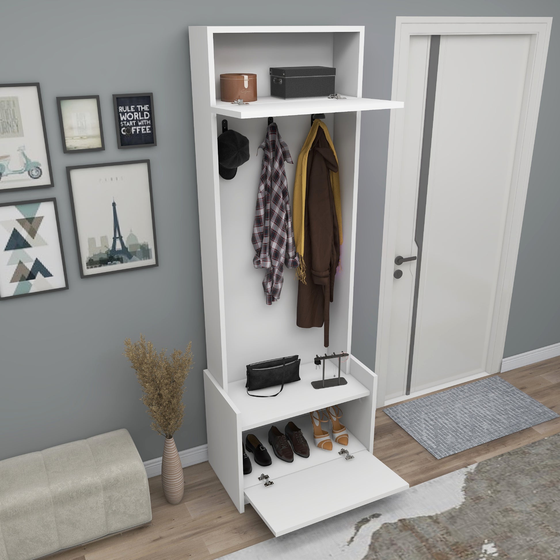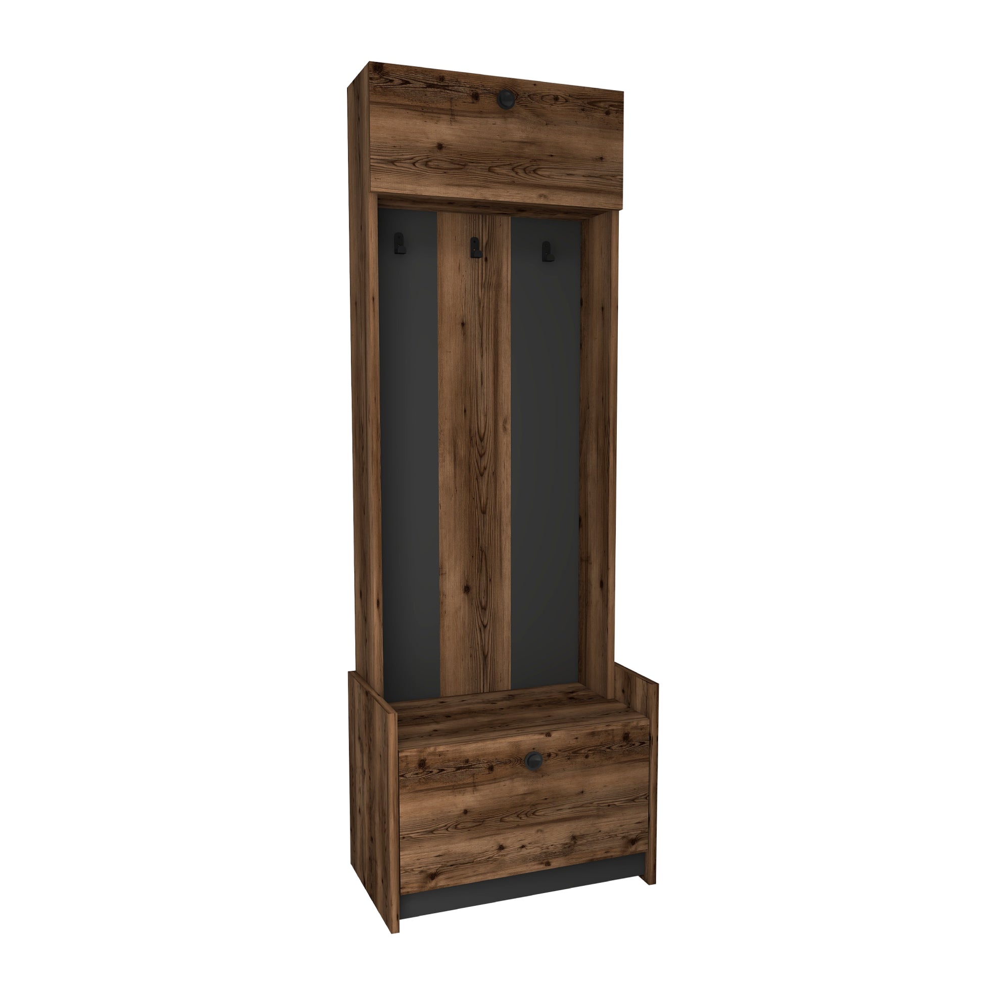 MATERIAL: The coat rack is made of an 18 mm thick quality melamine-coated particleboard. The manufactured wood surface is water-resistant to some extent and the edges are banded with PVC edge banding tape. Hooks are quality iron metal. First-class assembly/installation hardware and accessories are used. Our products are produced from certified quality raw materials that do not contain carcinogenic substances and comply with European Union health norms.