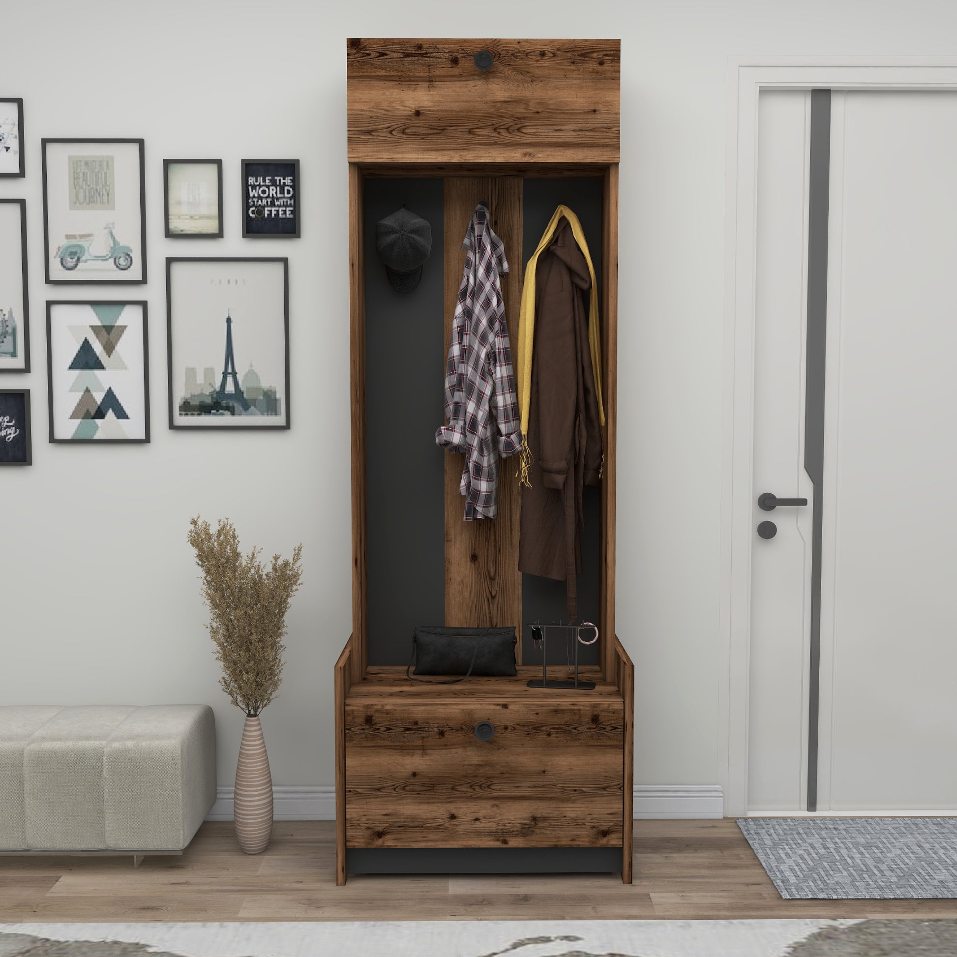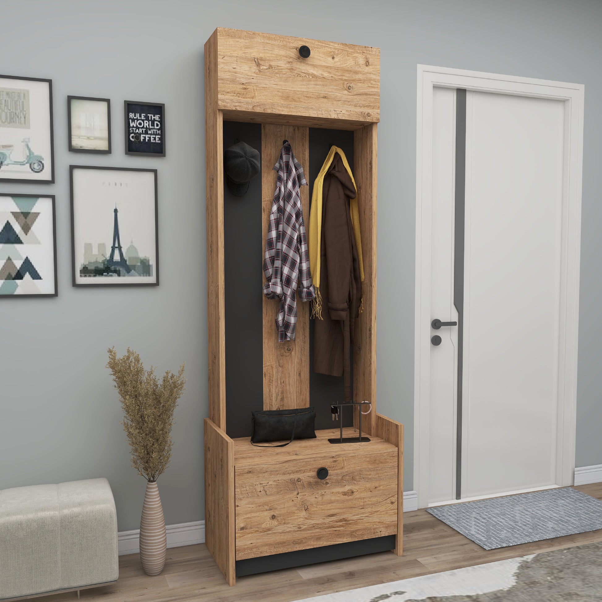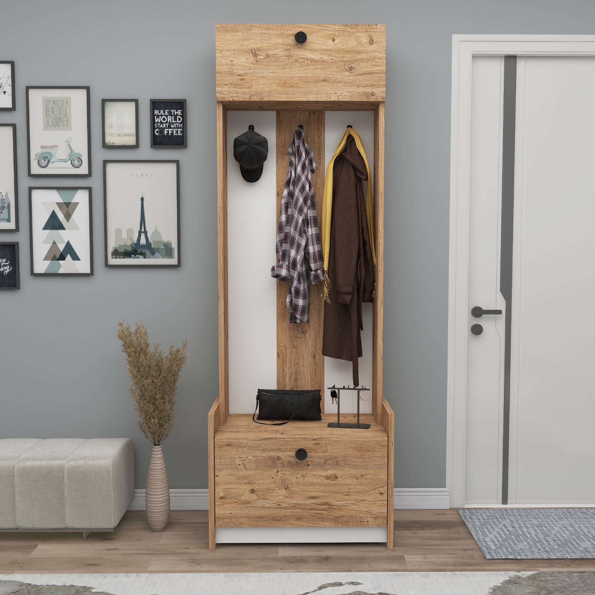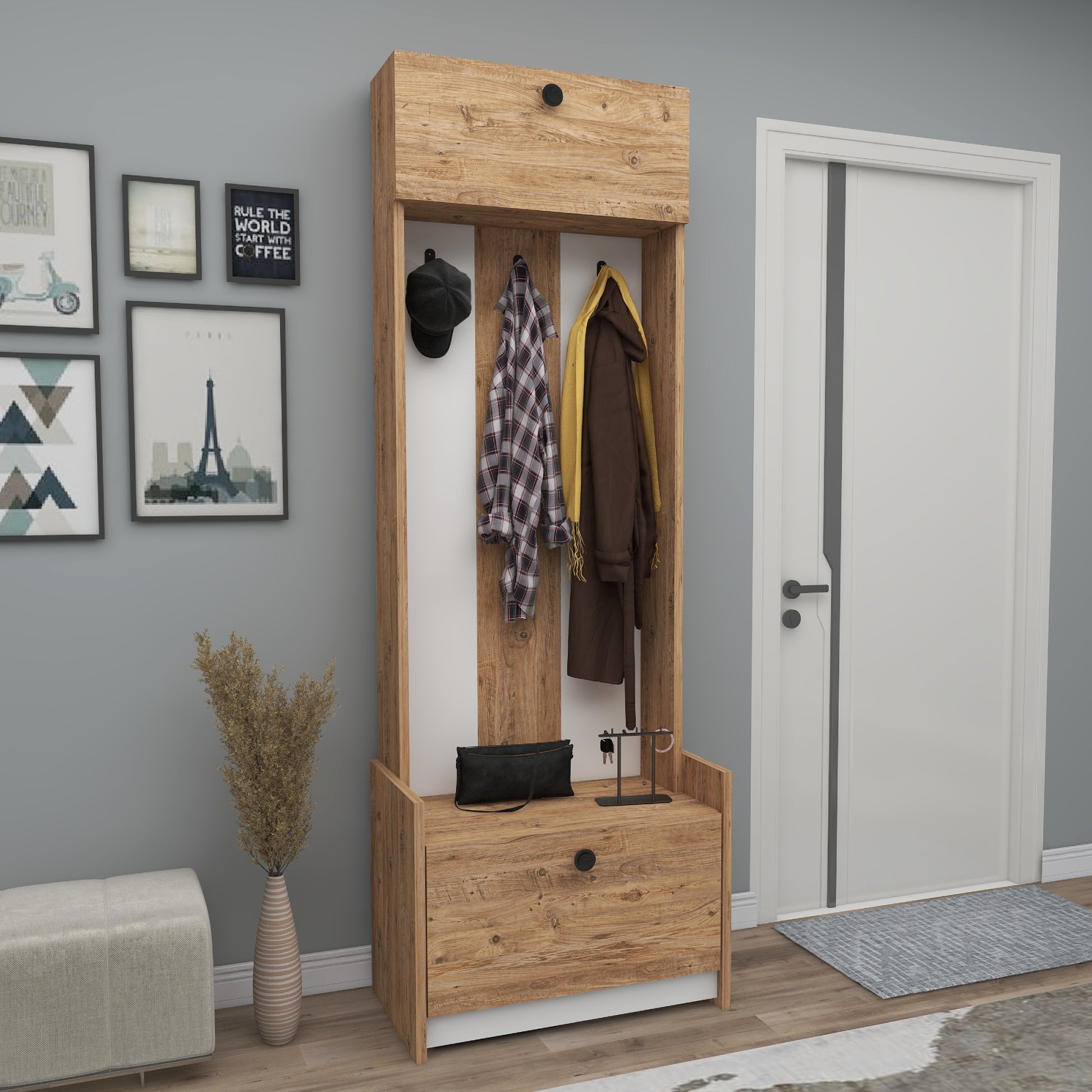 MATERIAL: The coat rack is made of an 18 mm thick quality melamine-coated particleboard. The manufactured wood surface is water-resistant to some extent and the edges are banded with PVC edge banding tape. Hooks are quality iron metal. First-class assembly/installation hardware and accessories are used. Our products are produced from certified quality raw materials that do not contain carcinogenic substances and comply with European Union health norms.