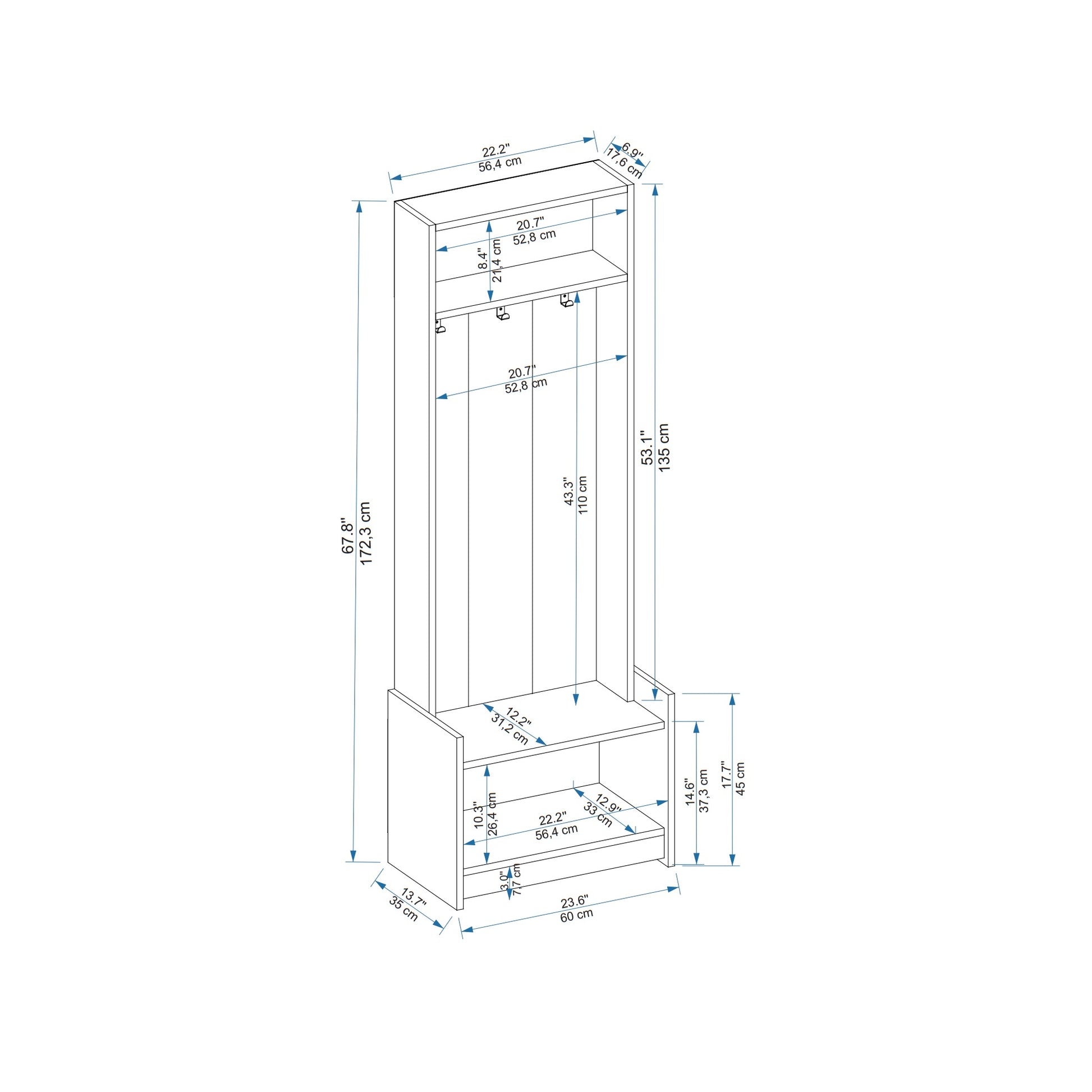 HEIGHT: 67.8" / 172.3 cm | WIDTH: 23.6" / 60 cm | DEPTH: 13.7" / 35 cm.