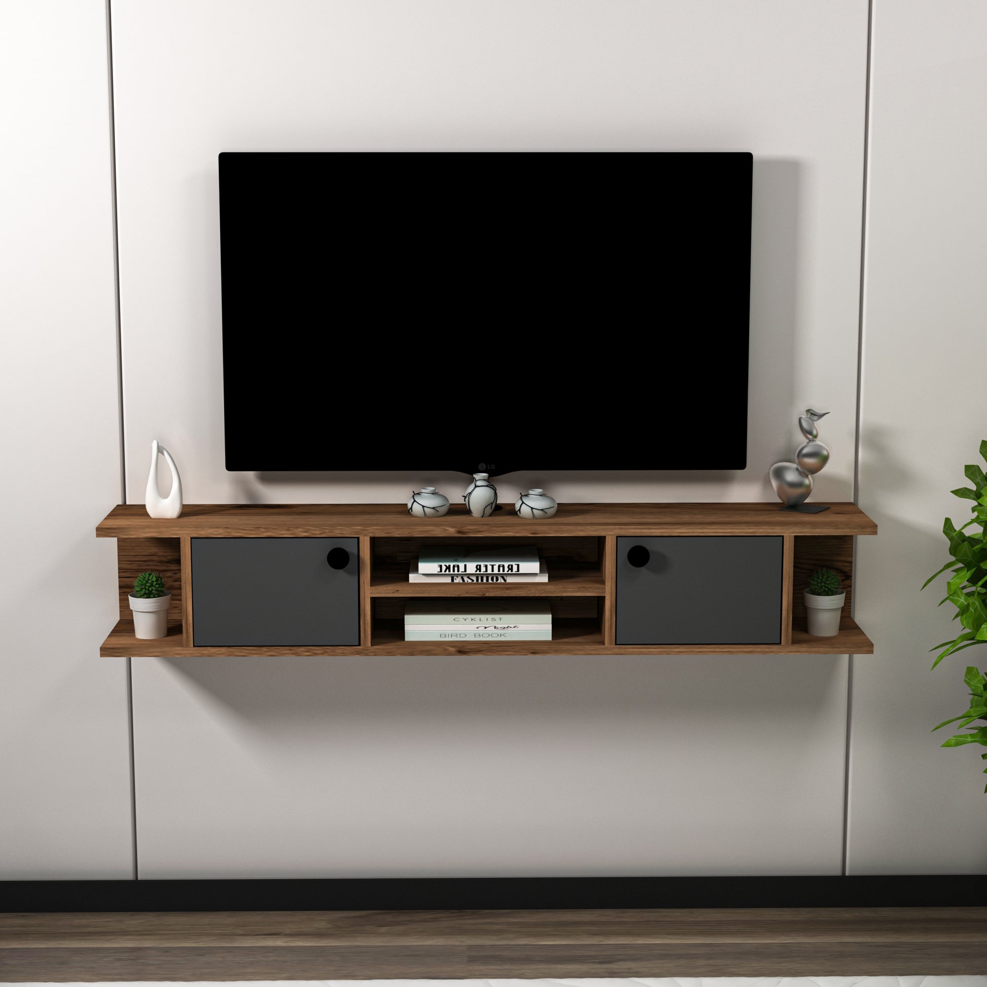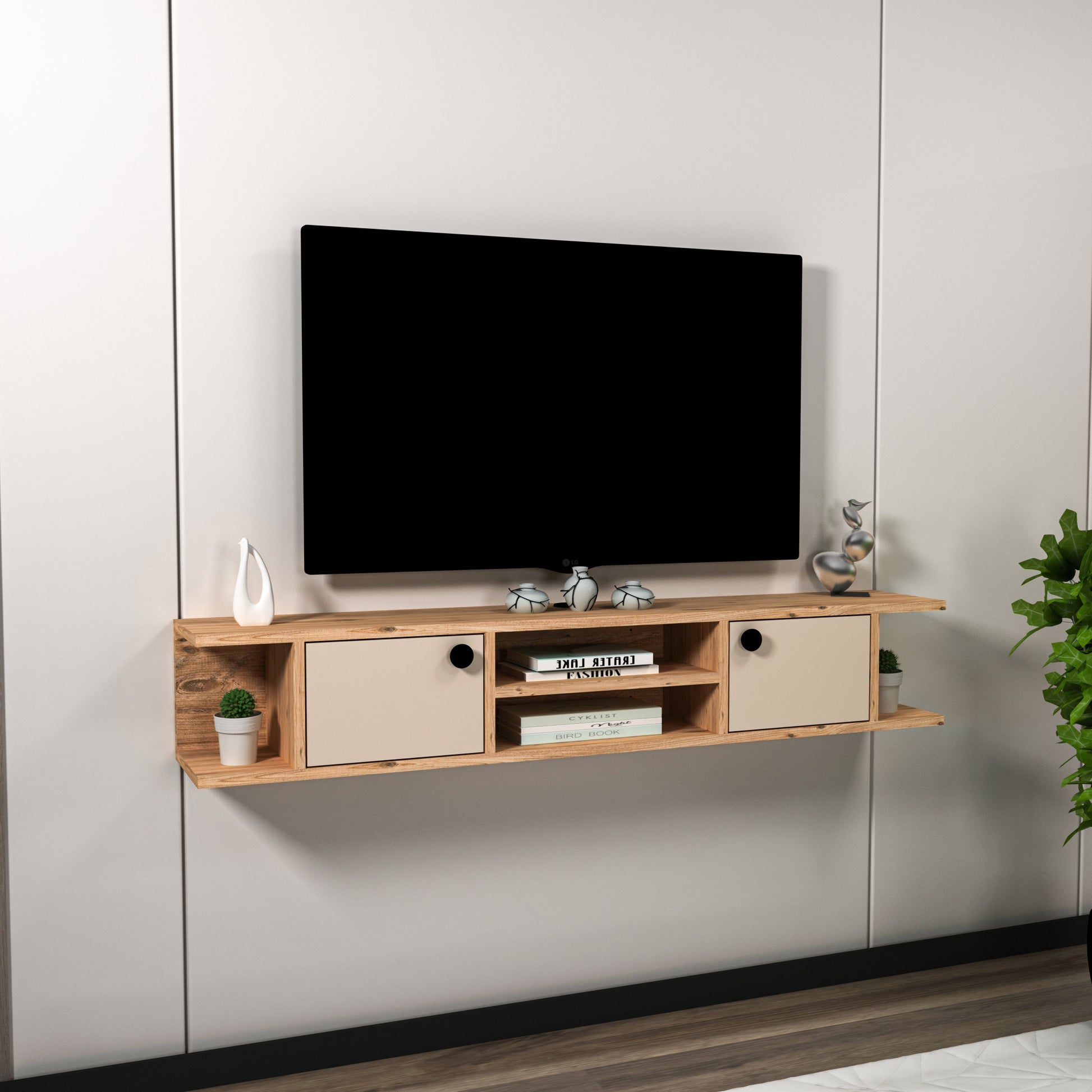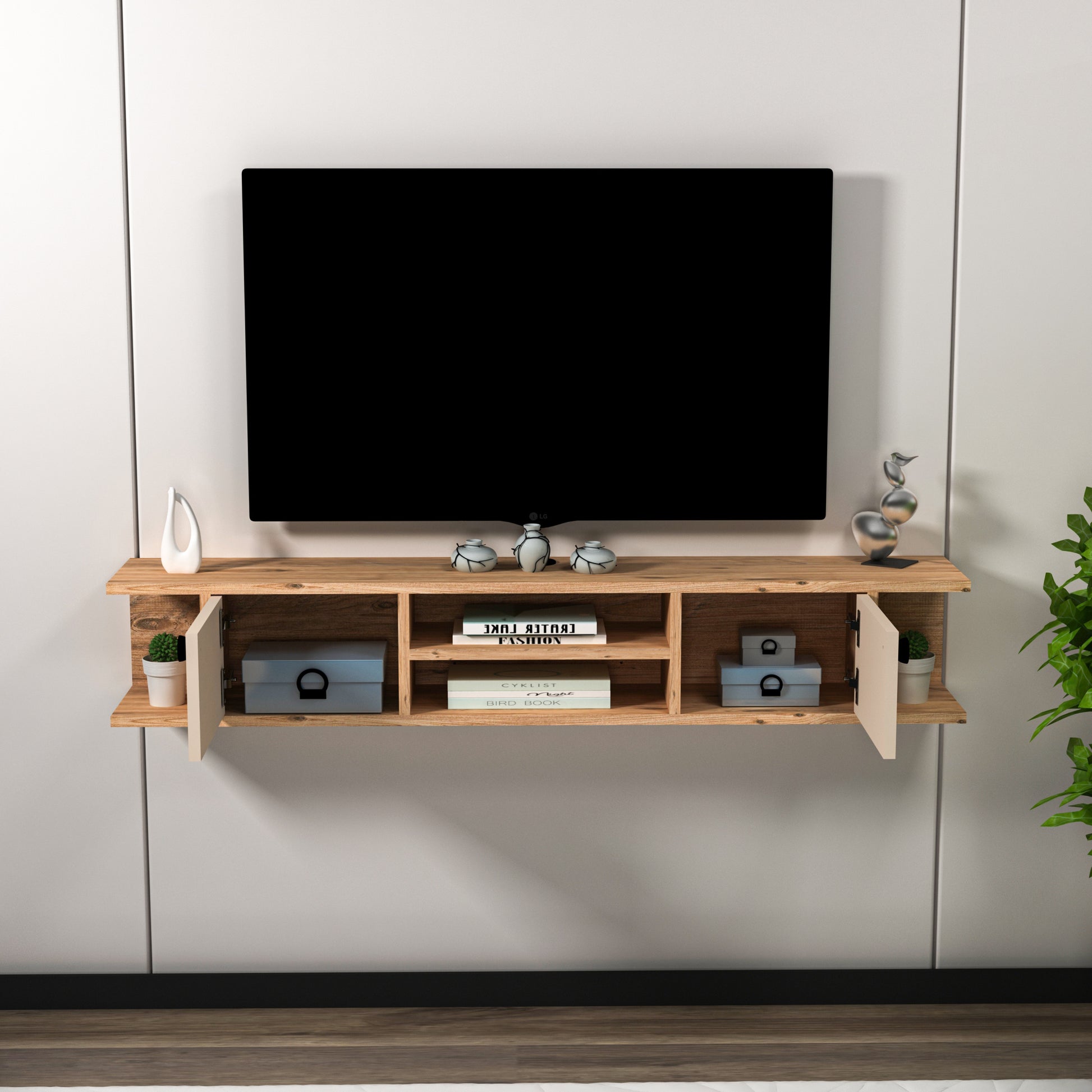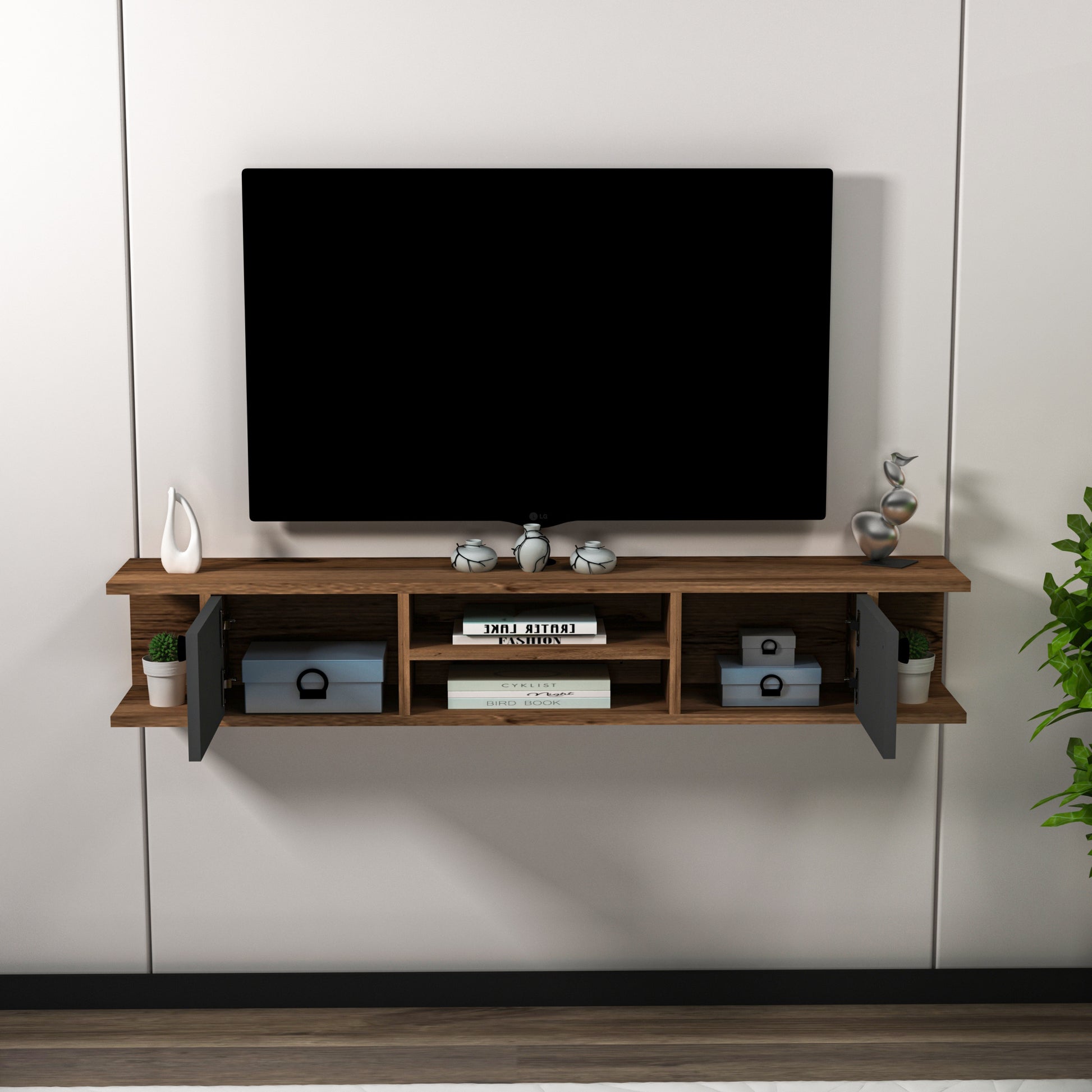 Joe Floating TV Stand with Shelves and Cabinets