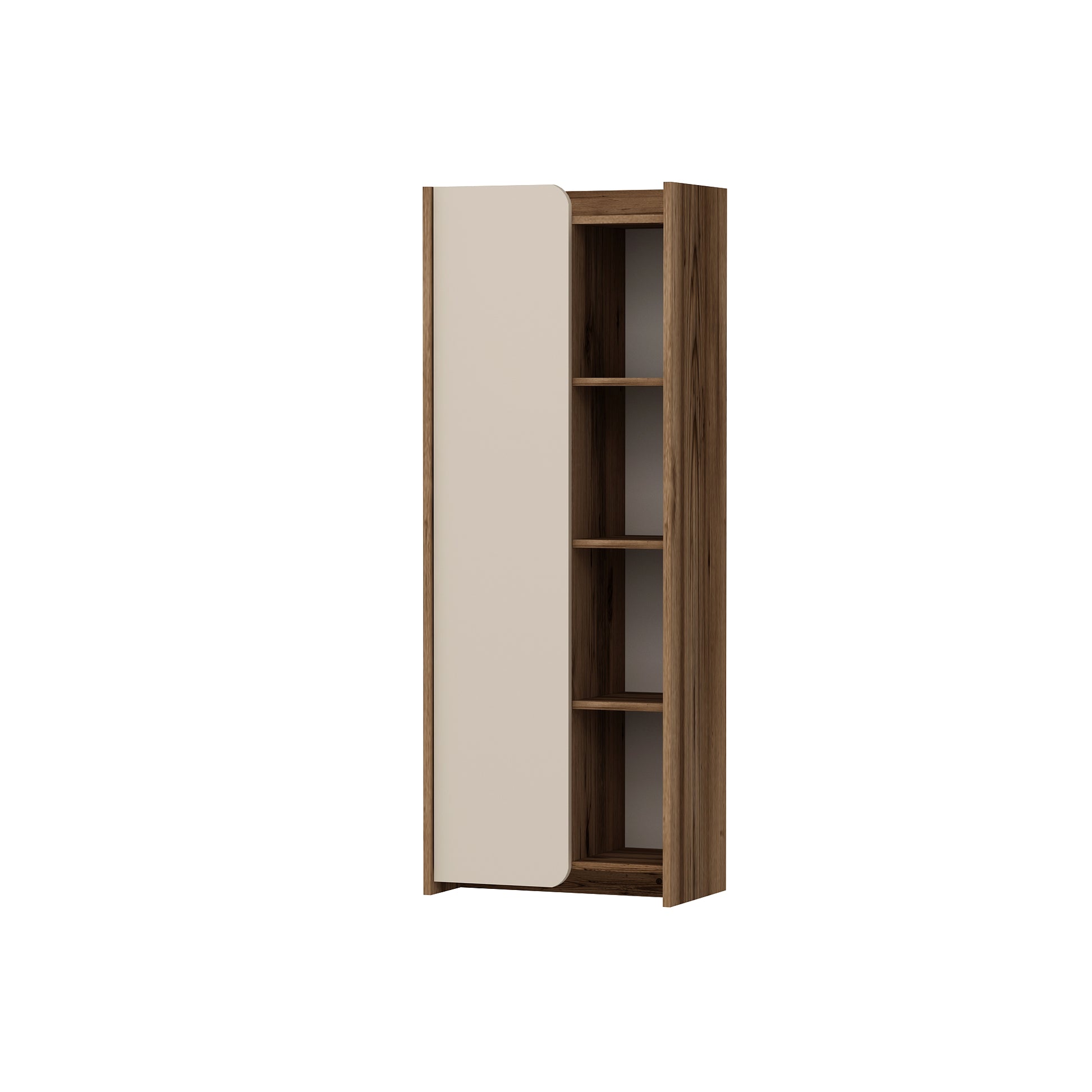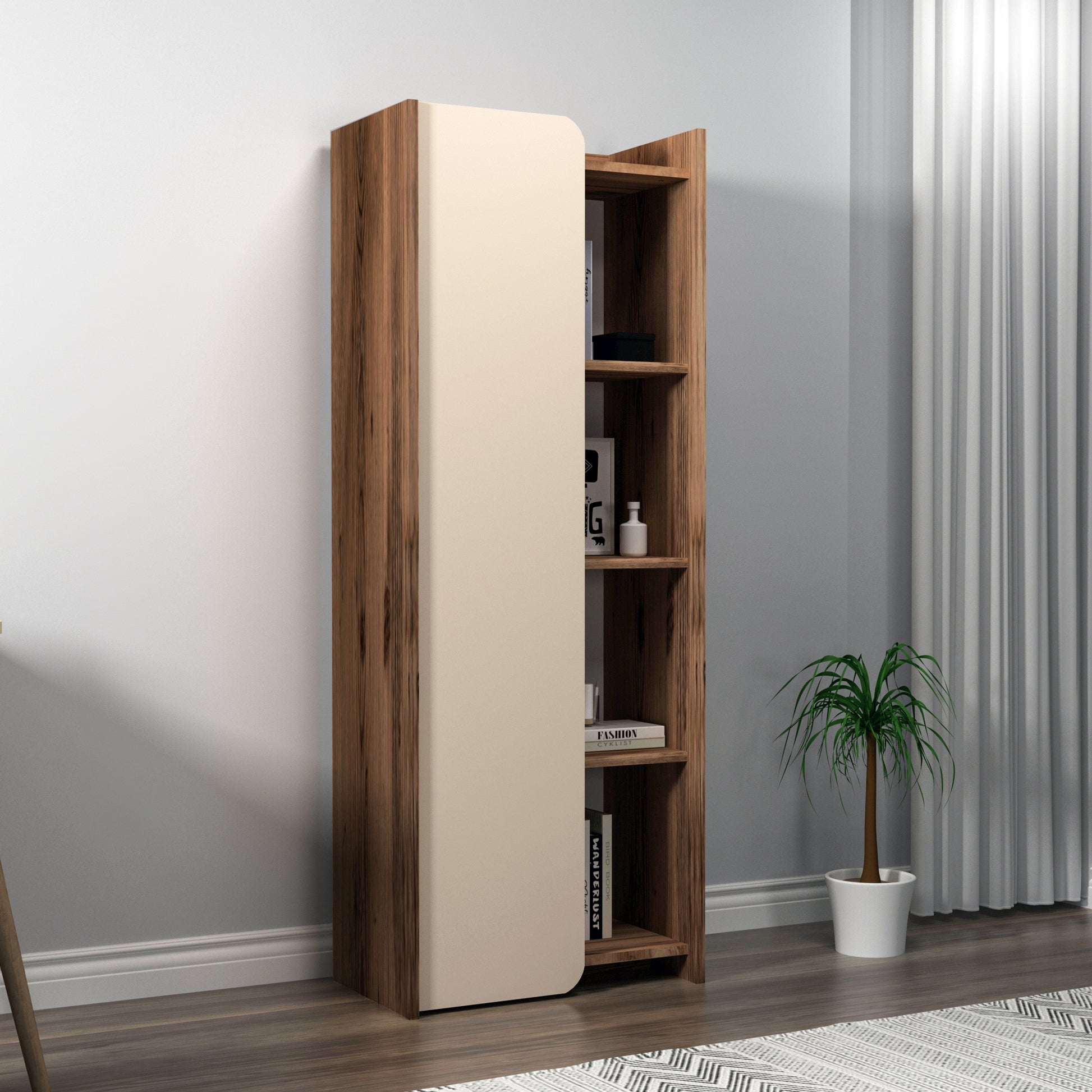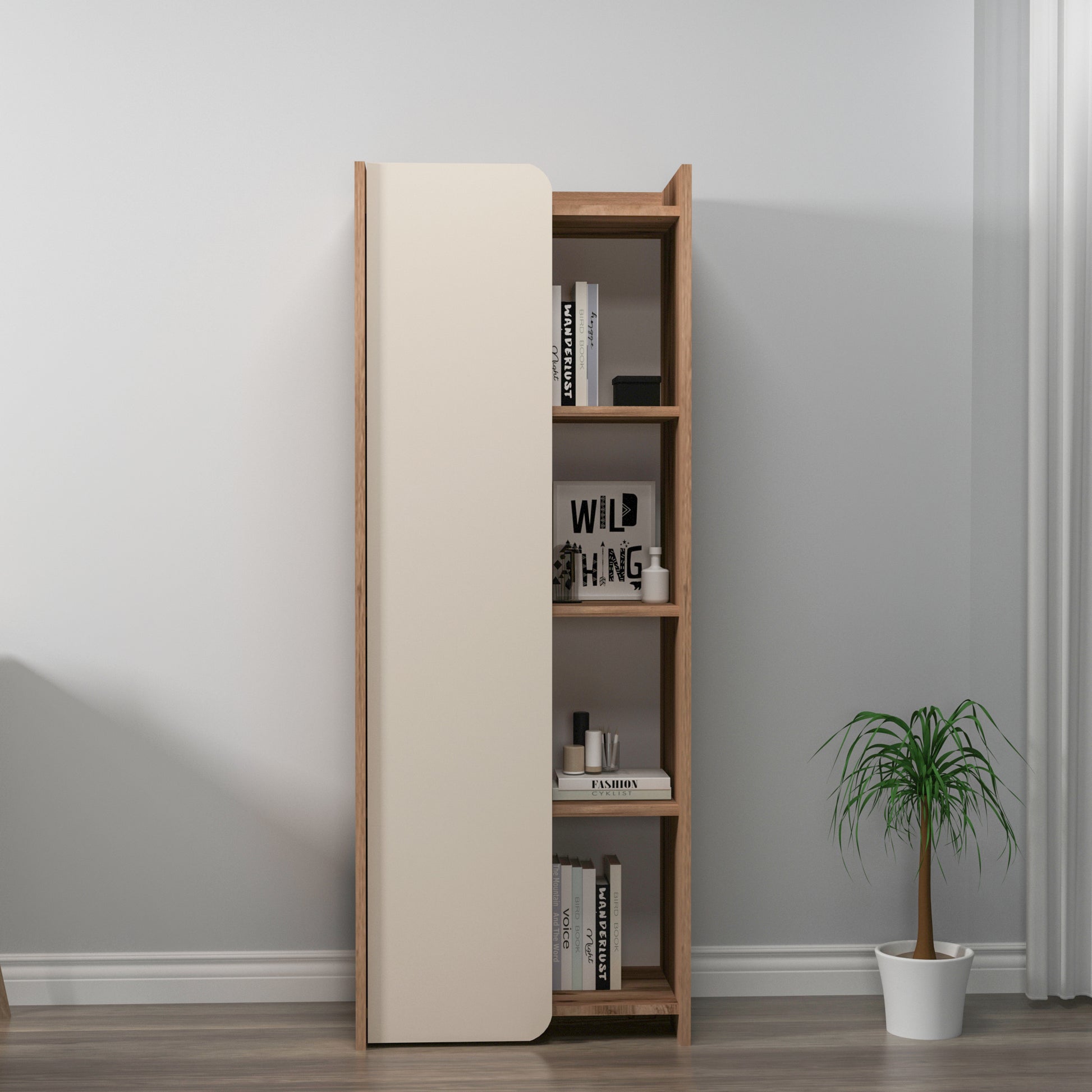 Expertly crafted with modern design and 18mm thick particleboard, the Babel Ladder Bookcase Bookshelf offers 8 tiers of storage, including 4 open shelves and 4 closed shelves concealed by a door with metal hinges. Its water-resistant surface and sturdy construction make it a durable choice for any home or office. Assembly is a breeze with the help of a power drill and screwdriver.