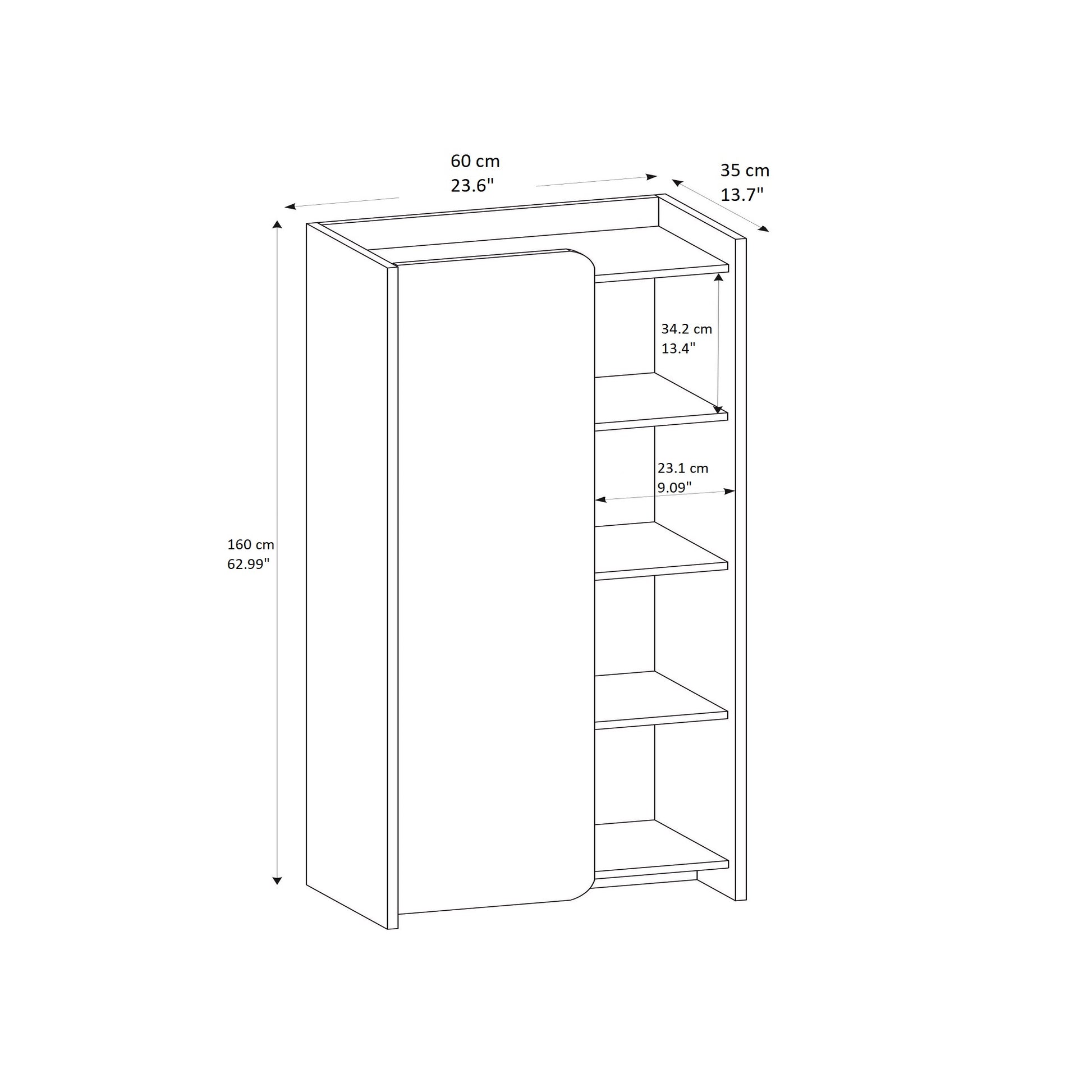HEIGHT: 62.9" / 160 cm | WIDTH: 23.6" / 60 cm | DEPTH: 13.7" / 35 cm.