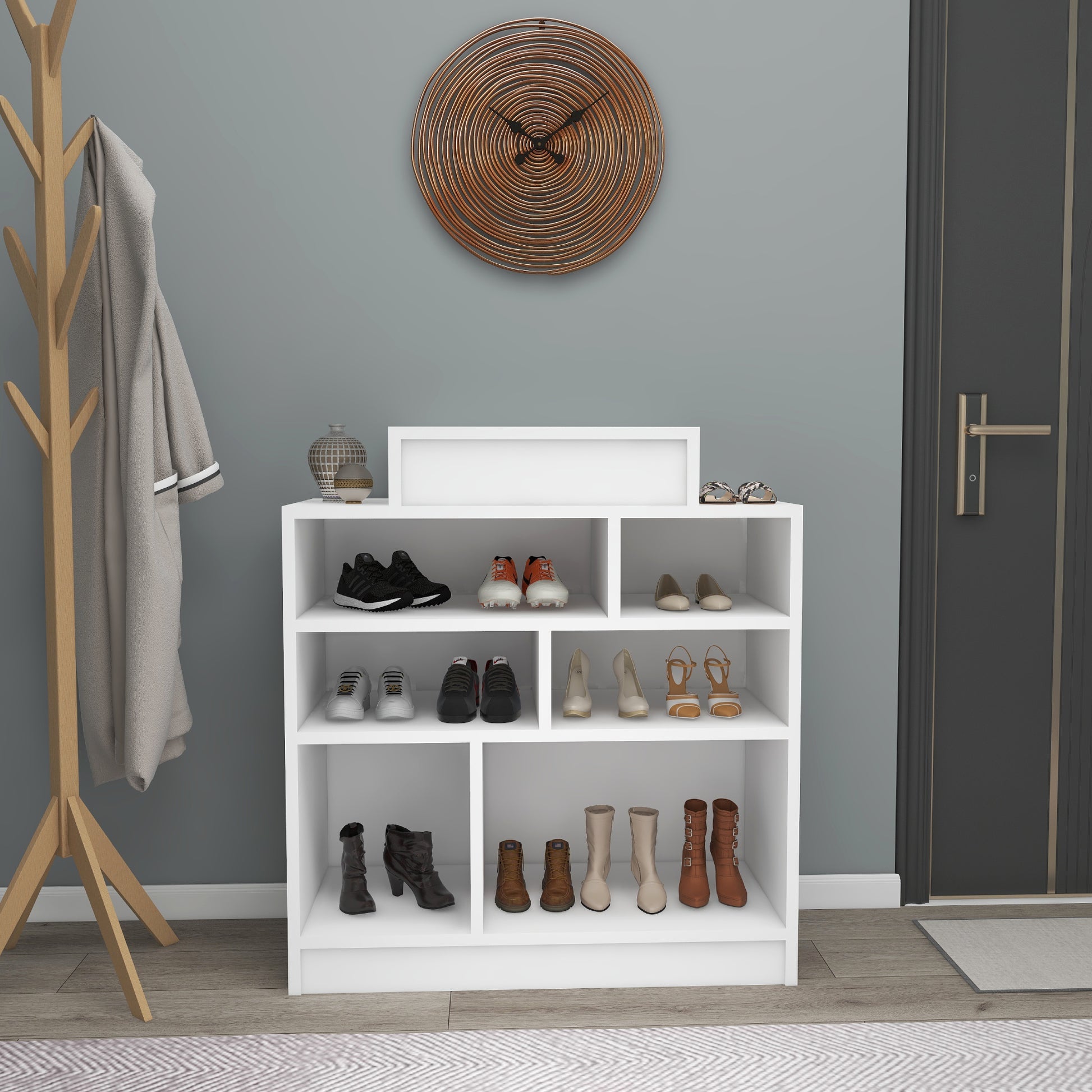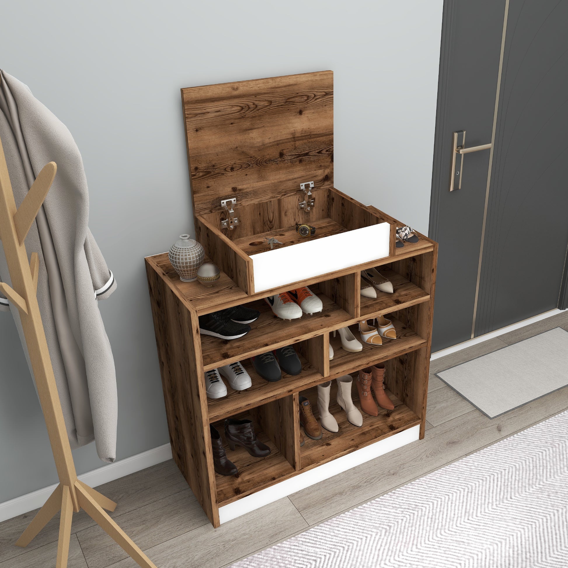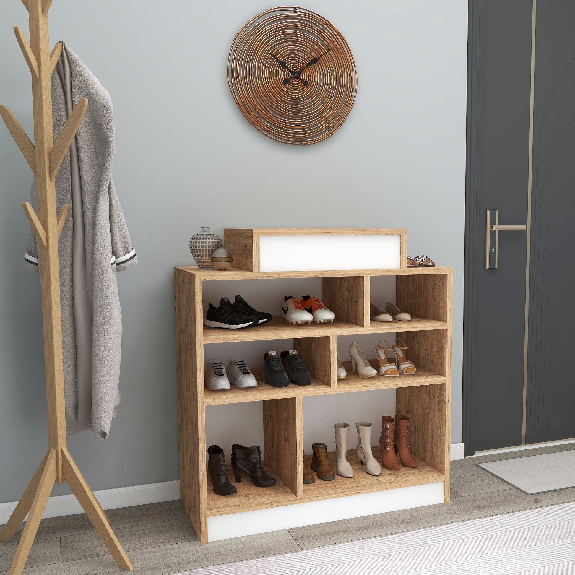 MATERIAL: The shoe storage shelf is made of an 18 mm thick quality melamine-coated particleboard. The manufactured wood surface is water-resistant to some extent and the edges are banded with PVC edge banding tape. First-class assembly/installation hardware and accessories are used. Our products are produced from certified quality raw materials that do not contain carcinogenic substances and comply with European Union health norms.