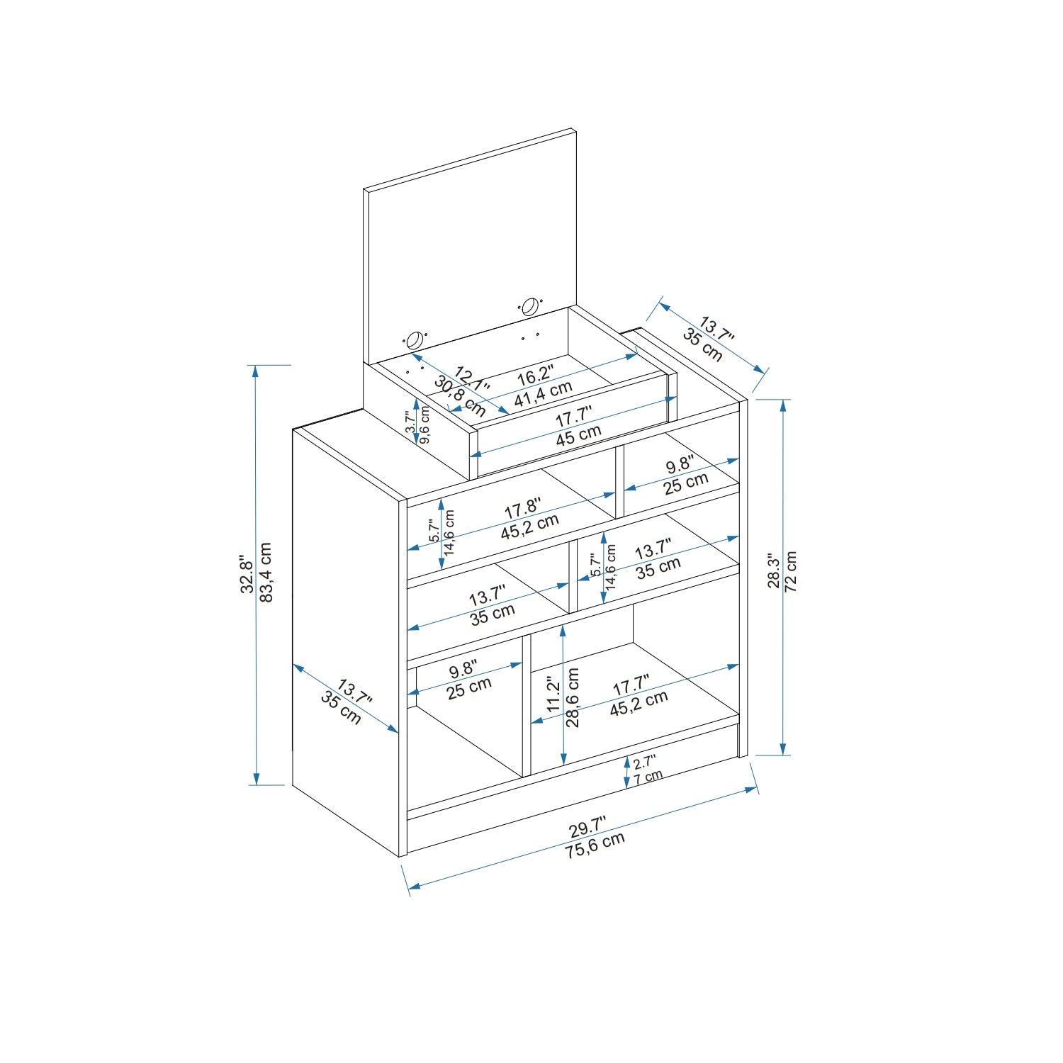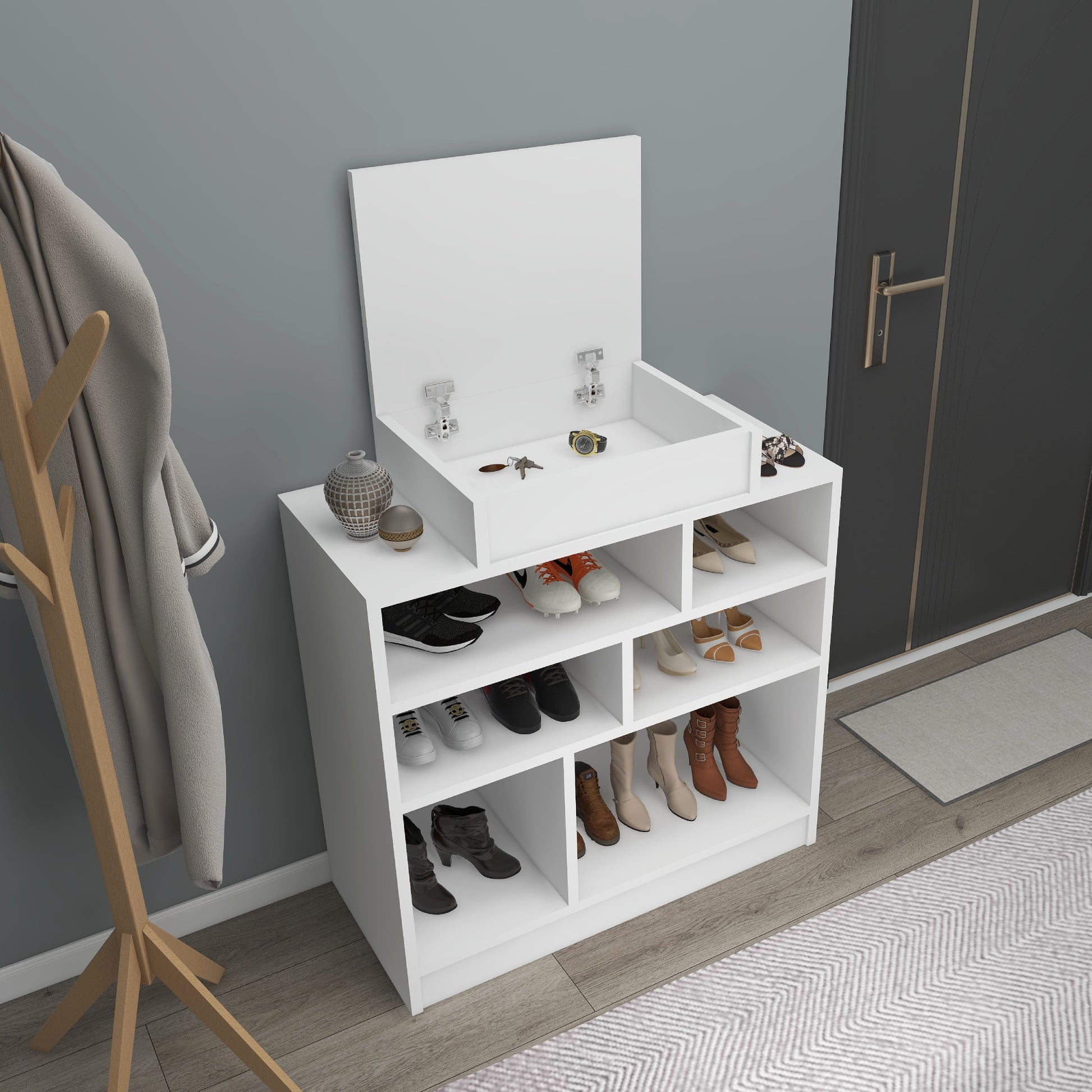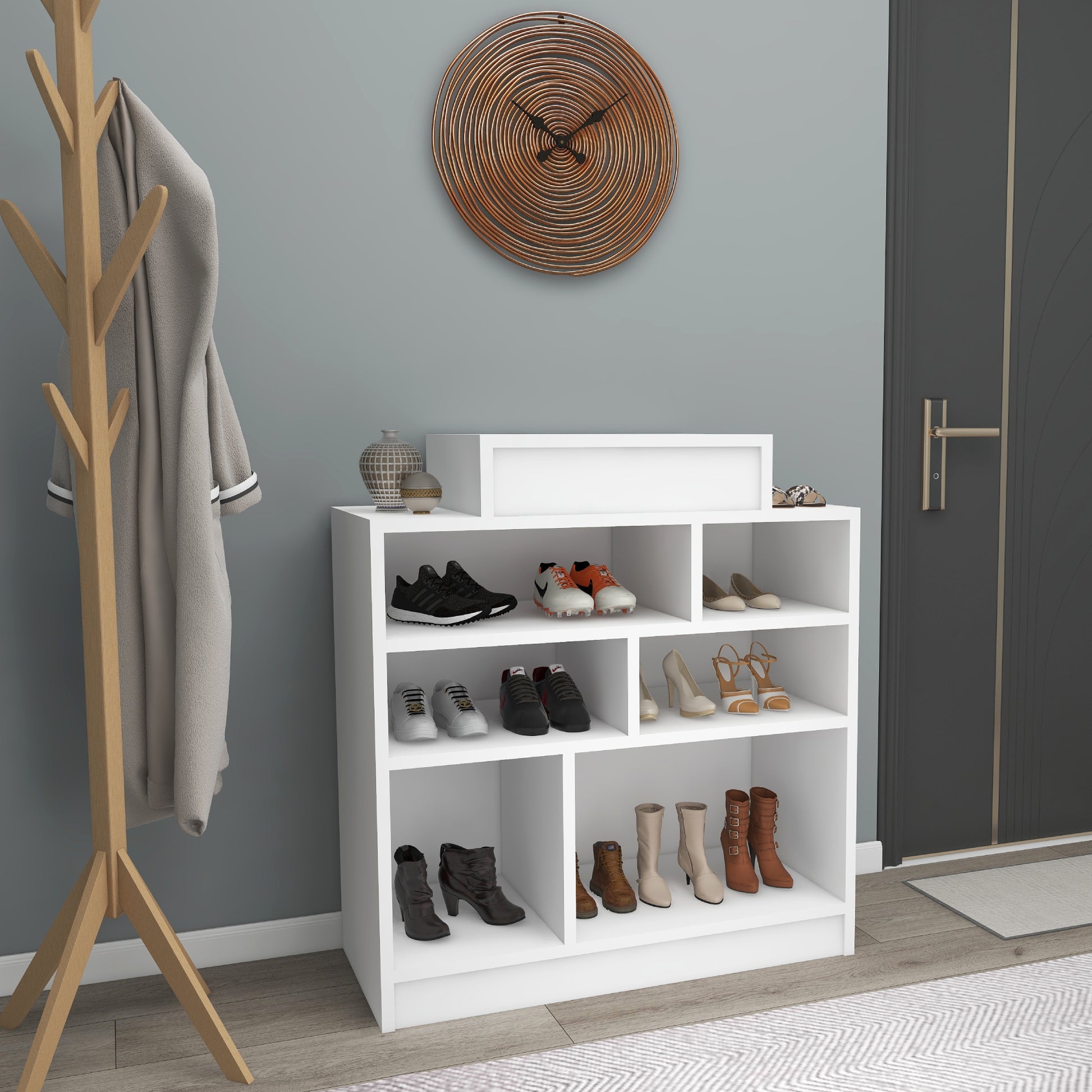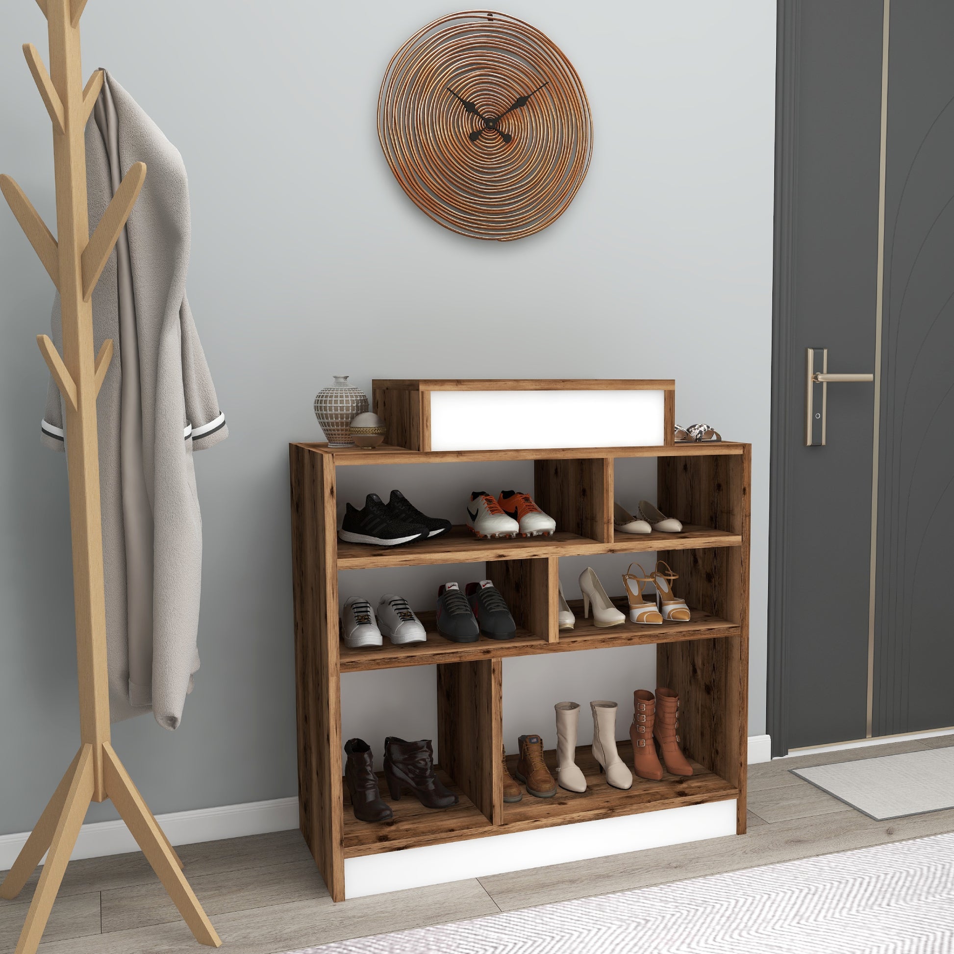 MATERIAL: The shoe storage shelf is made of an 18 mm thick quality melamine-coated particleboard. The manufactured wood surface is water-resistant to some extent and the edges are banded with PVC edge banding tape. First-class assembly/installation hardware and accessories are used. Our products are produced from certified quality raw materials that do not contain carcinogenic substances and comply with European Union health norms.