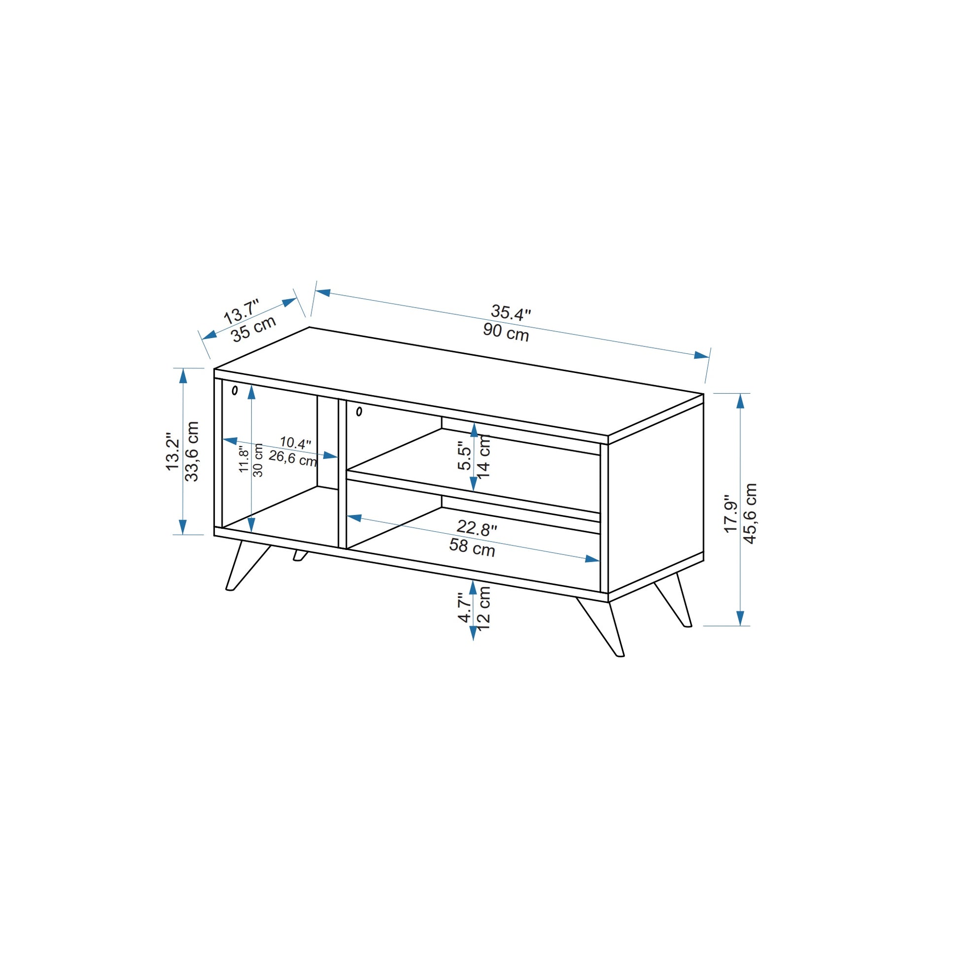 HEIGHT: 17.9" / 45.6 cm | WIDTH: 35.4" / 90 cm | DEPTH: 13.7" / 35 cm