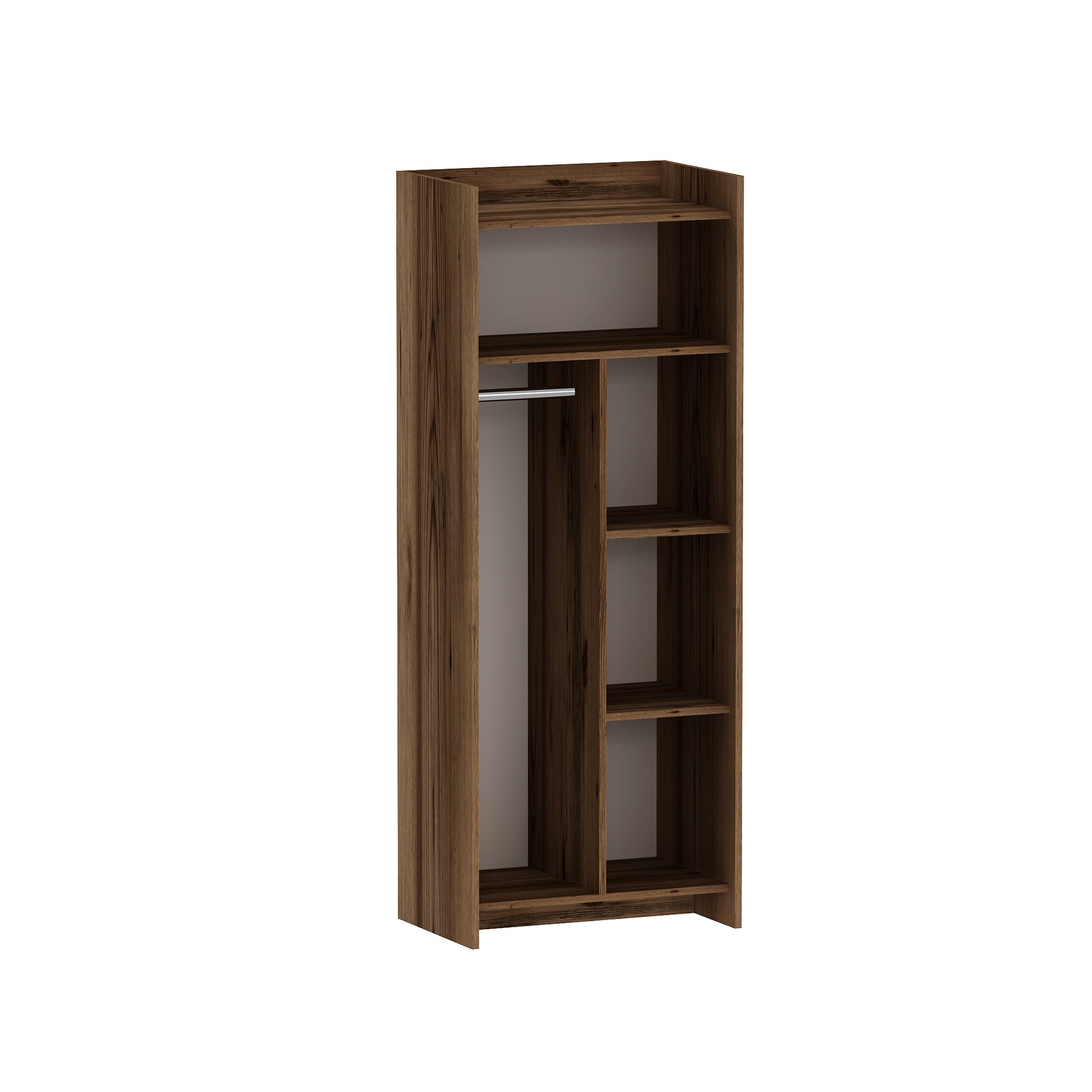 This new Babel Wardrobe offers contemporary style and functionality. With 5 cabinets and a metal hanger, it provides ample storage space for clothes and accessories. It features 2 doors with metal hinges for easy access. Made of 18 mm thick particleboard for durability.